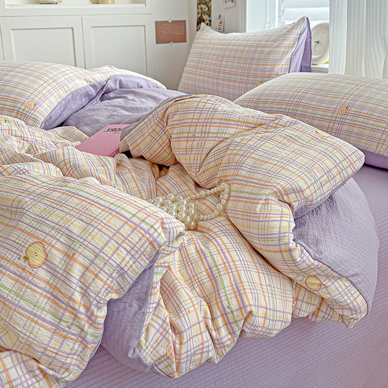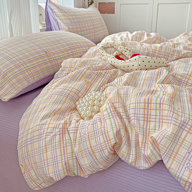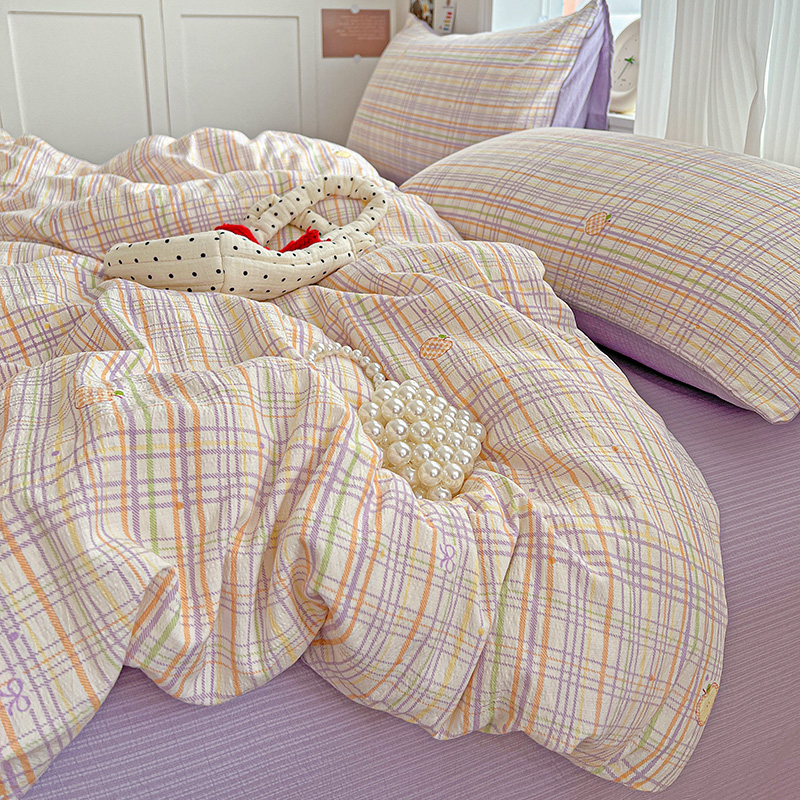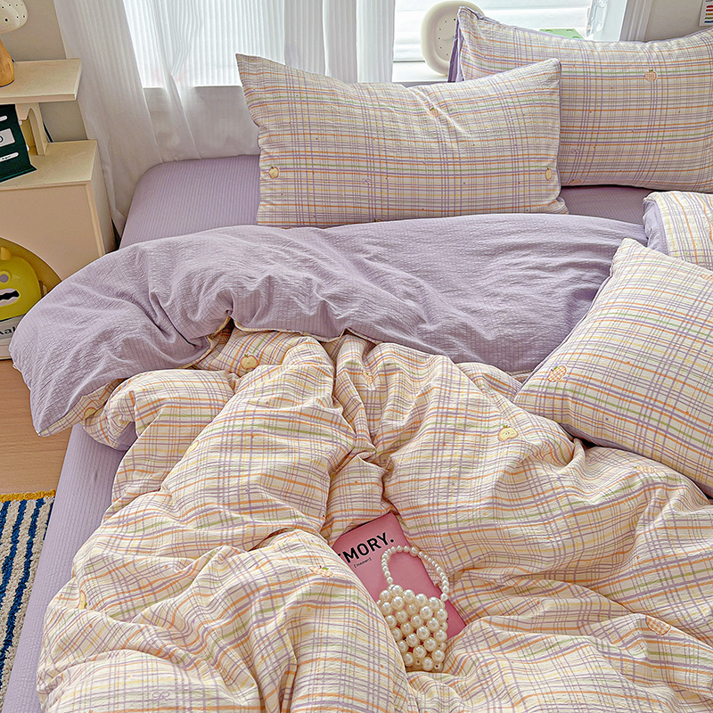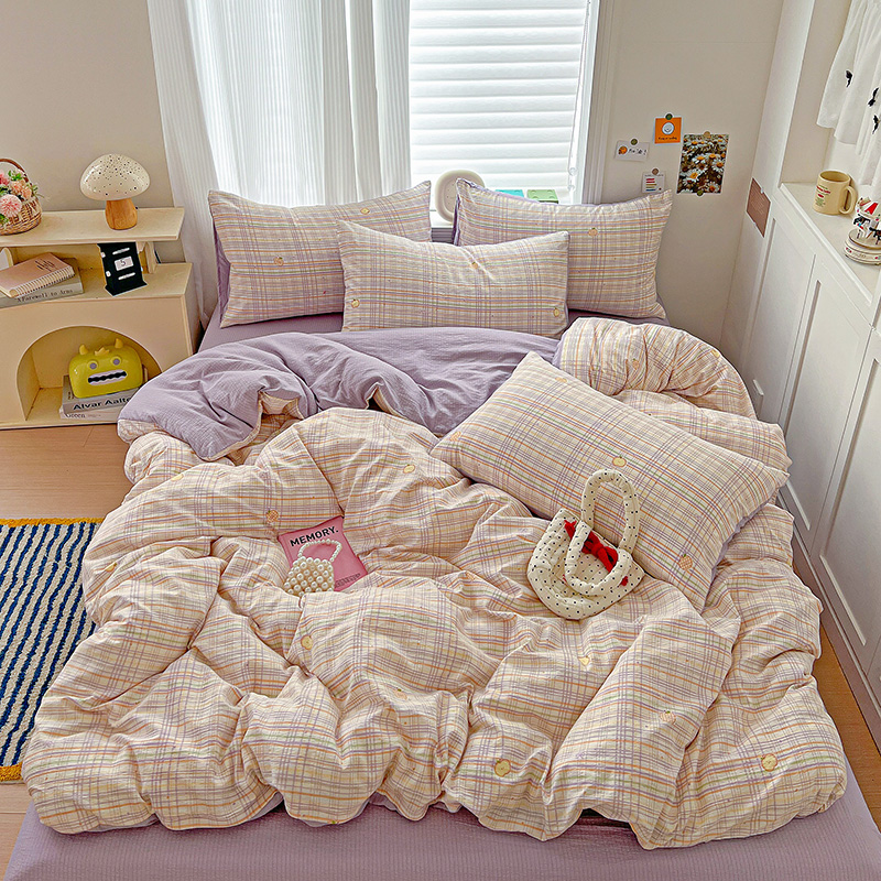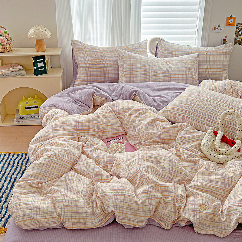 (总)一比一家纺 2026新款古法水洗仿棉云感纱A类四件套,知秋,白兰地,彩波波,草莓点点,格纹狗,嗨皮狗,赫莲娜,花千朵,花絮,酱果,蓝小格,莉莉安,梦幻灰,南瓜果果,葡萄,浅梦,森屿,疏影,甜心草莓,甜心喵,条纹狗,童趣,小黄花,小木马,小时光,小幸运,修修狗,薰衣草,灰樱桃,樱桃熊,鱼多多,组合图仅做展示不可下单