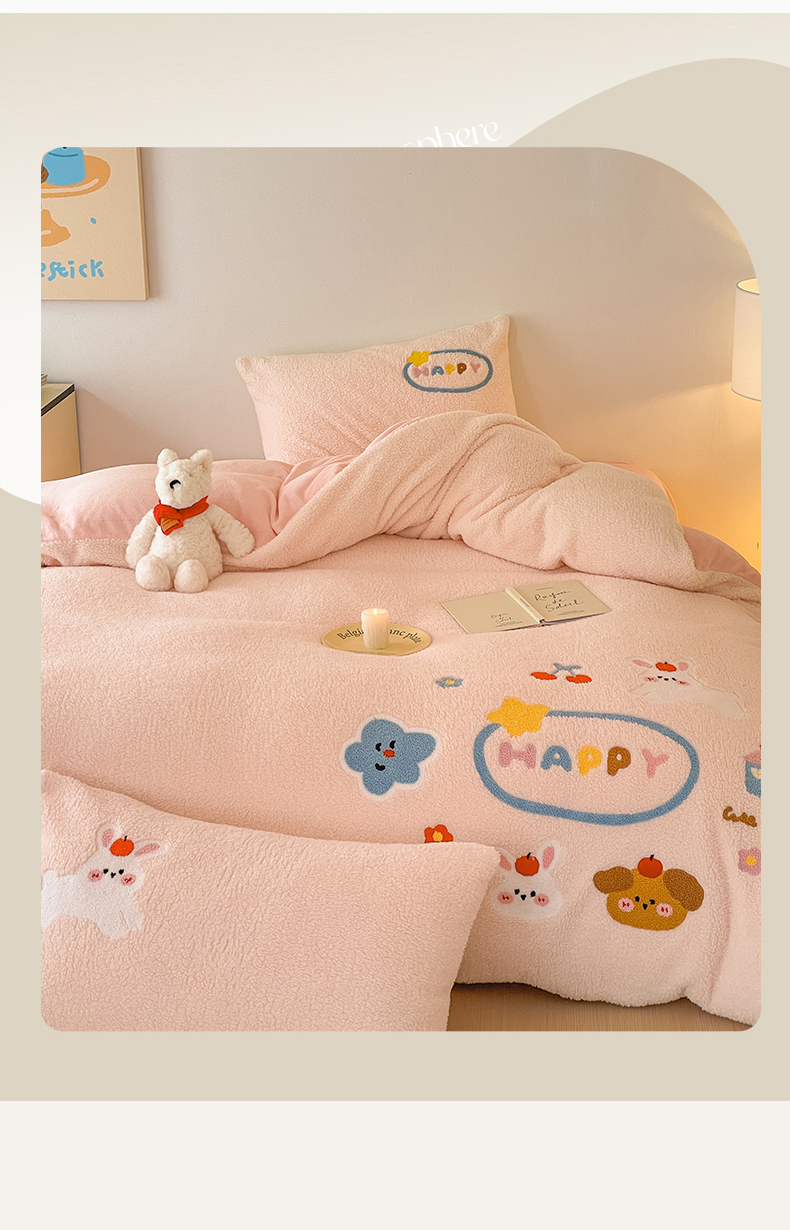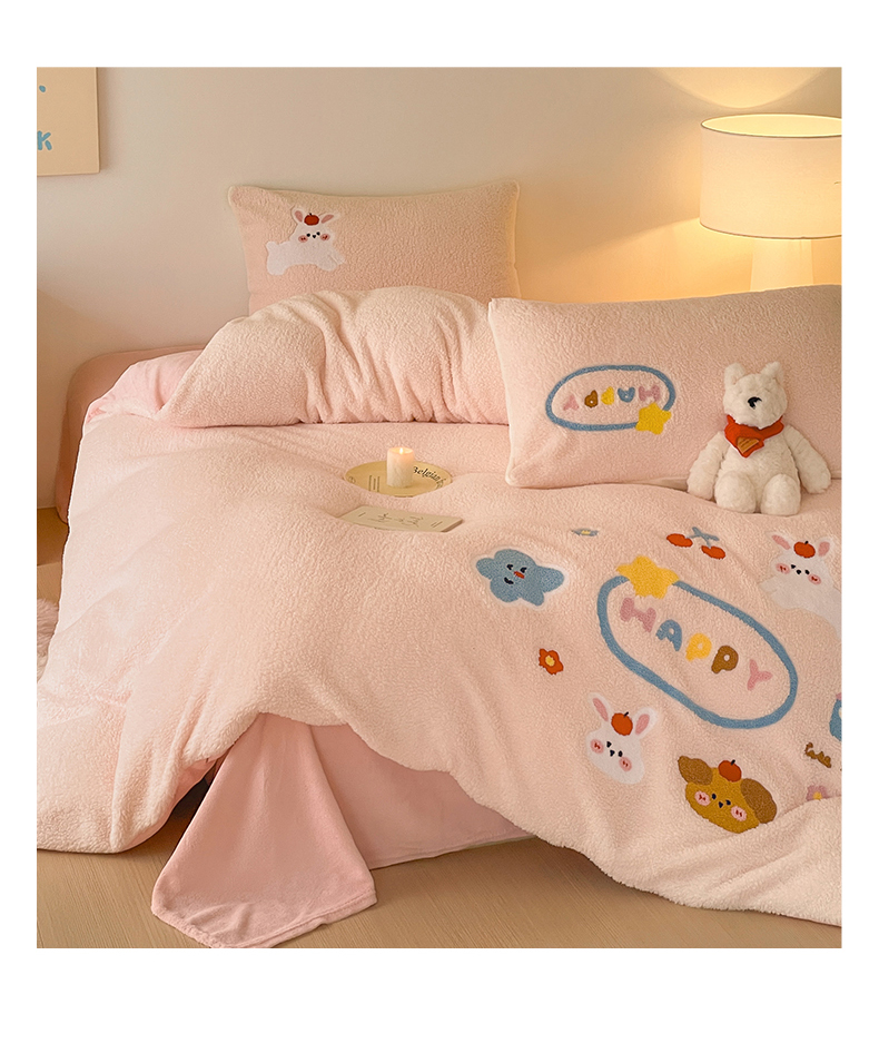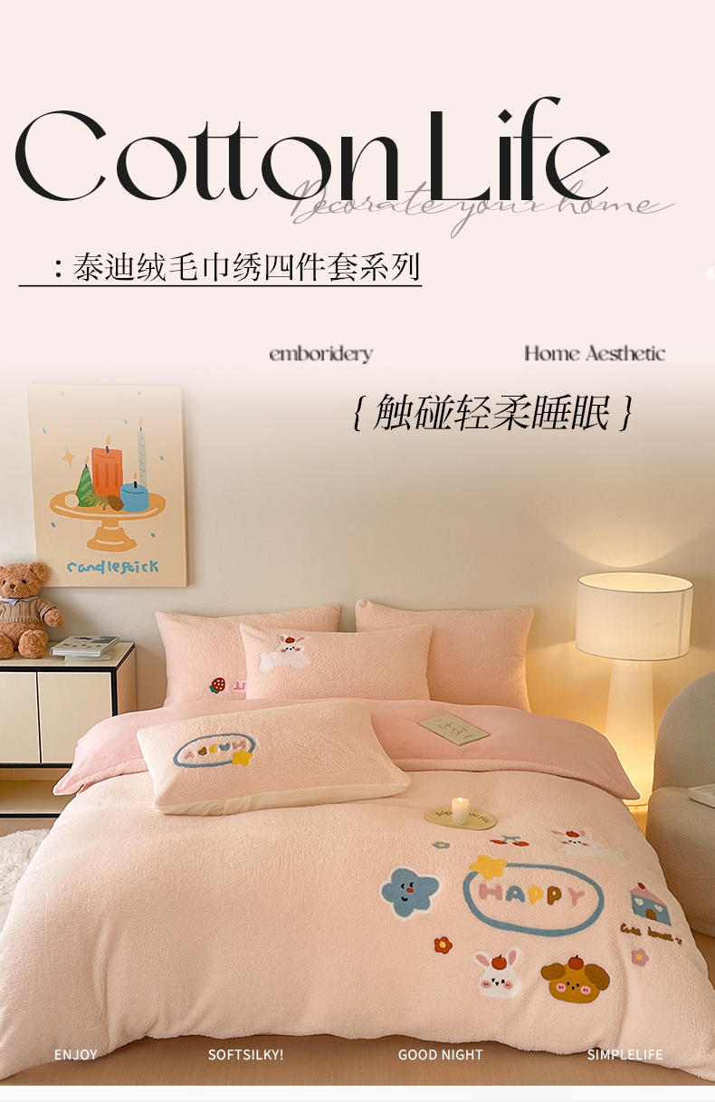 川悦生活 2025新款泰迪绒毛巾绣卡通四件套 趣味萌宅