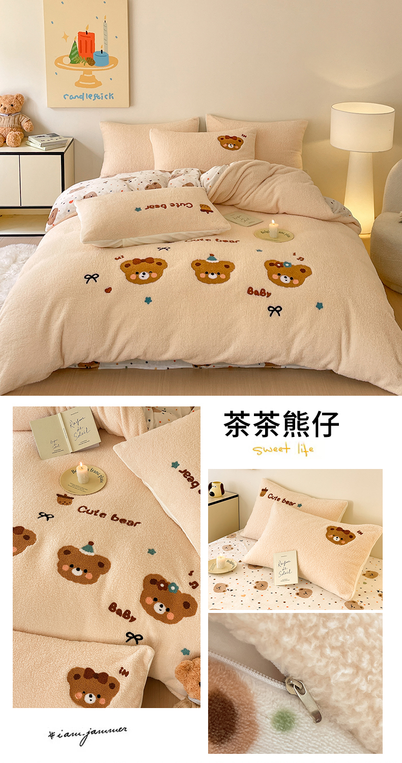 商品名称:川悦生活 2025新款泰迪绒毛巾绣卡通四件套 趣味萌宅