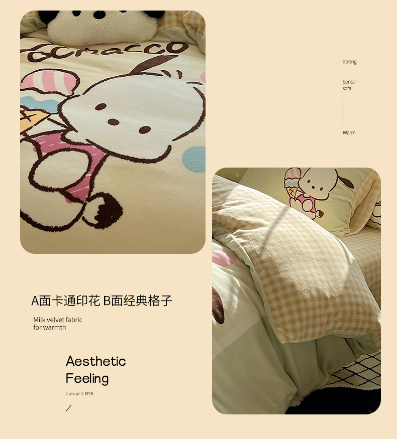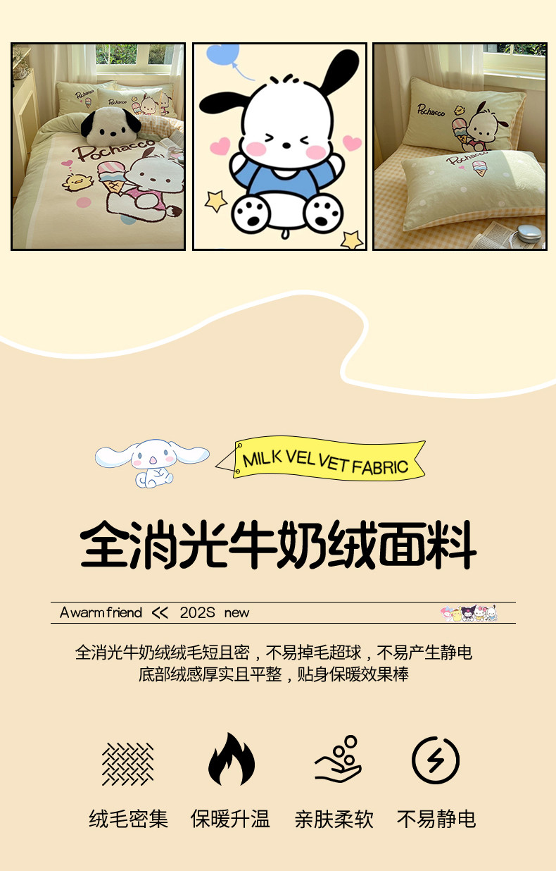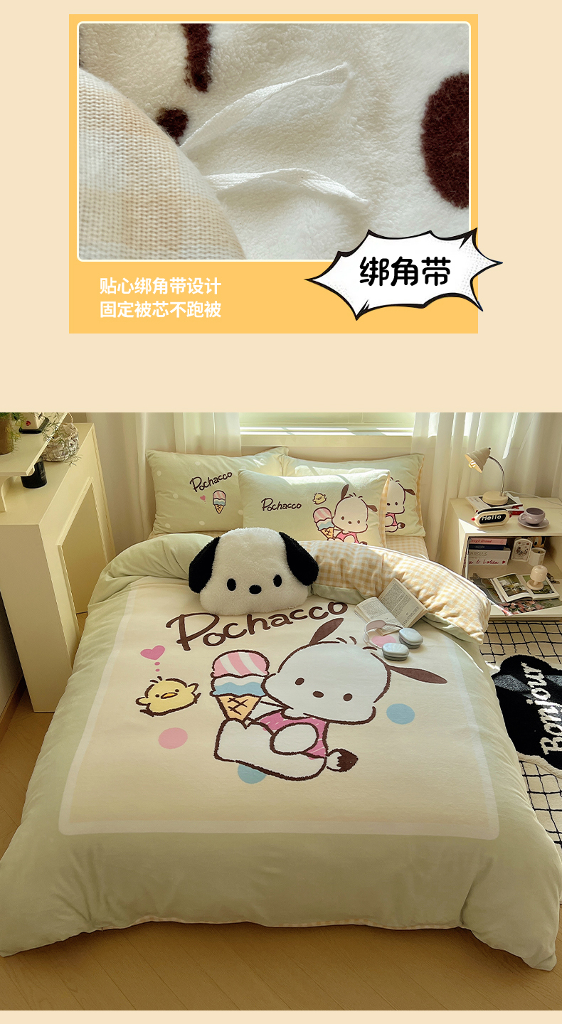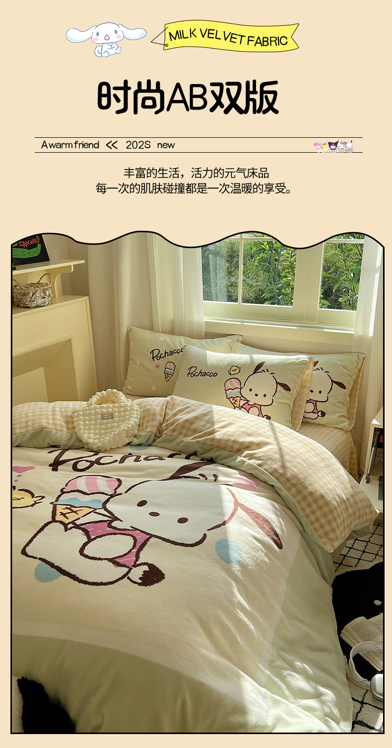 当前位置: 91家纺网 > 商品网购 > 床品套件 > 四件套 > 牛奶绒四件套 > 三朵家纺 2025新款数码大版牛奶绒印花三丽鸥系列四件套 甜蜜帕恰