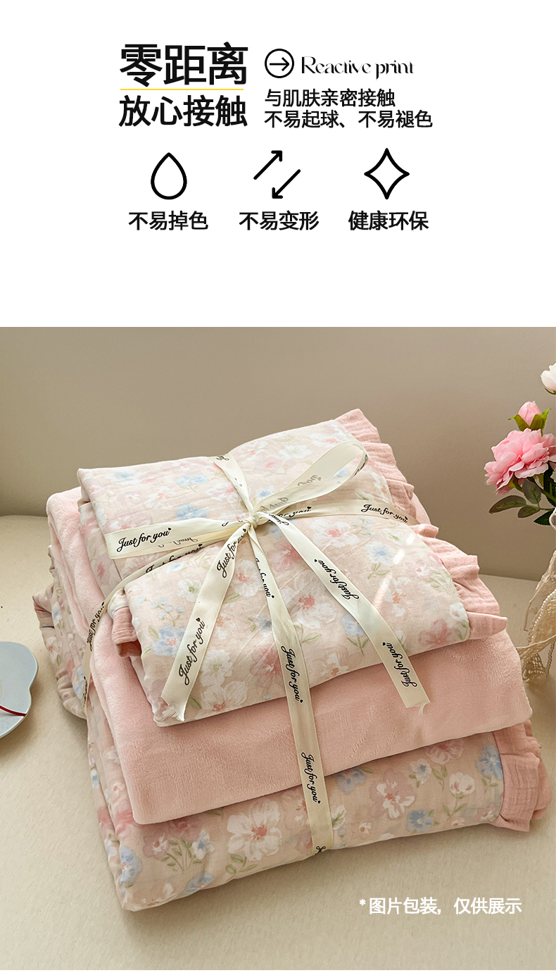 商品名称:(总)桃子家居 2025新款A类韩版花边皱皱纱纯棉有氧双层纱加全消光加厚牛奶绒高品质棉加绒暖纱绒四件套