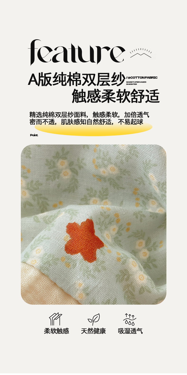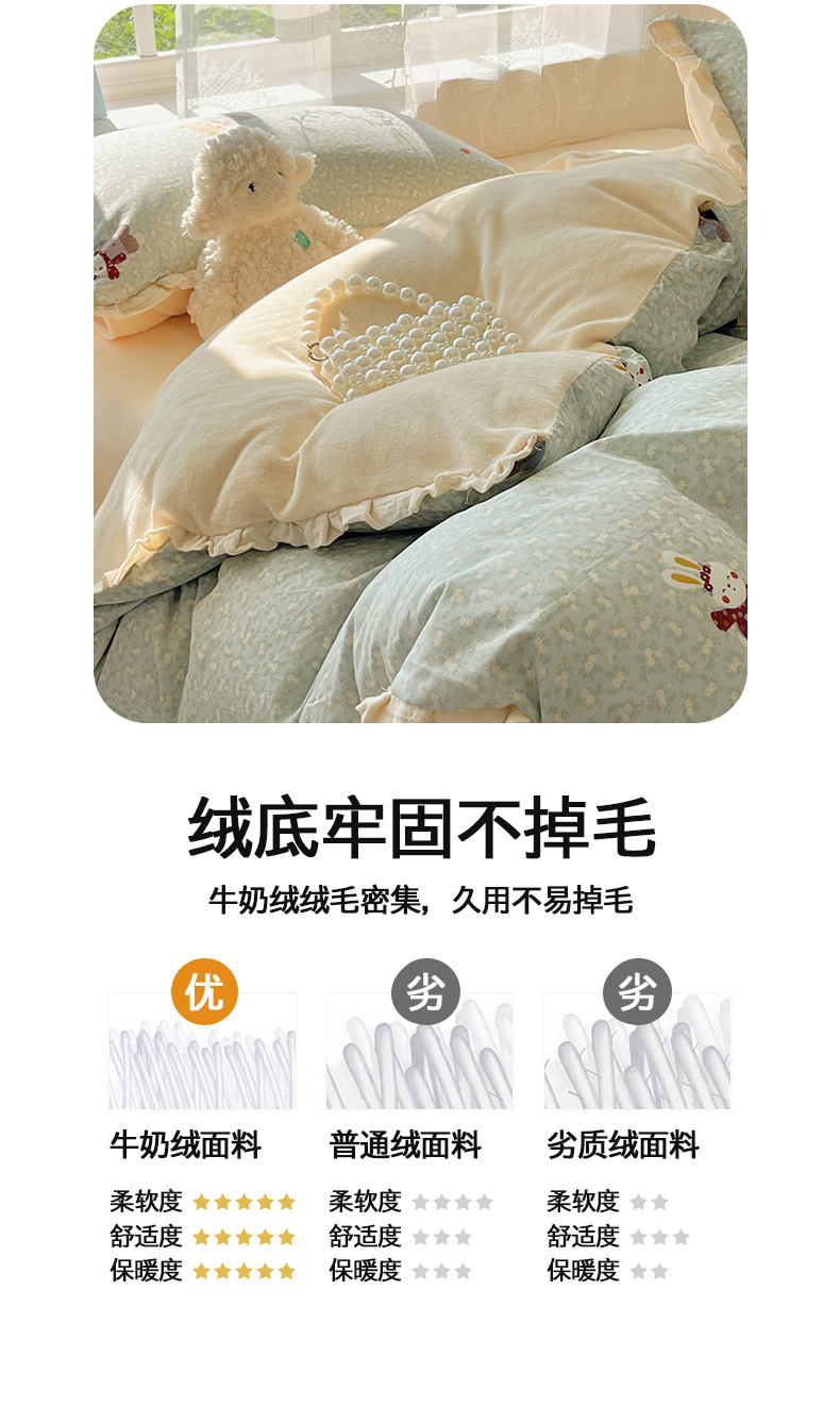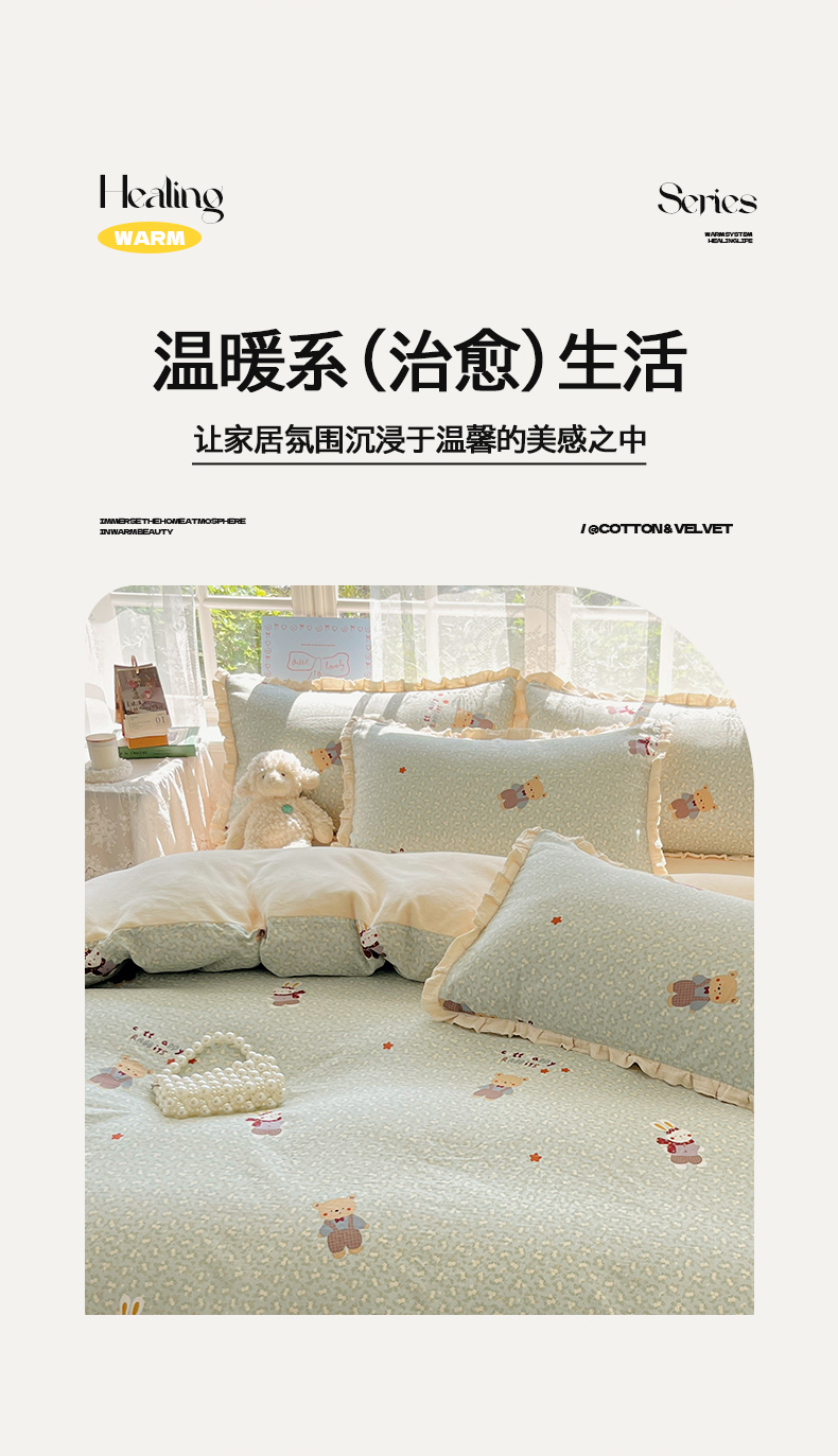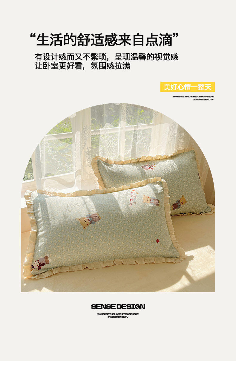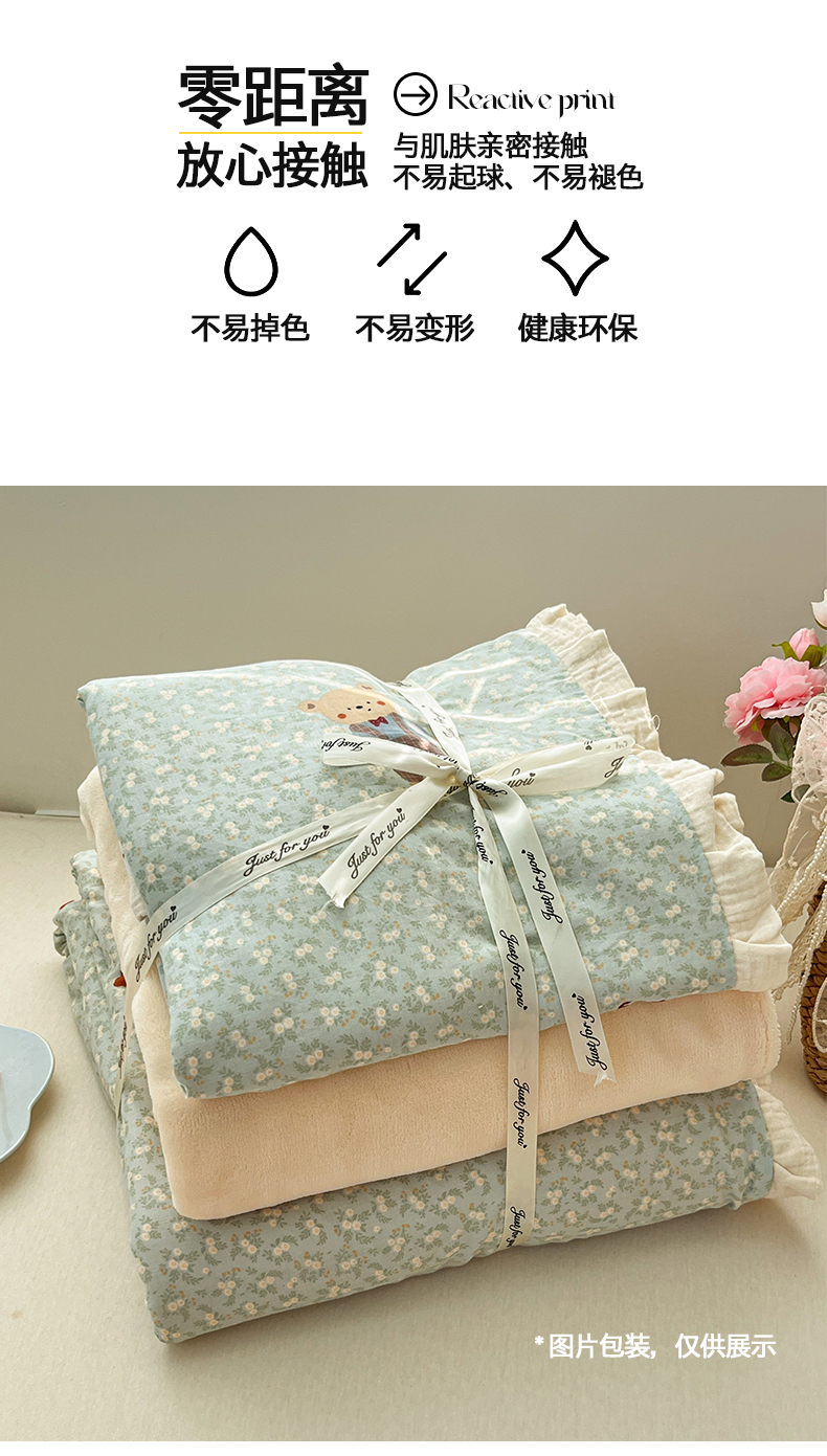 商品名称:桃子家居 2025新款A类韩版花边皱皱纱纯棉有氧双层纱加全消光加厚牛奶绒高品质棉加绒暖纱绒四件套 暖纱绒-小确幸