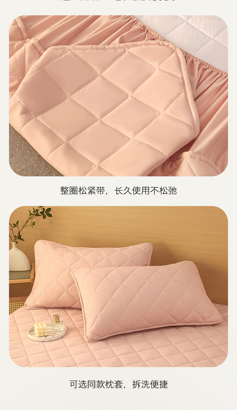 • 91家纺网 家纺一手货源 找家纺 锦眠床笠 2025新款亲肤夹棉床笠 粉色
