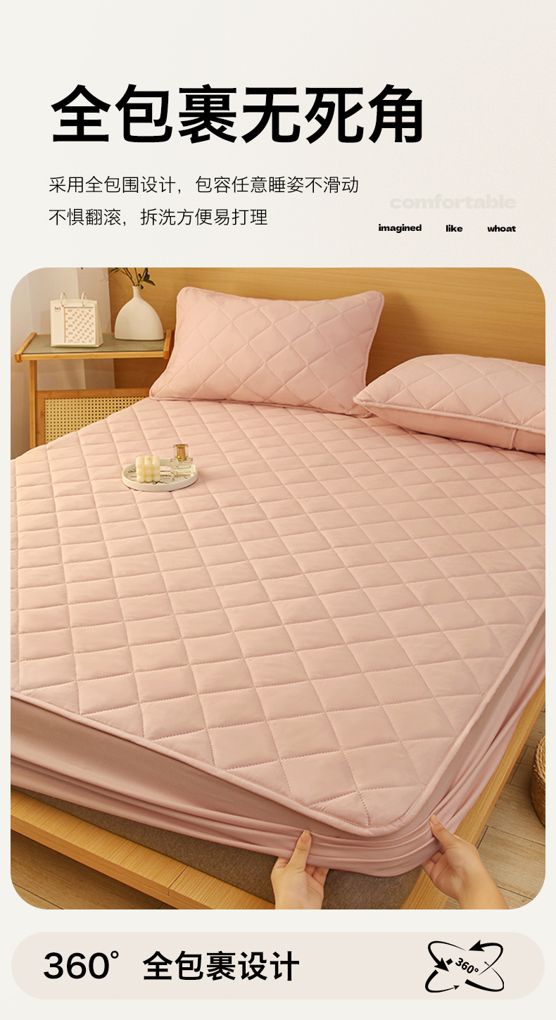 (总)锦眠床笠 2025新款亲肤夹棉床笠,白色,粉色,灰色,卡其色,蓝色