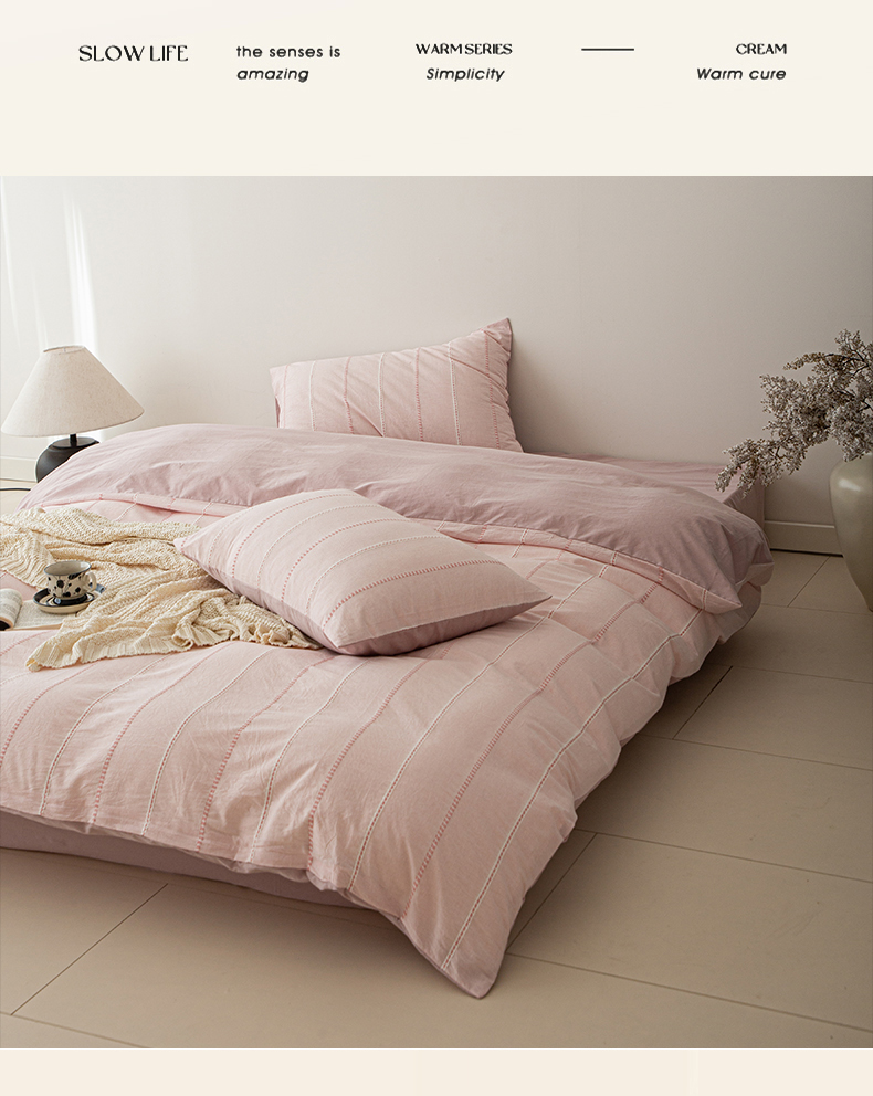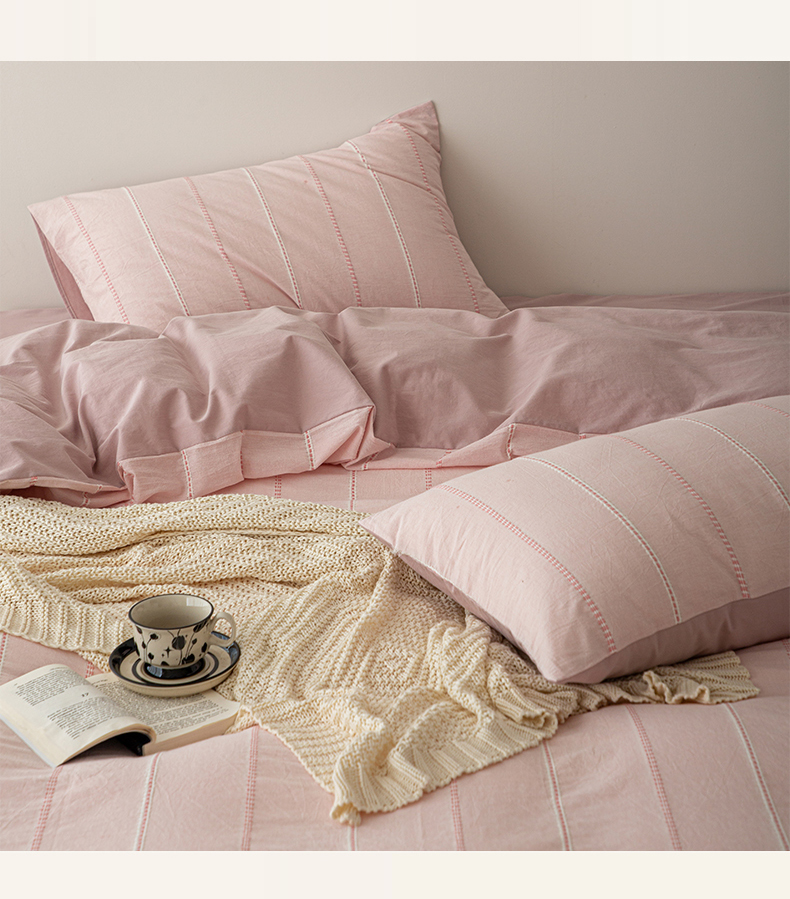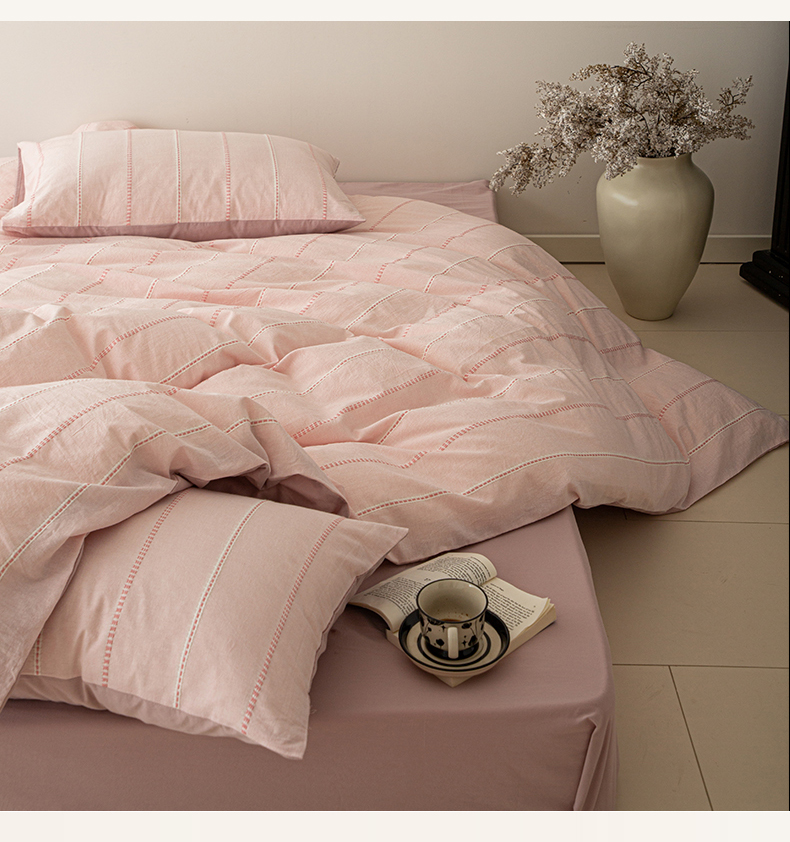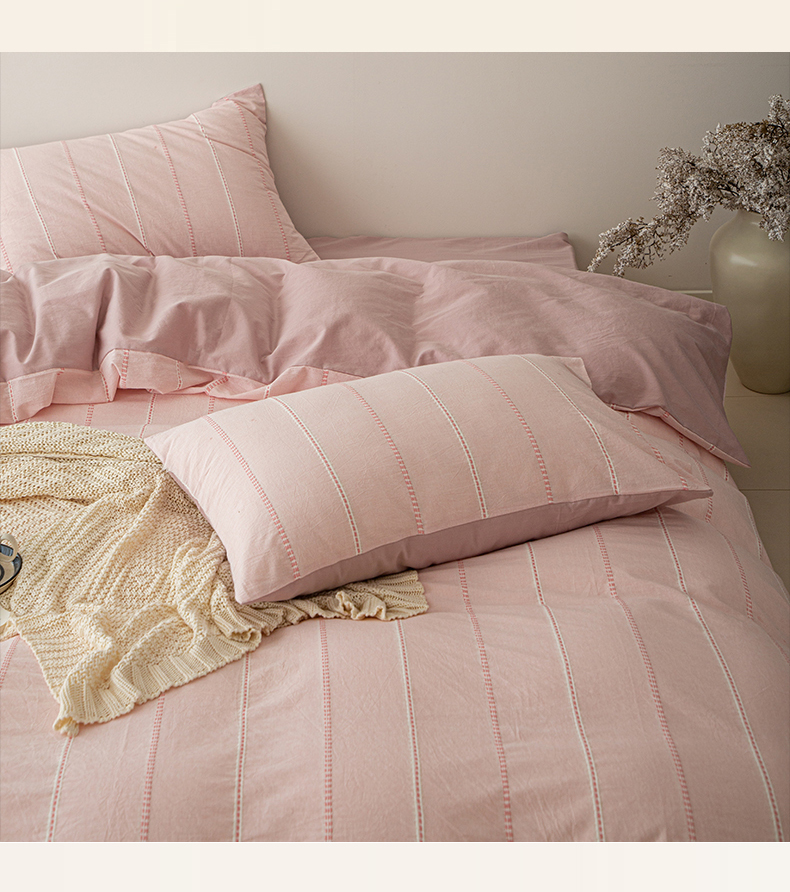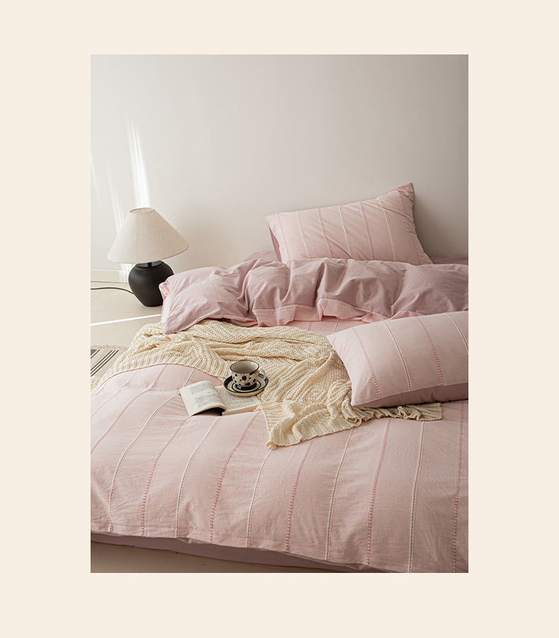 商品名称:棉眠 2025新款色织水洗小提花条纹四件套 序曲-粉