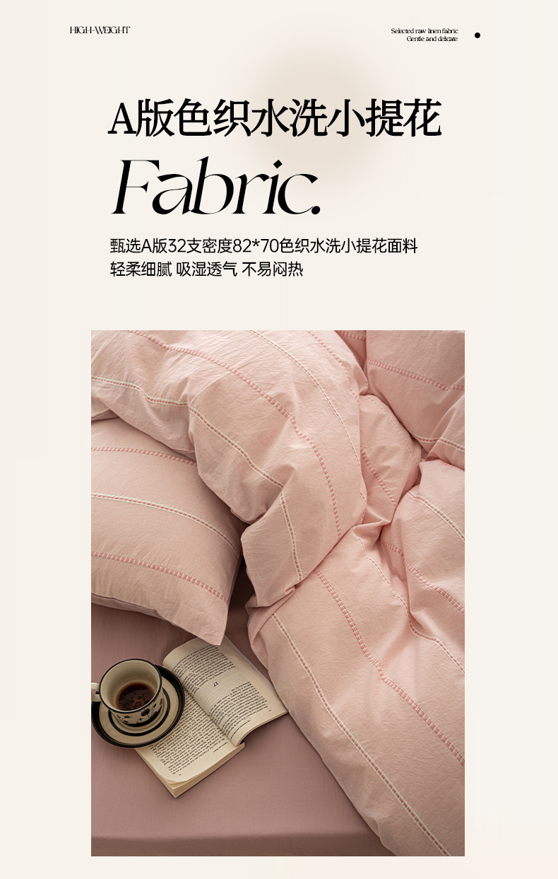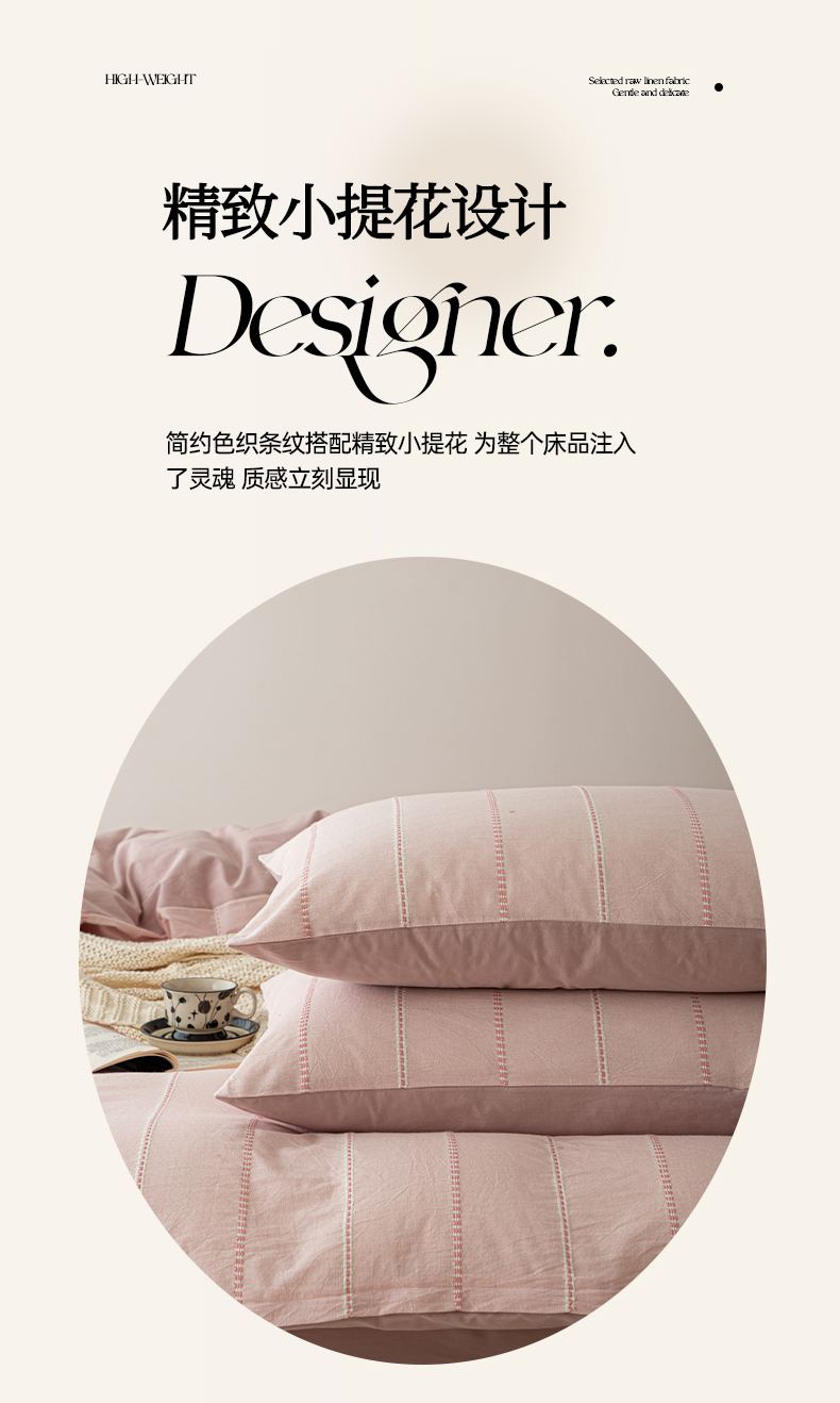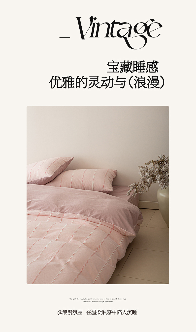 商品名称:棉眠 2025新款色织水洗小提花条纹四件套 序曲-粉
