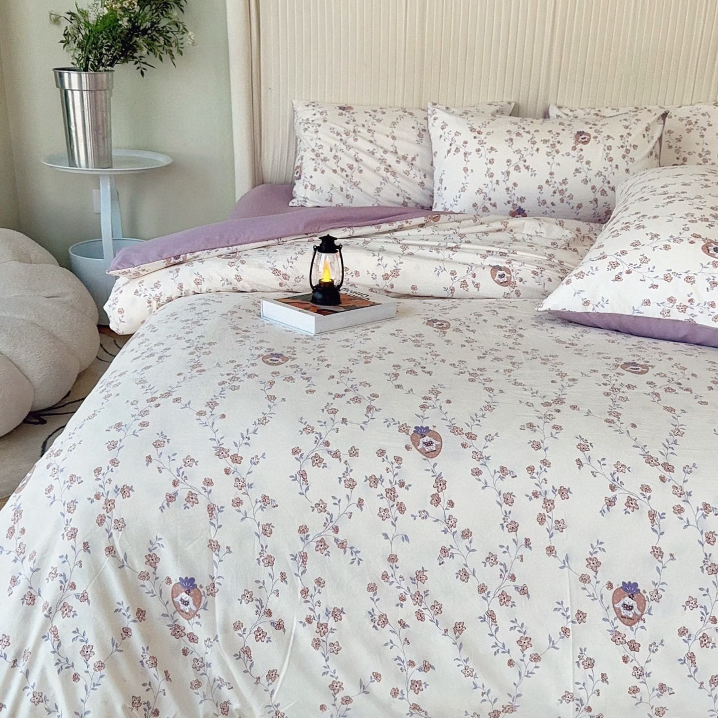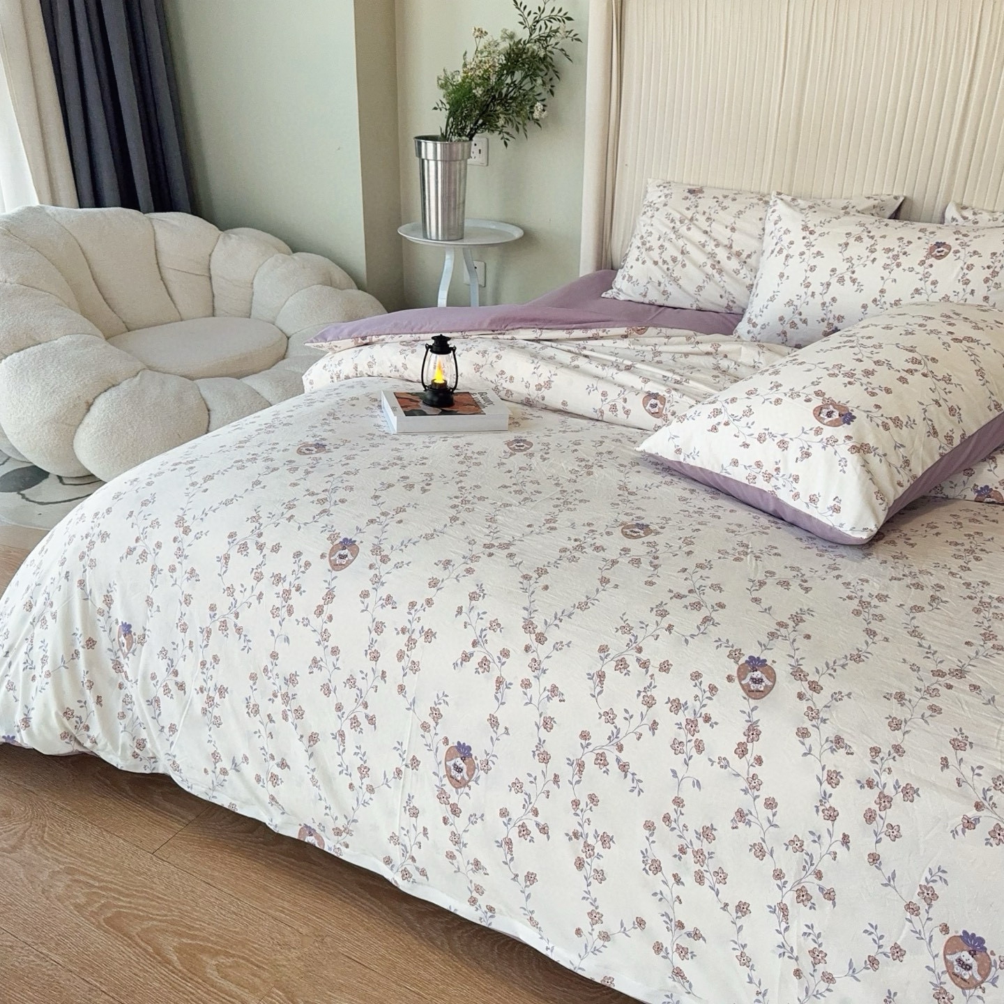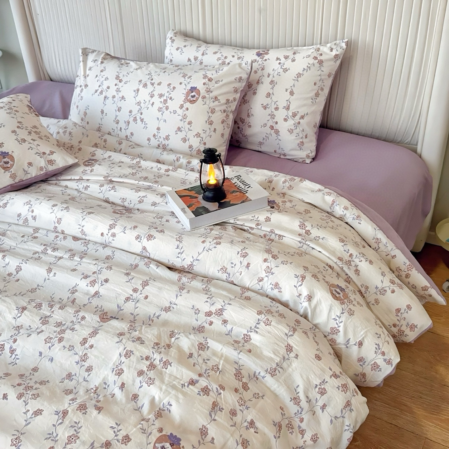 商品名称:兜米家居 2025新款古法水洗棉印花小清新四件套 唯美紫