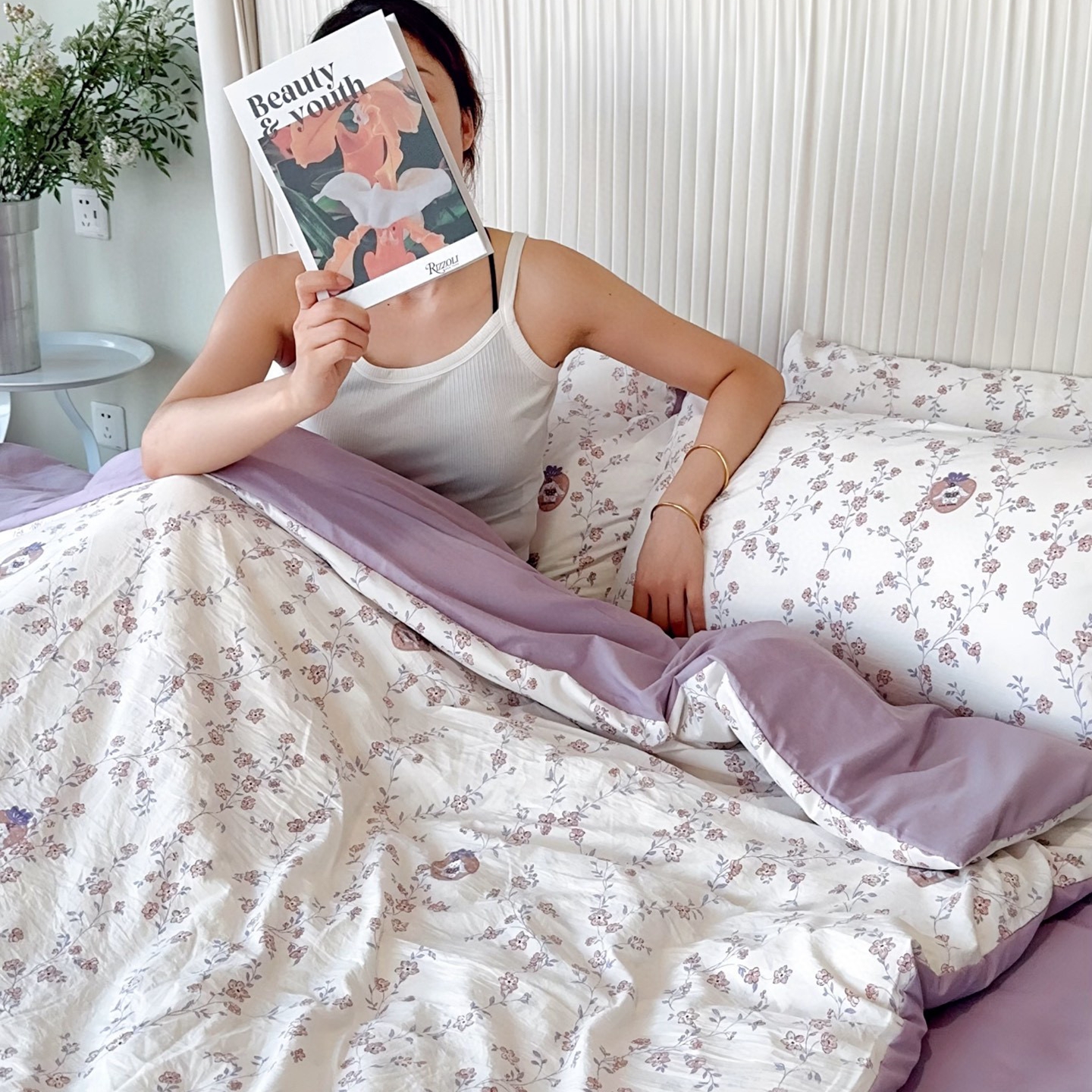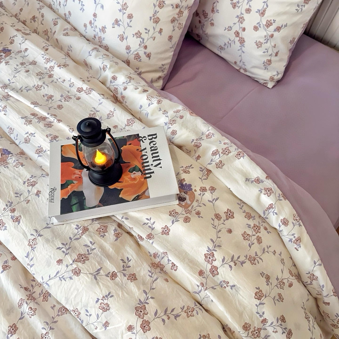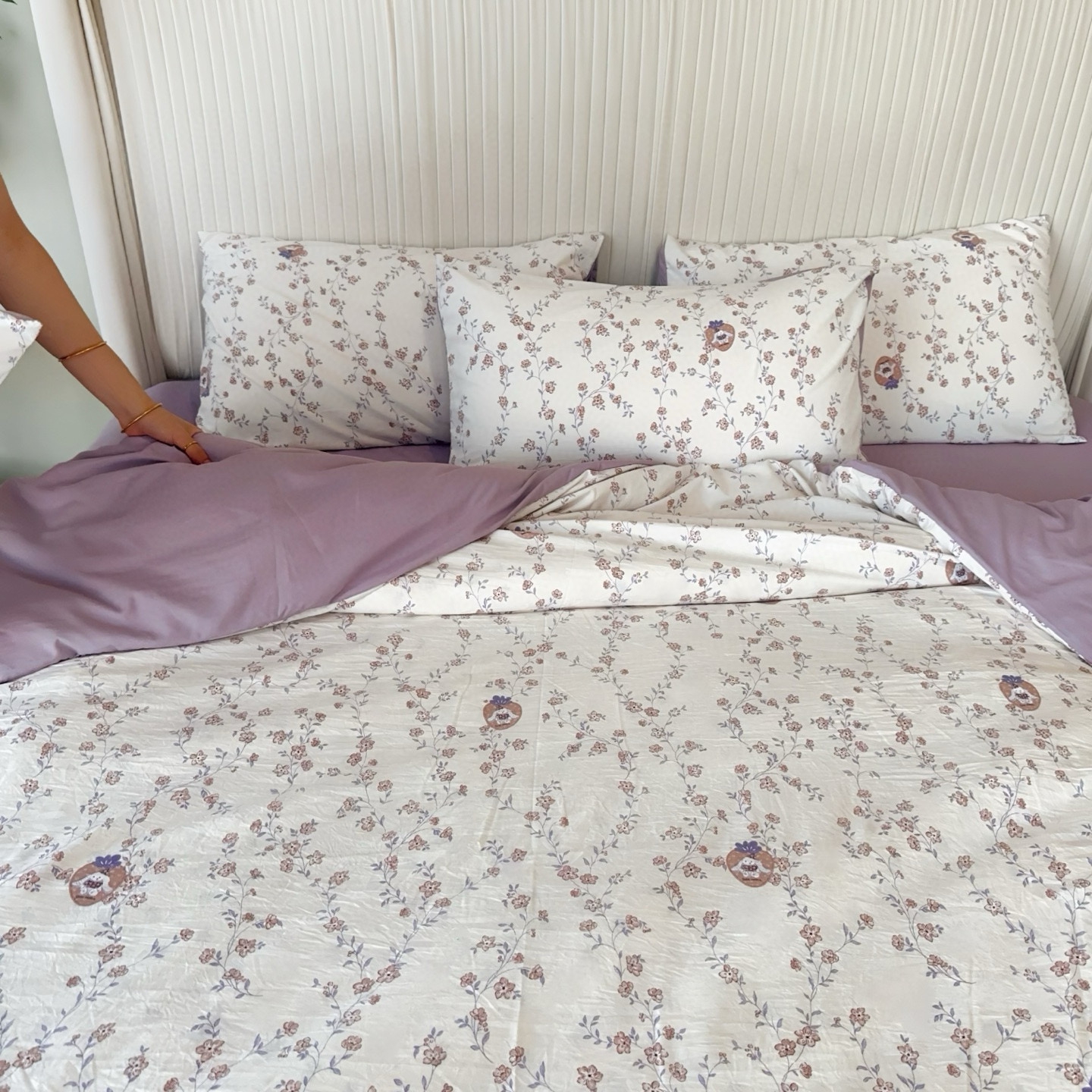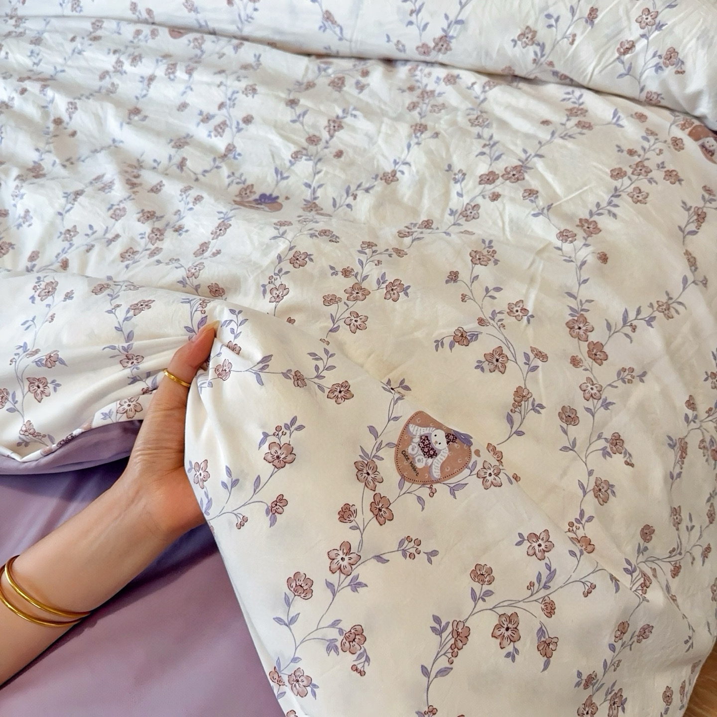 商品名称:兜米家居 2025新款古法水洗棉印花小清新四件套 唯美紫