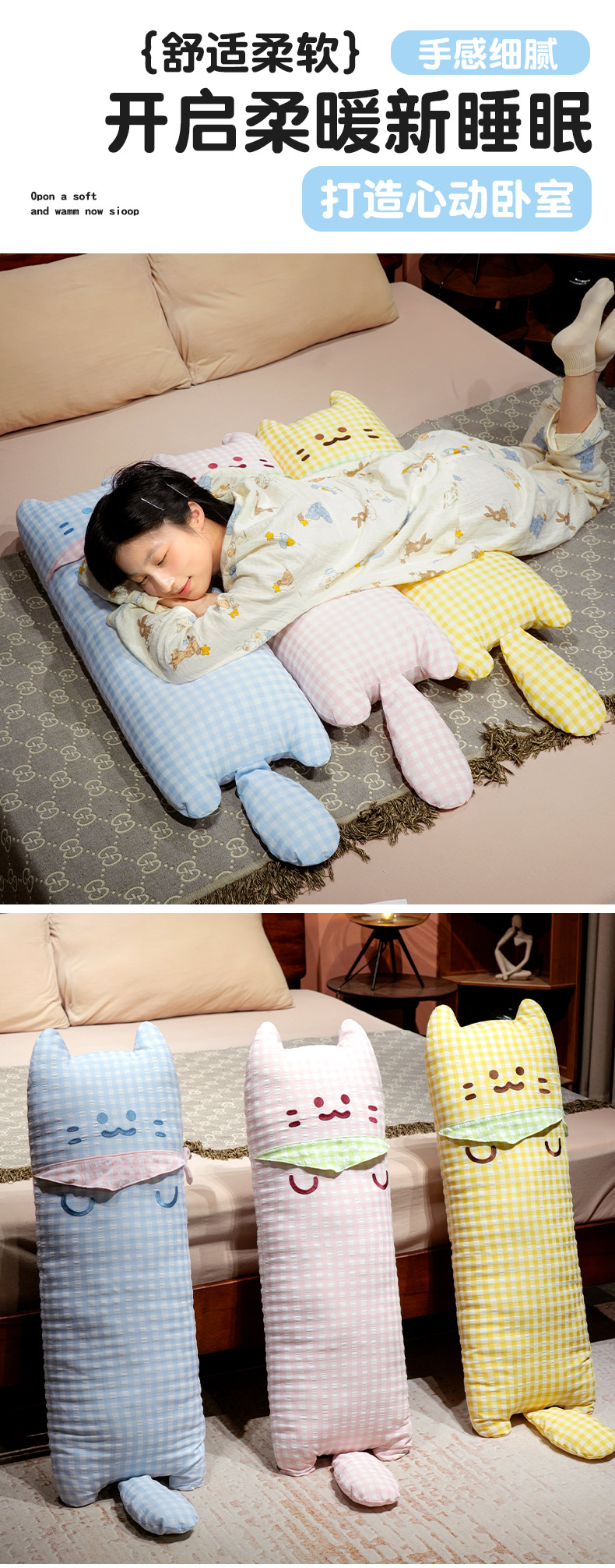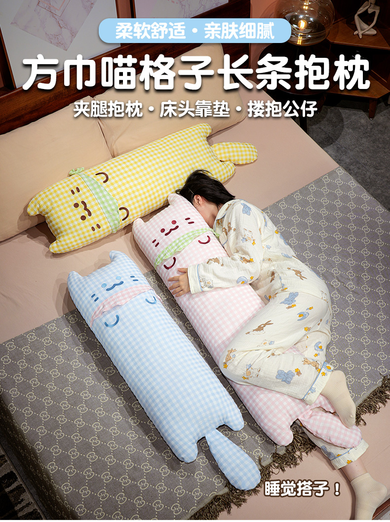当前位置: 91家纺网 > 商品网购 > 居家日用 > 靠垫/抱枕 > 仟亿莱 2025新款格子方巾喵长条睡觉抱枕 粉格方巾喵