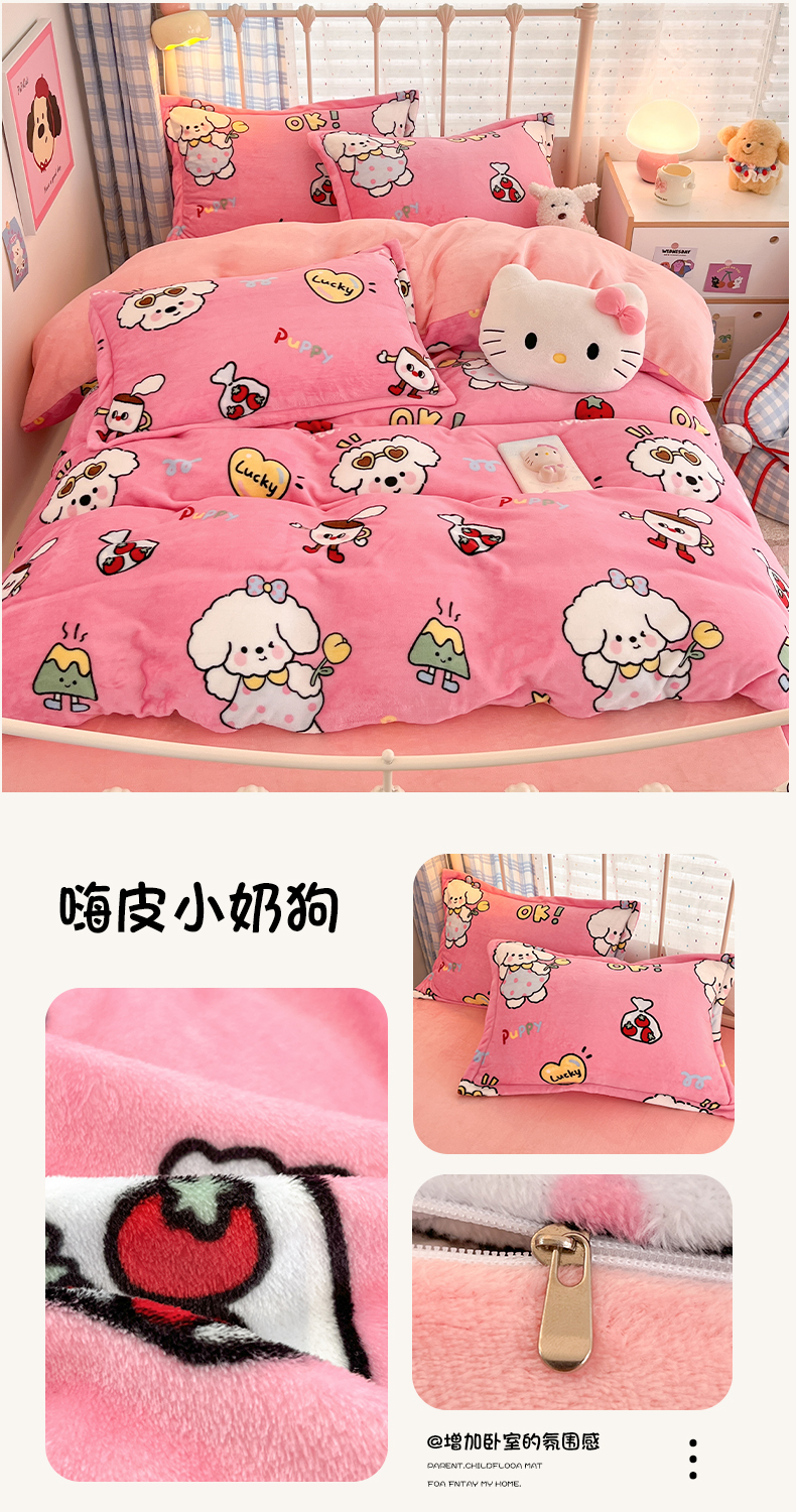 当前位置: 91家纺网 > 商品网购 > 床品套件 > 四件套 > 牛奶绒四件套 > 川悦生活 2025新款加厚牛奶绒印花四件套 嗨皮小奶狗