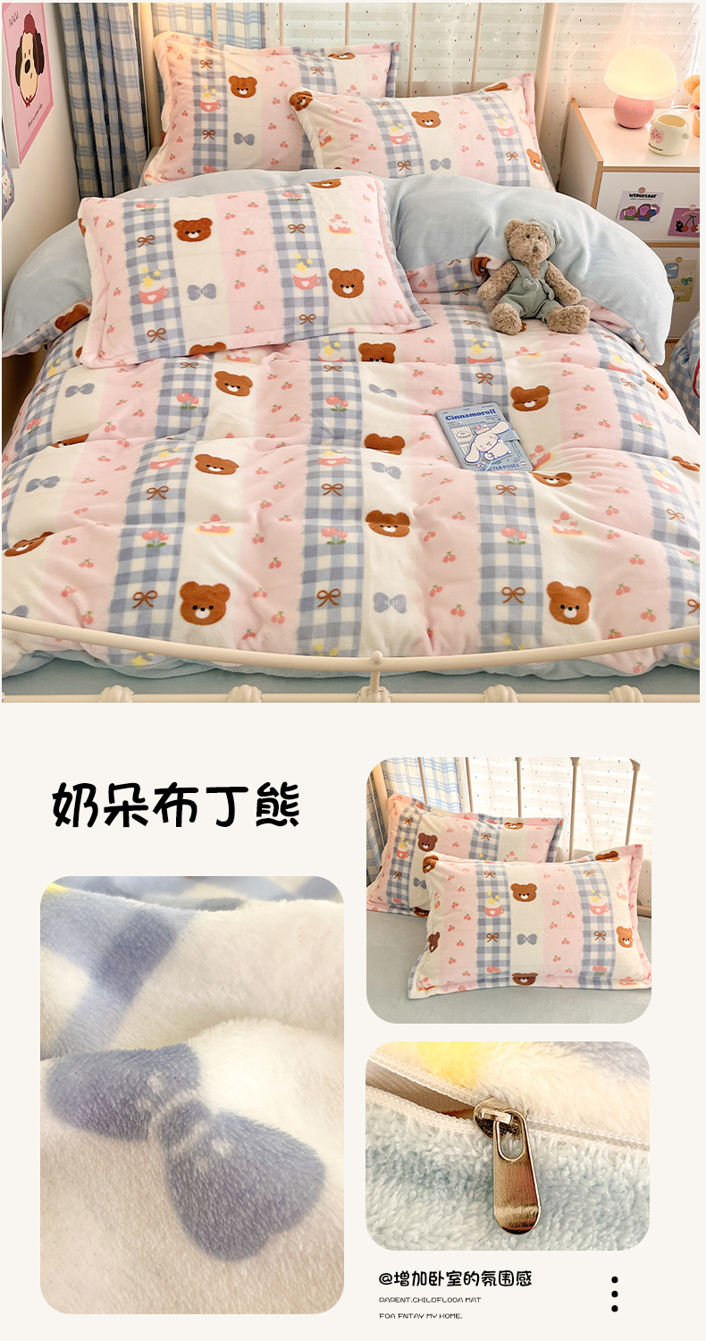 当前位置: 91家纺网 > 商品网购 > 床品套件 > 四件套 > 牛奶绒四件套 > 川悦生活 2025新款加厚牛奶绒印花四件套 奶朵布丁熊
