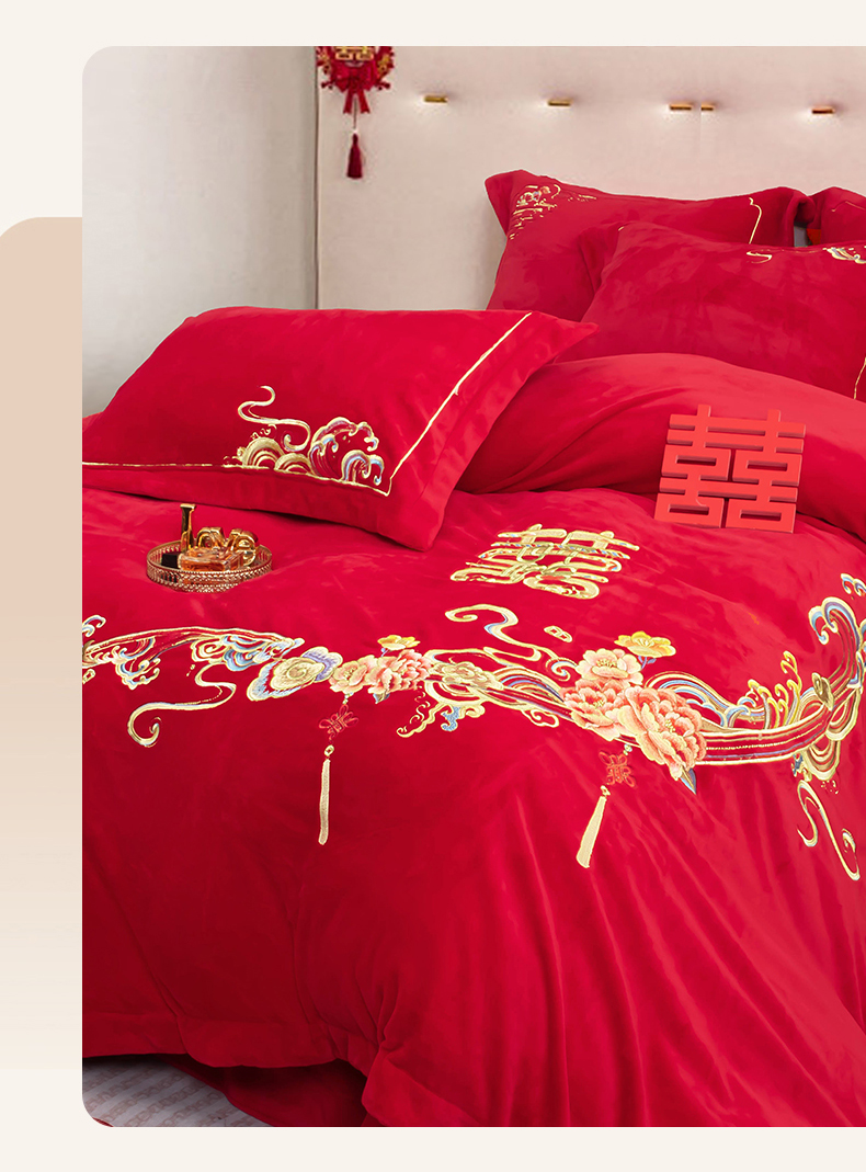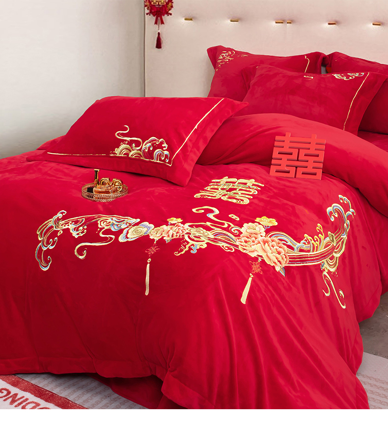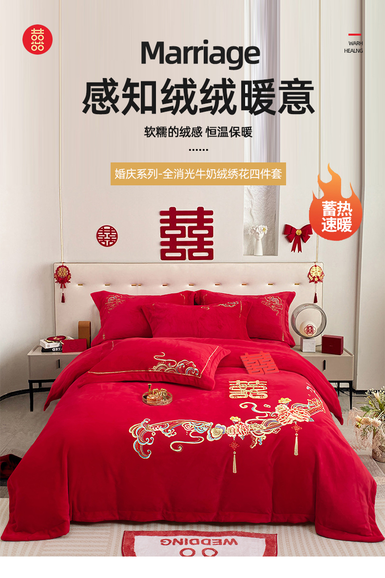 (总)千禧家纺 2025新款加厚高克重全消光牛奶绒刺绣婚庆四件套,百年好合(绒),龙凤喜事(绒),早生贵子(绒),缔结良缘,福禧生财,龙凤赐福,龙吟凤舞,喜嫁龙凤,喜临门