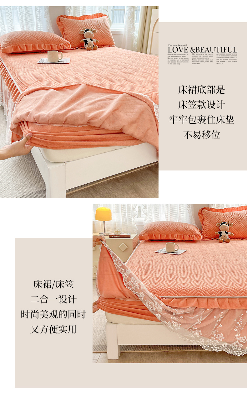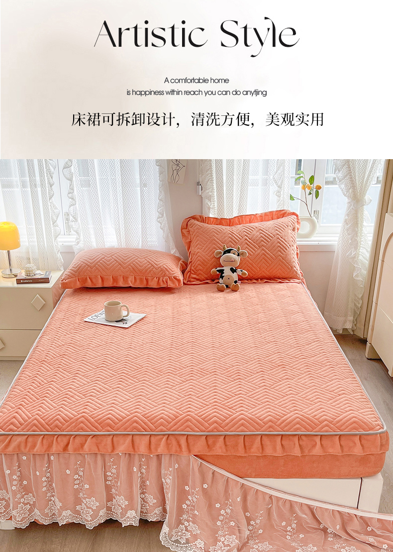 家之硕家纺 2025秋冬款多功能牛奶绒可拆卸式床笠床裙 暖橙色