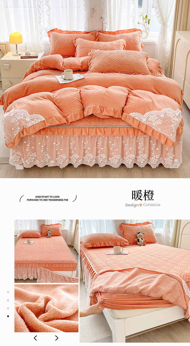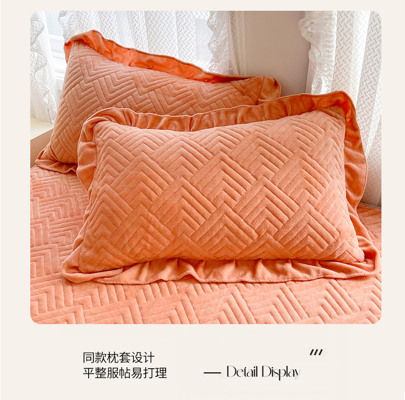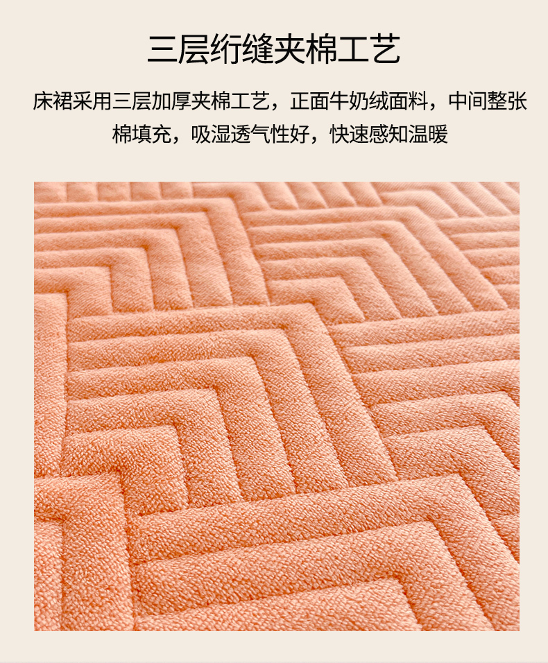• 91家纺网 家纺一手货源 找家纺 家之硕家纺2025秋冬款多功能牛奶绒可拆卸式床笠床裙 暖橙色