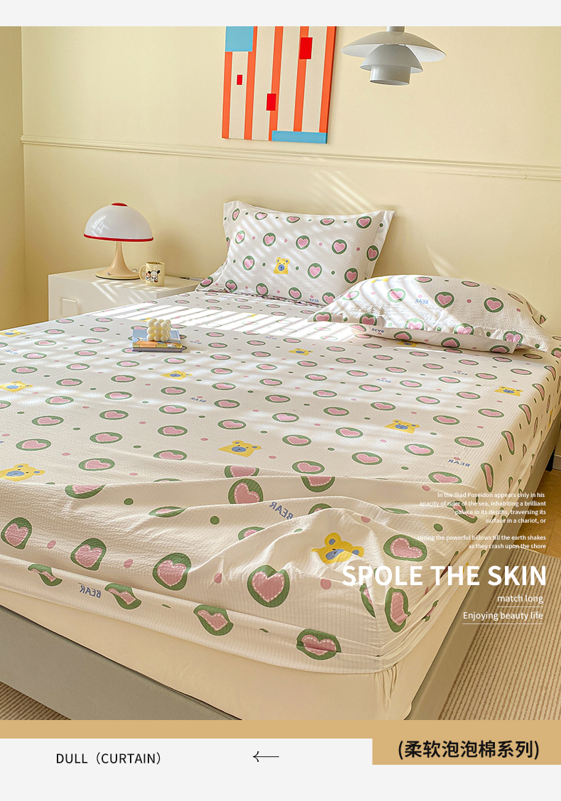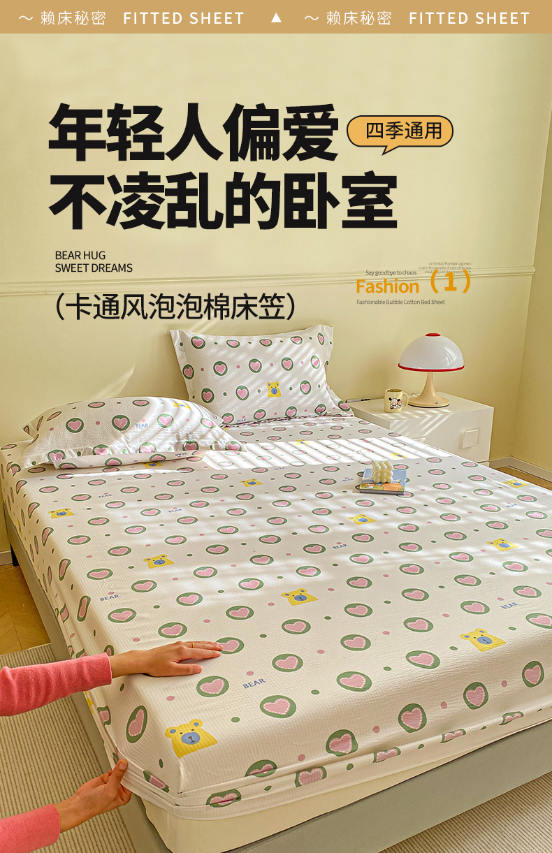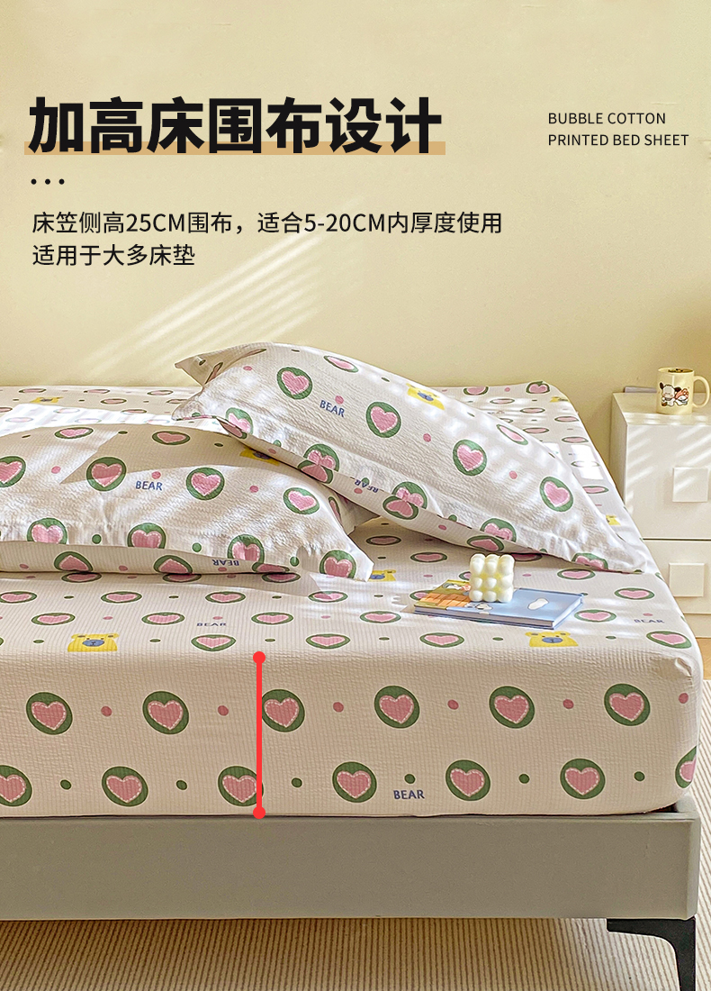 恬澳家纺 2025新款A类印花泡泡棉床笠-场景一 爱心圈圈