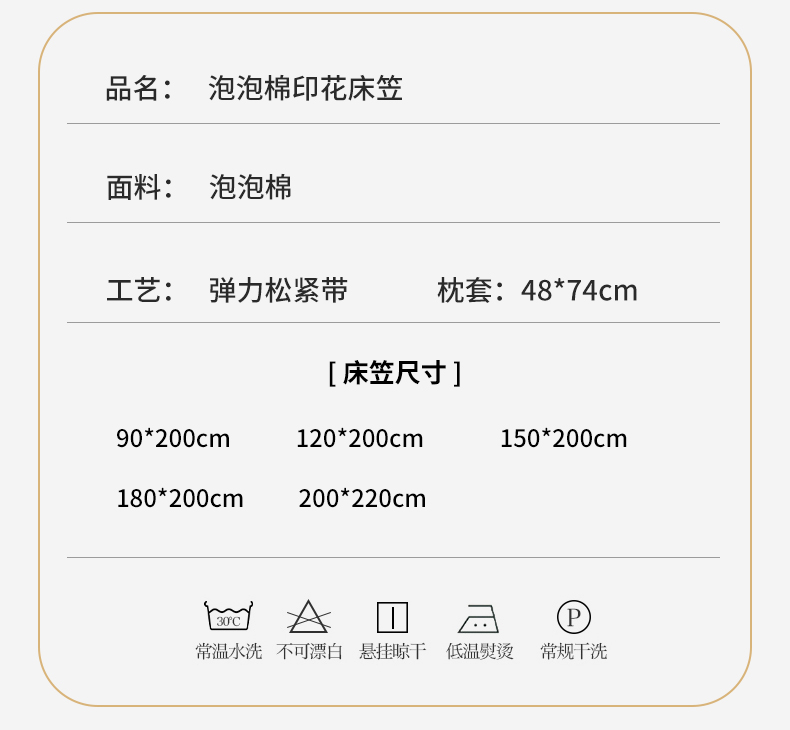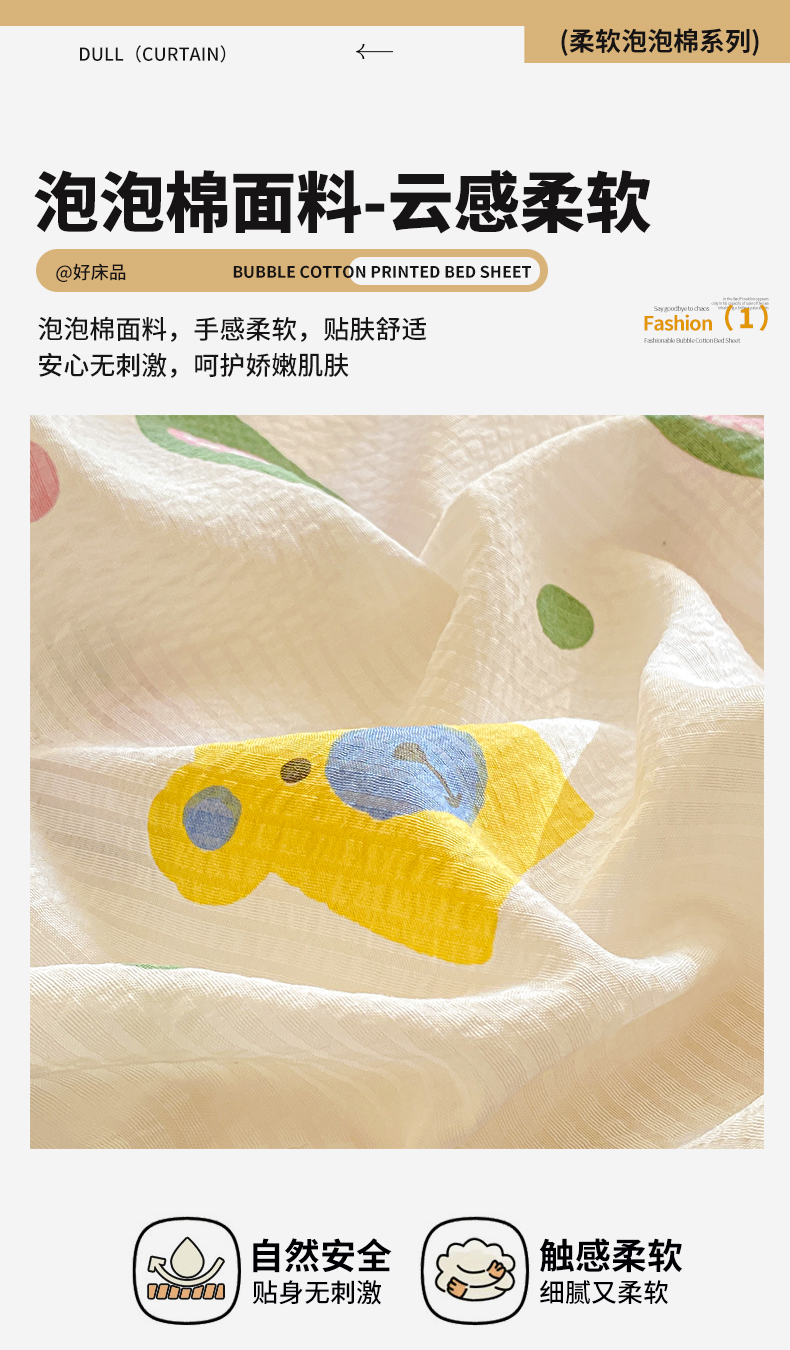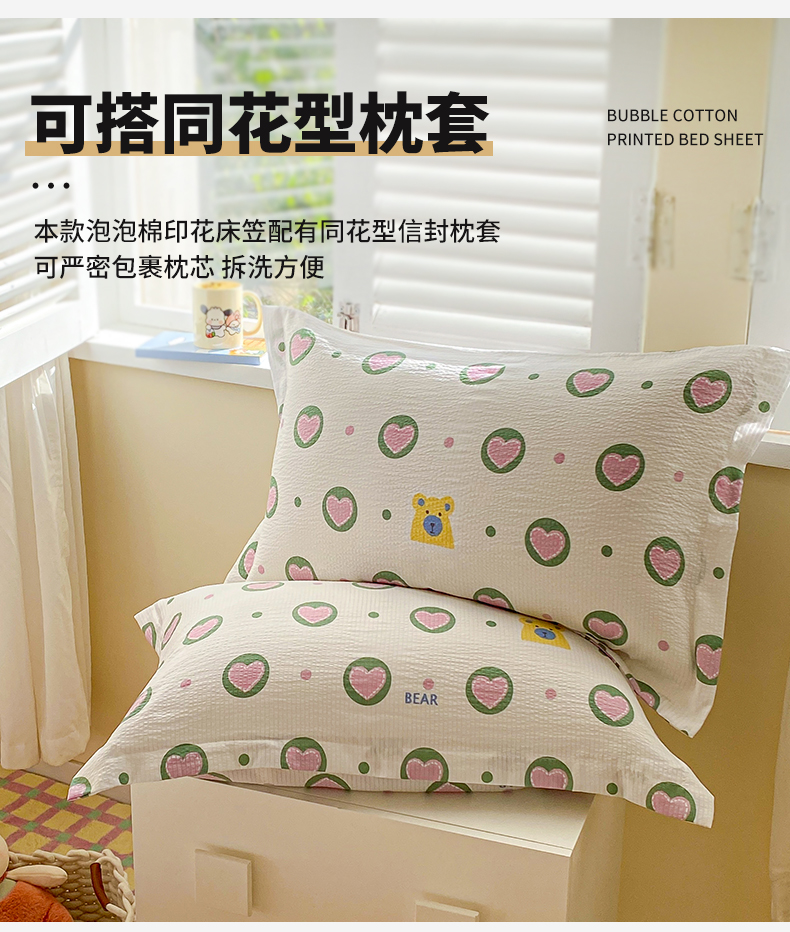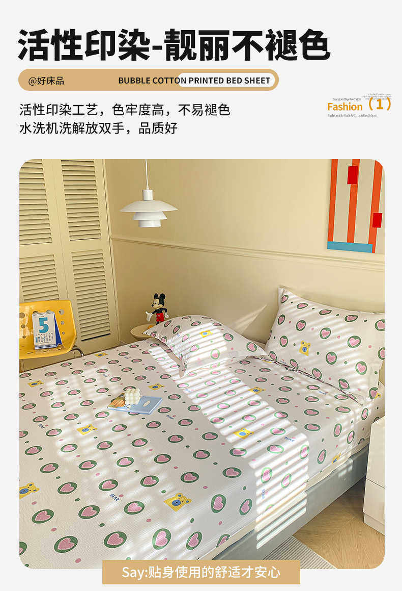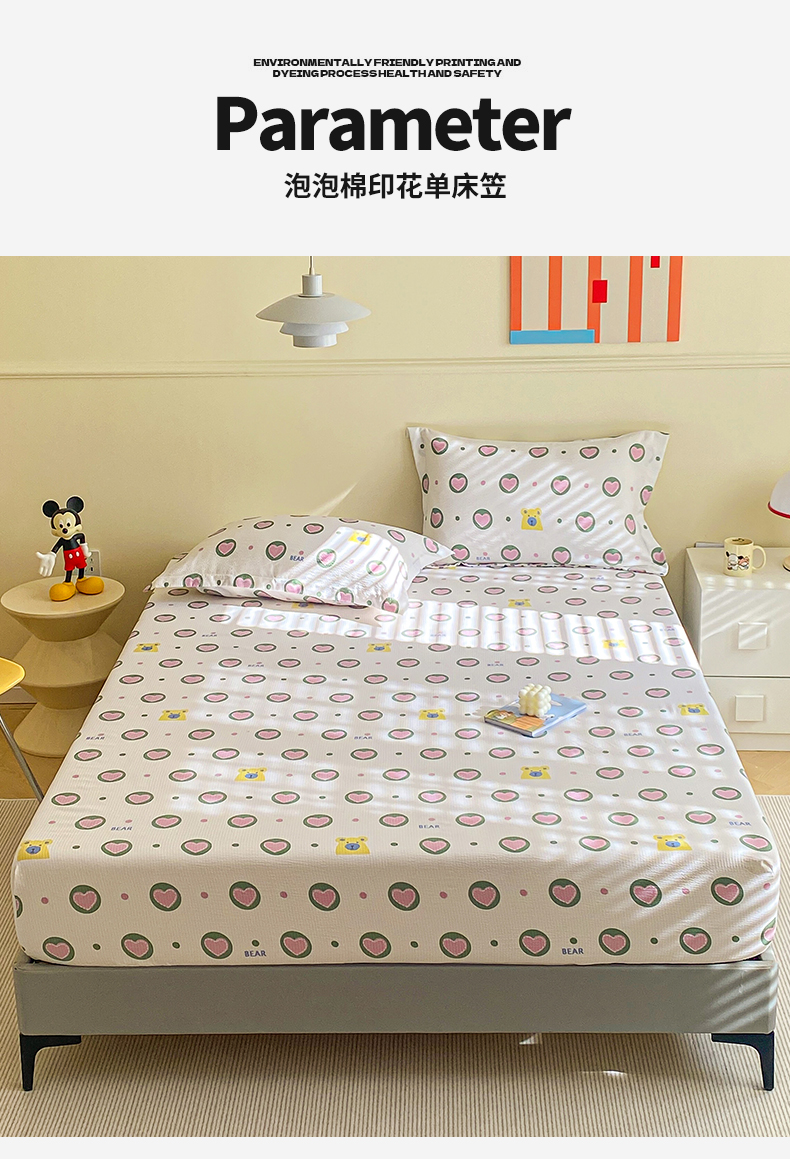 商品名称:恬澳家纺 2025新款A类印花泡泡棉床笠-场景一 爱心圈圈