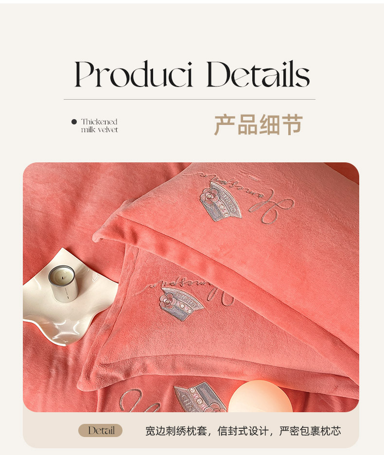 (总)丝印良品 2025新款秋冬加厚公主日记牛奶绒四件套,月白,爱马仕橙,风信紫,高级灰,宁静蓝,藕荷粉,珊瑚粉