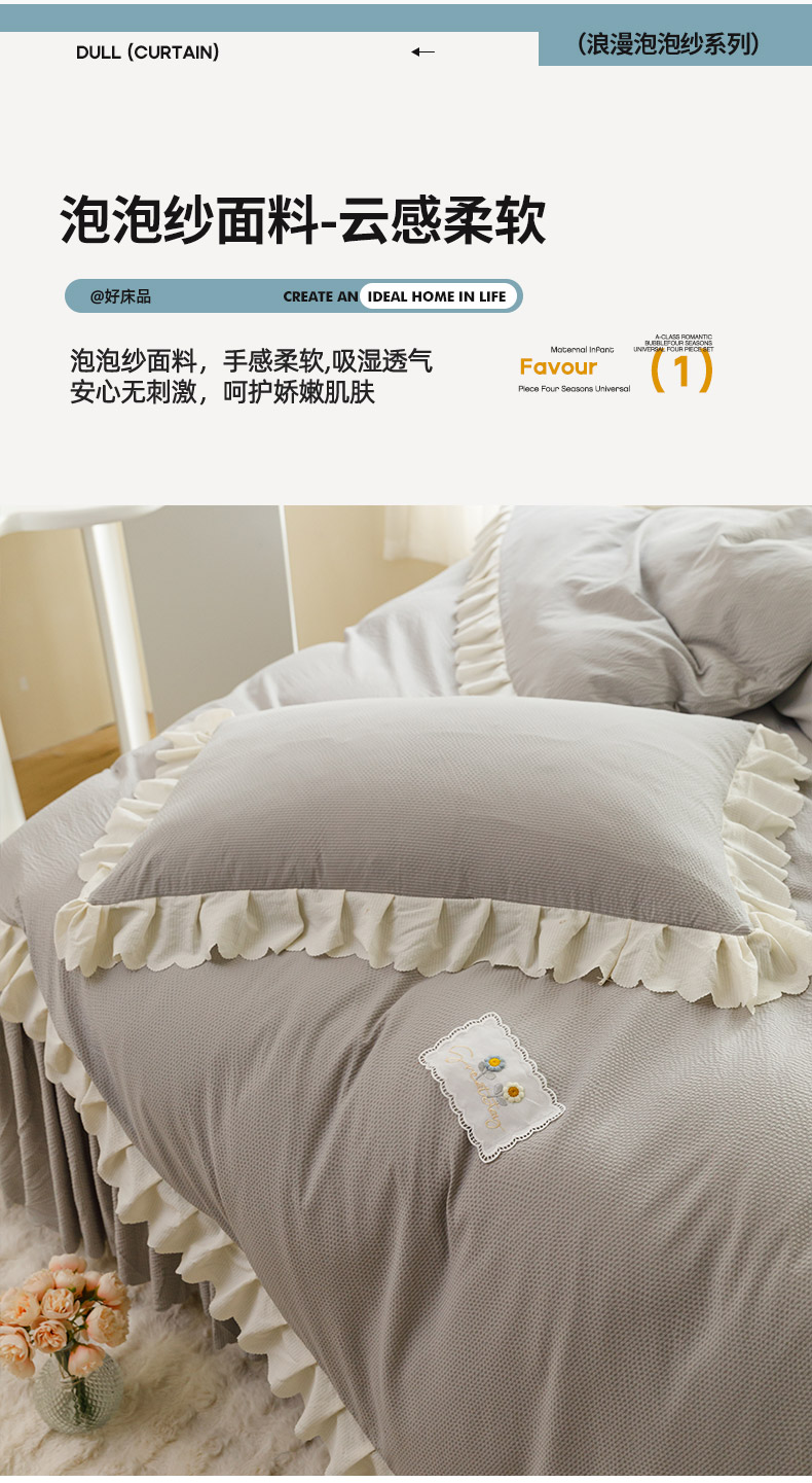 商品名称:(总)丝印良品 2025新款四季款夹棉泡泡纱床裙床笠被套四件套系列