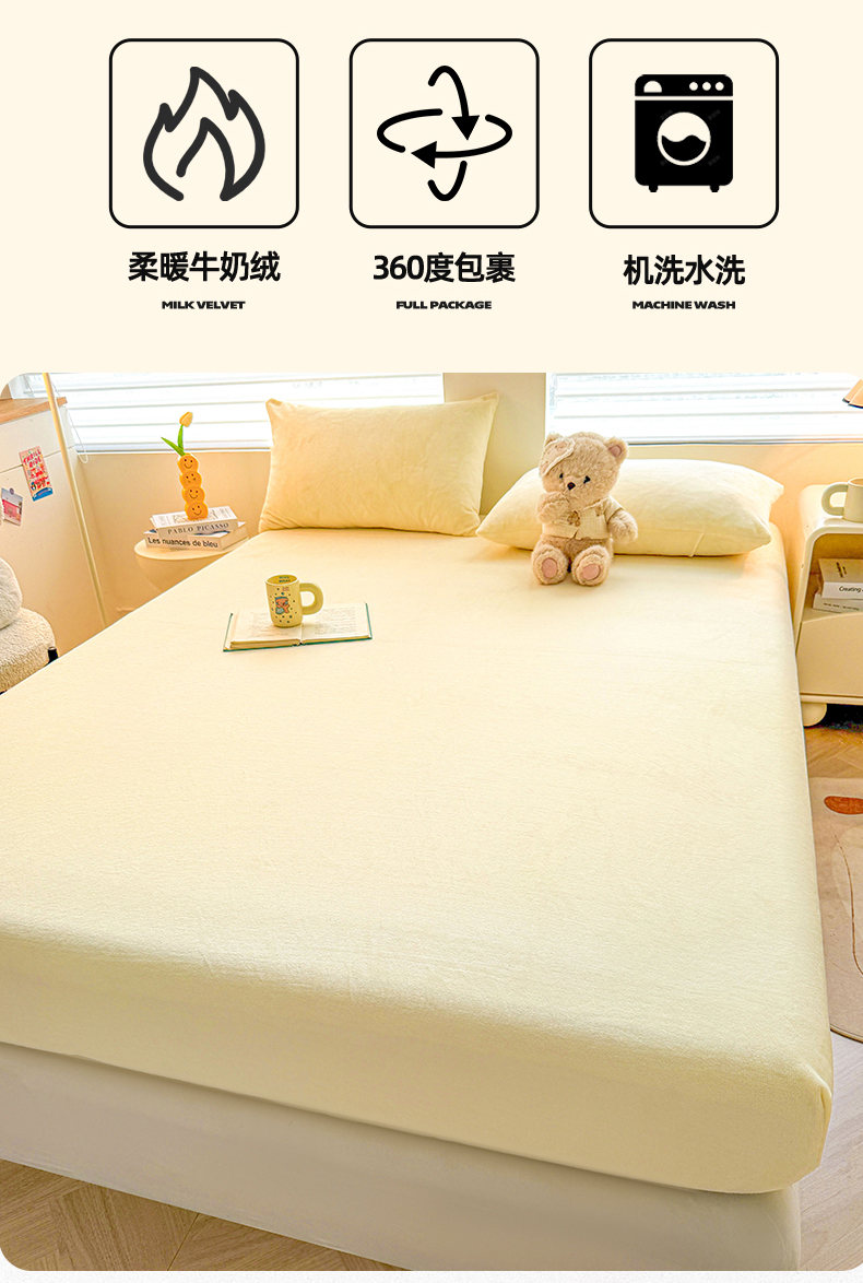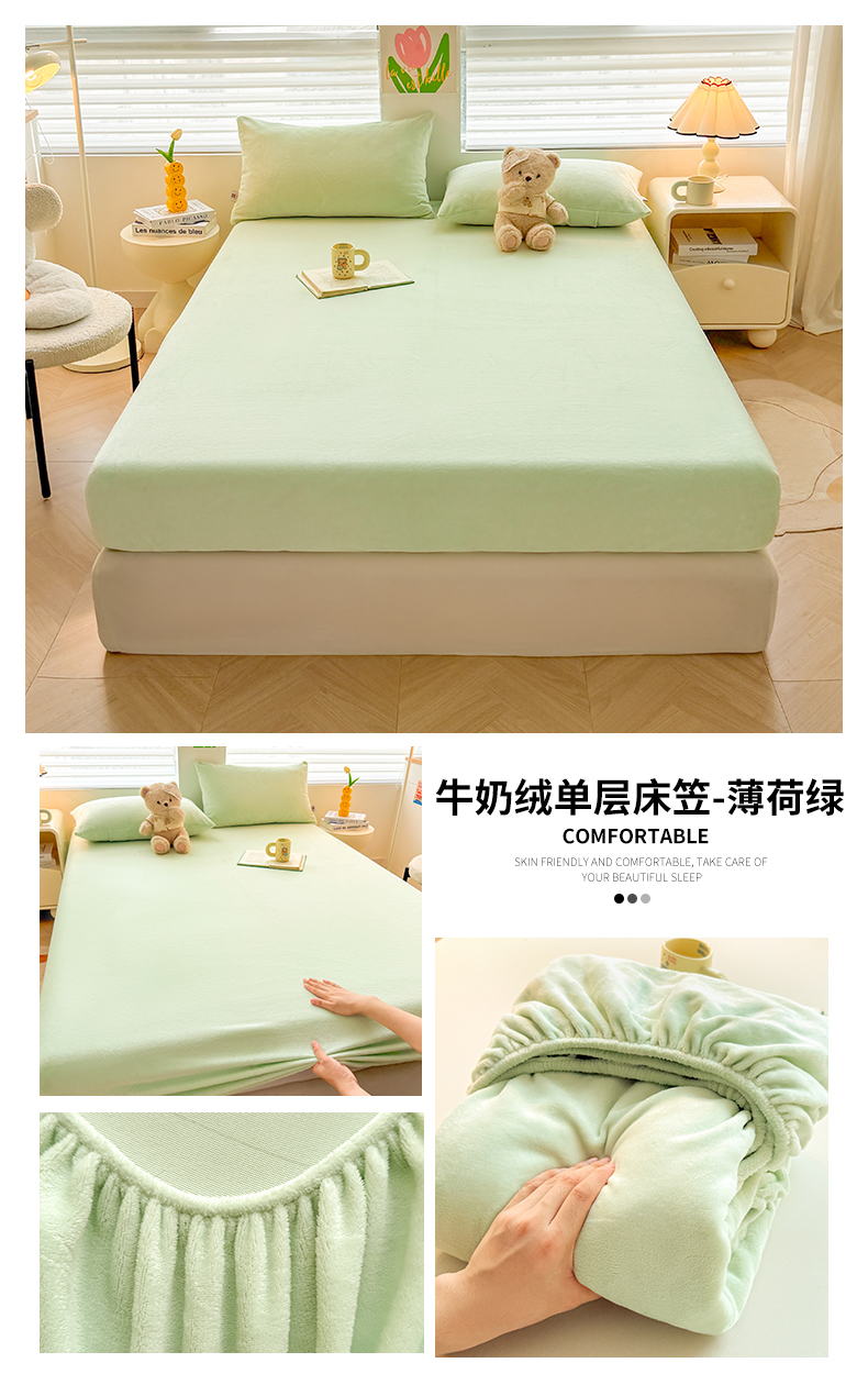 • 91家纺网 家纺一手货源 找家纺 雯豆家纺 2025新款单层高克重牛奶绒纯色床笠素色床垫保护套 牛奶绒单层床笠-薄荷绿