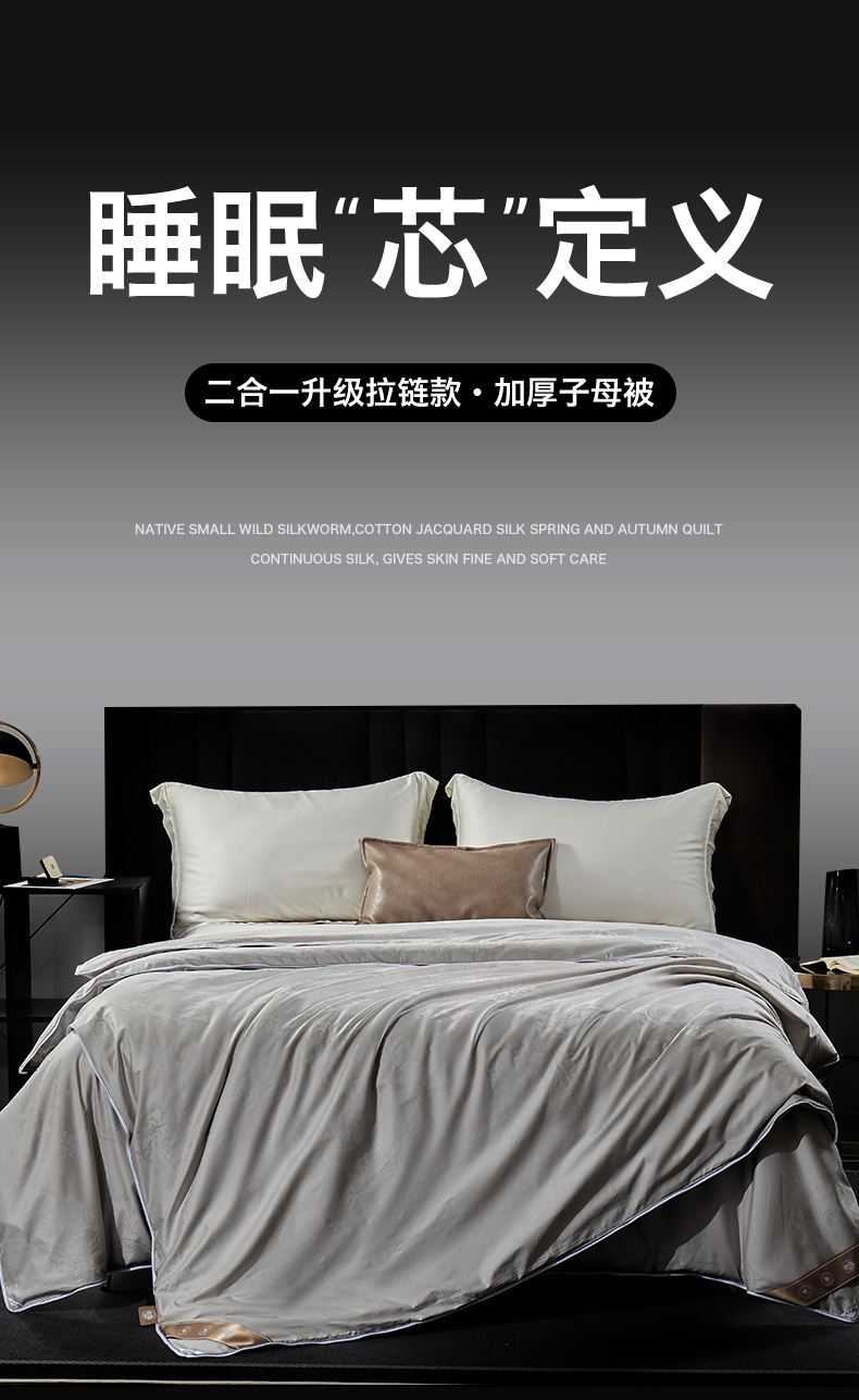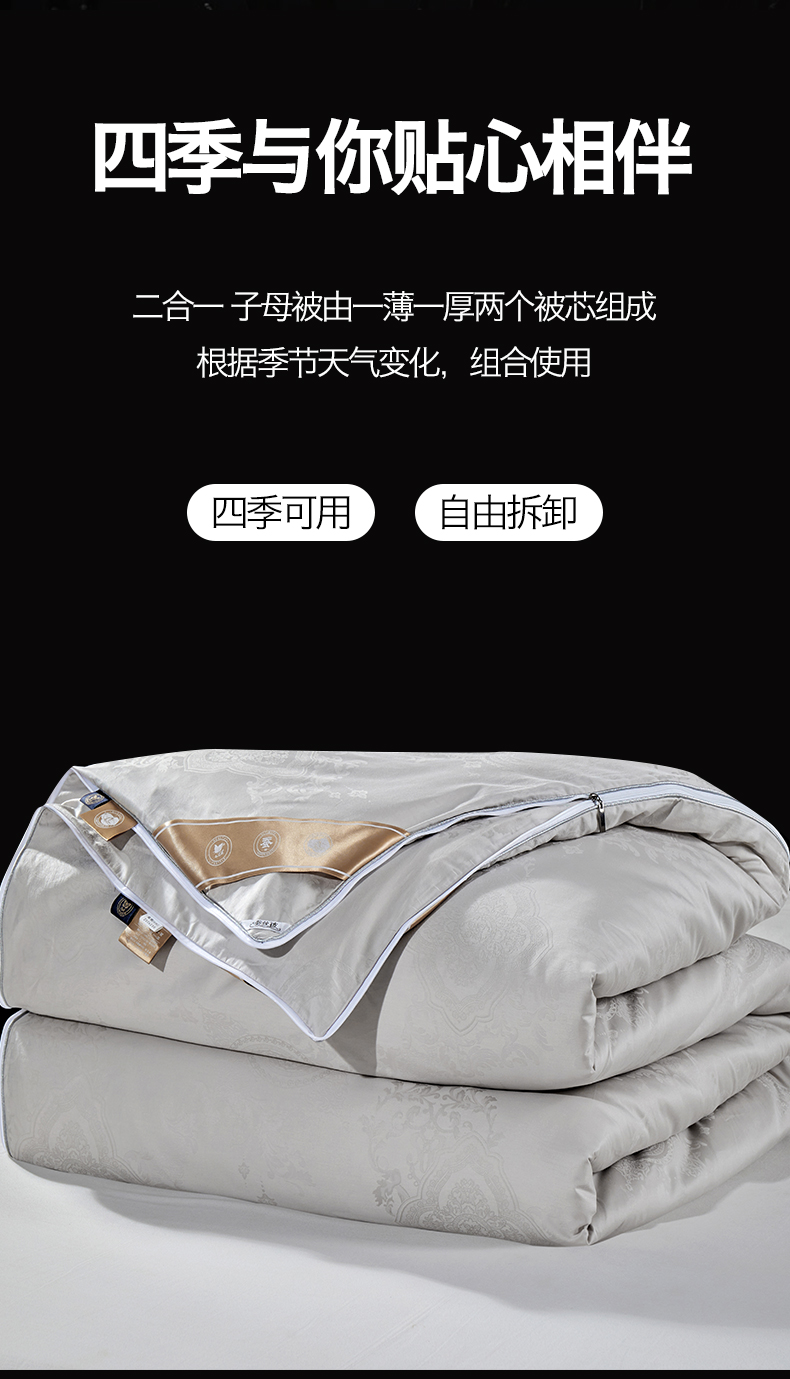 商品名称:群鹿蚕丝羽绒馆 【榨蚕丝填充包过质检】2025新款拉链升级款蚕丝二合一加厚子母被被子被芯 灰