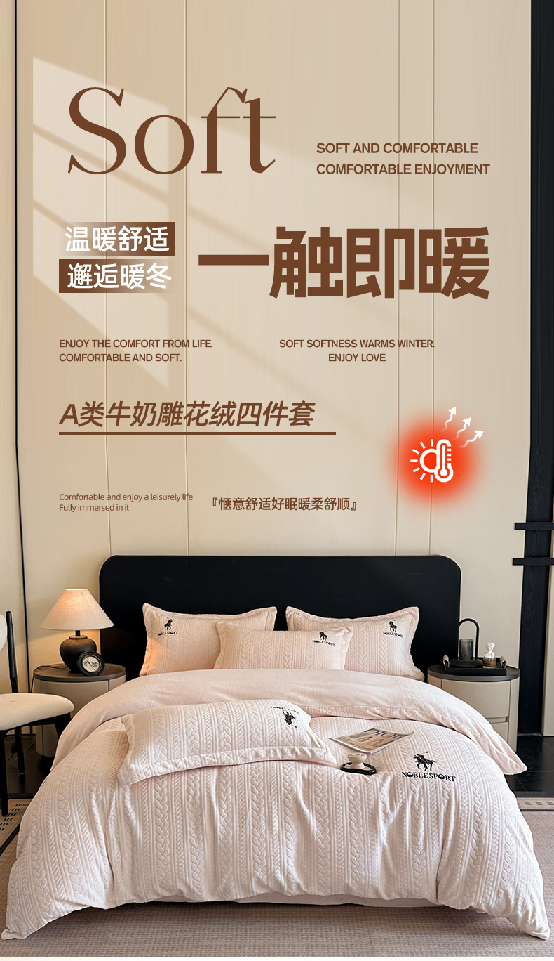 (总)爱家(原缔乐家纺) 2025新款牛奶雕花绒四件套-香香公主,香香公主-公主粉,香香公主-梦幻紫,香香公主-奶油黄