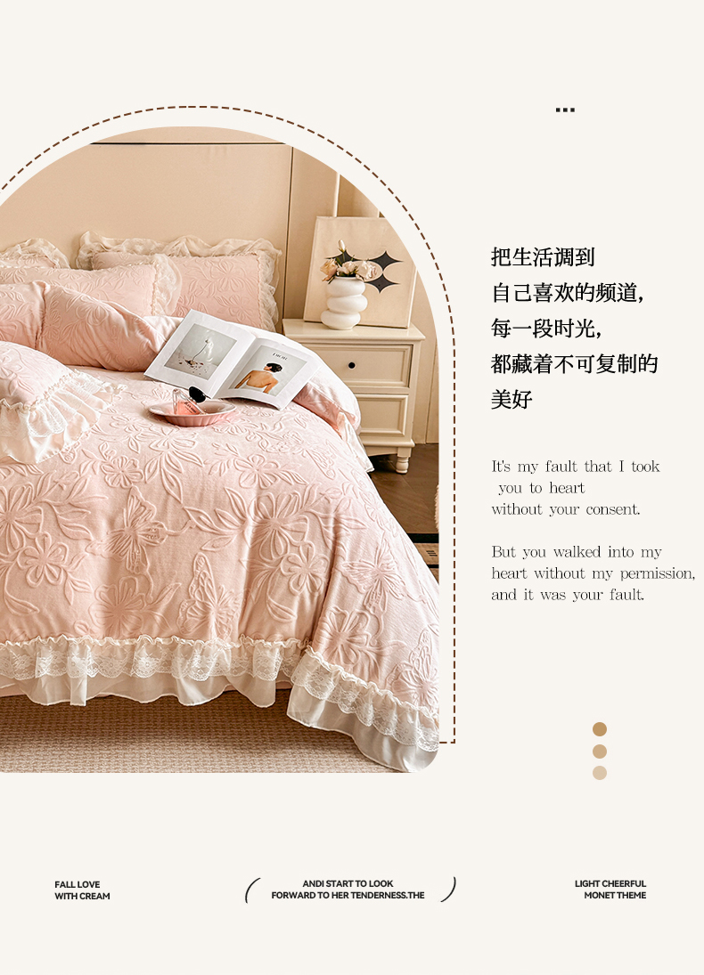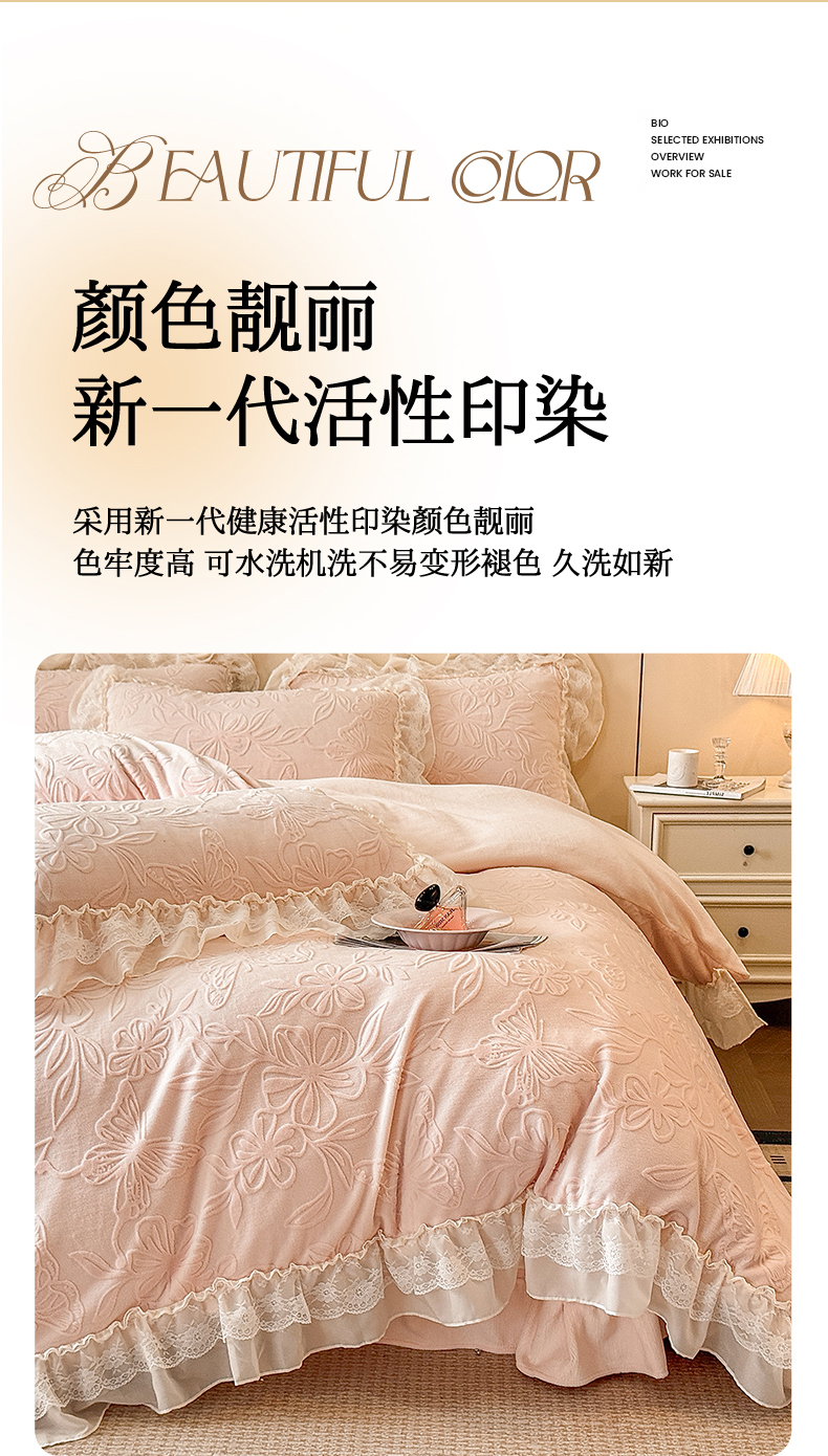 当前位置: 91家纺网 > 商品网购 > 床品套件 > 四件套 > 牛奶绒四件套 > 爱家(原缔乐家纺) 2025新款A类牛奶雕花绒四件套 花野漫屿系列 花野漫屿-奶昔白