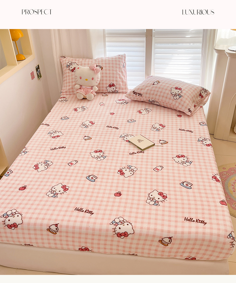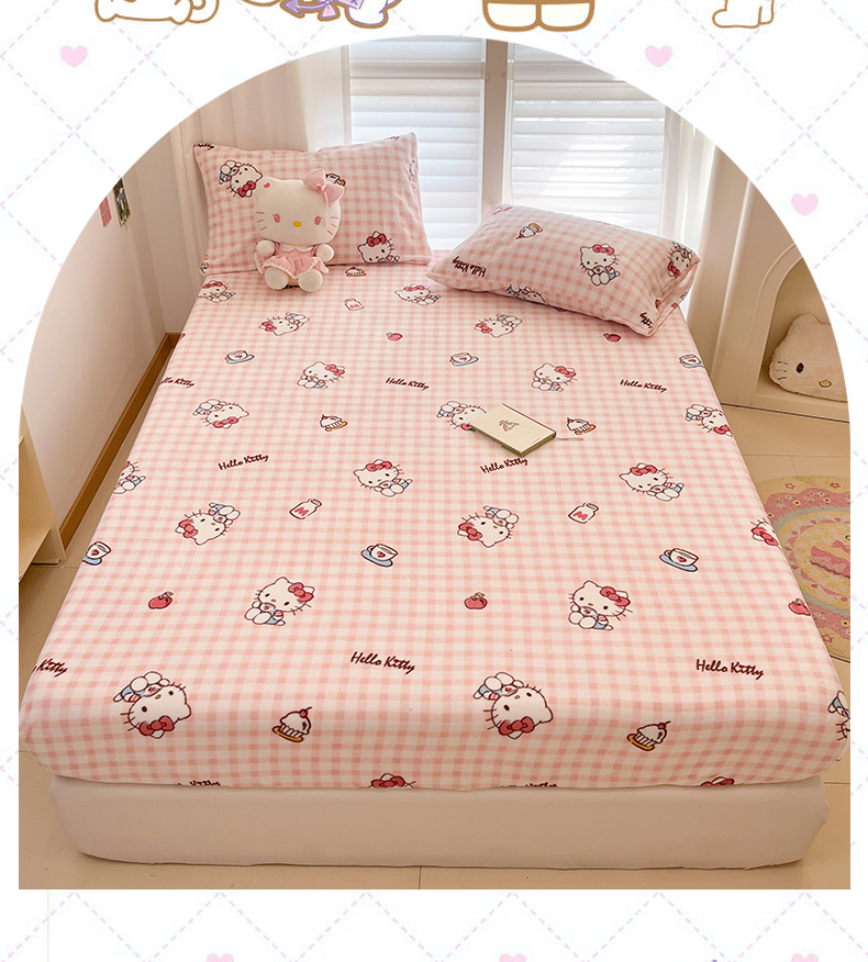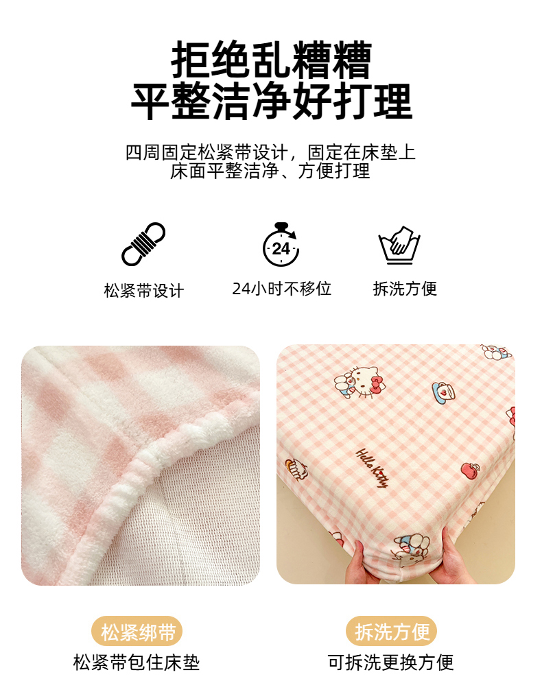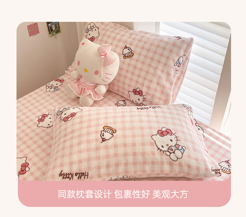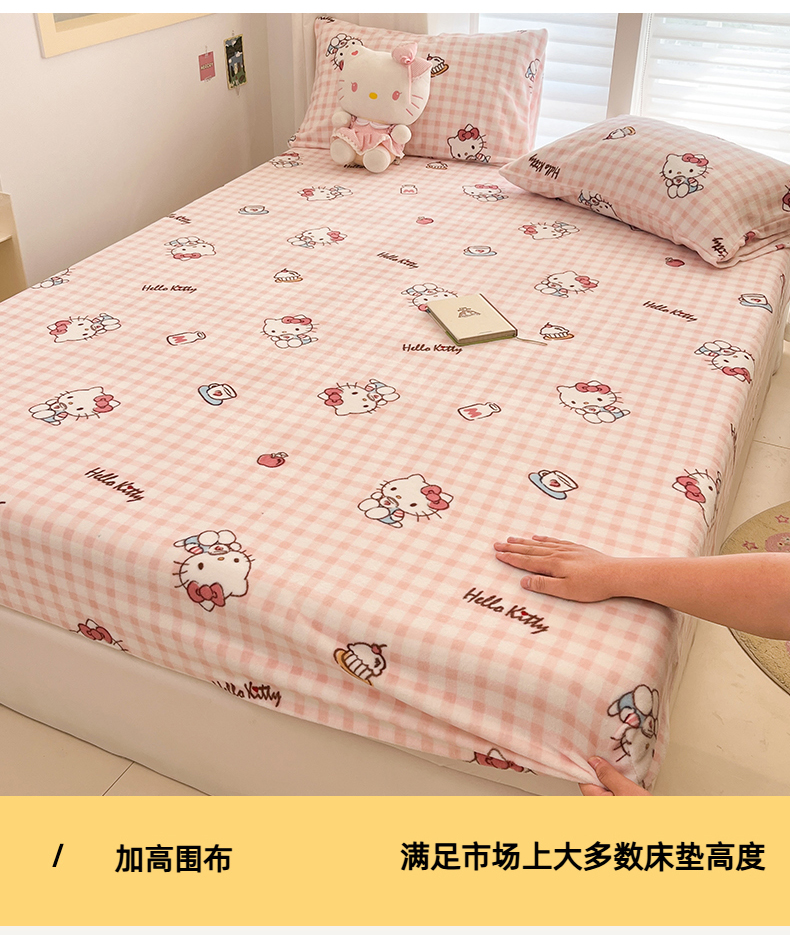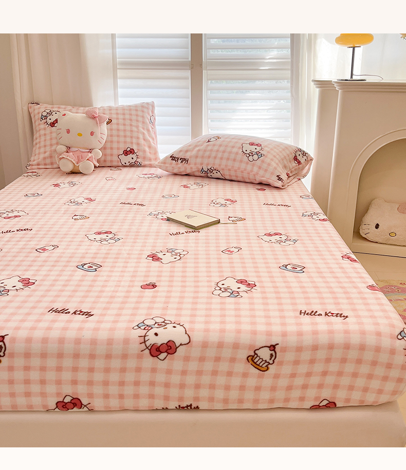金爱家 2025新款三丽鸥牛奶绒床笠单床笠床笠单件 绒单品-甜心kt粉