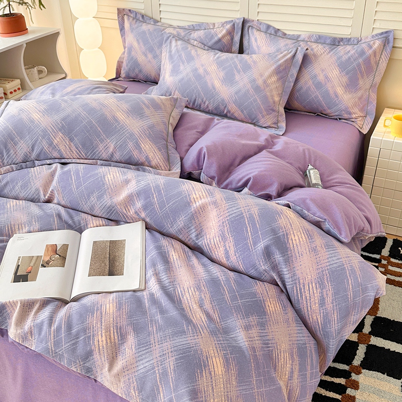 简约 2025新款全棉四件套活性生态磨毛四件套 暮色-紫,暮色-紫