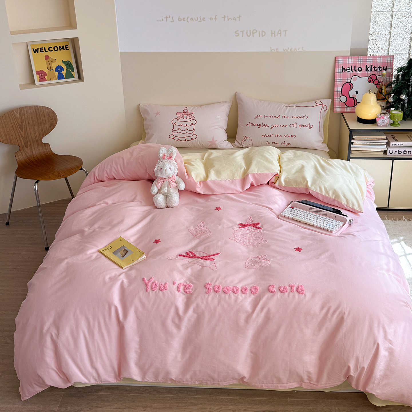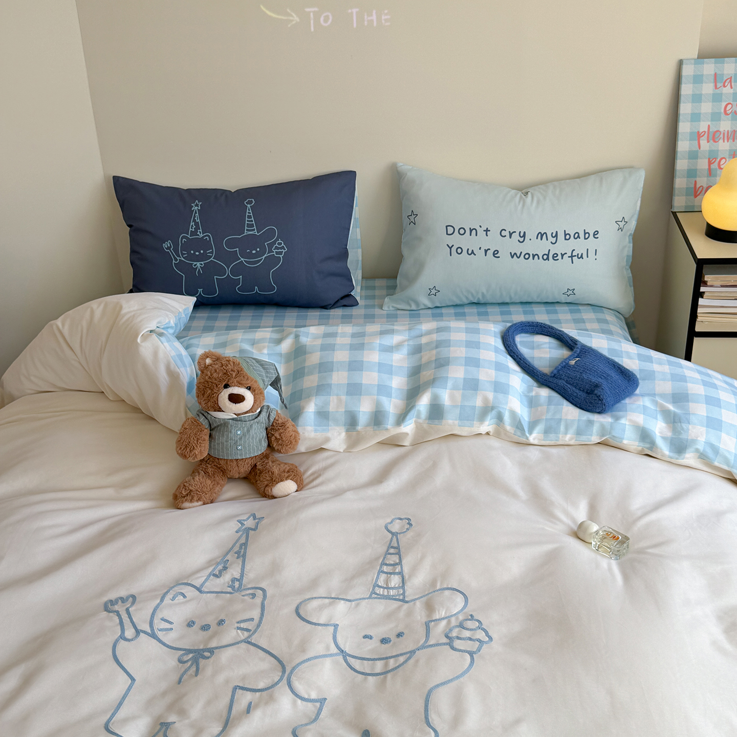 (总)美乐迪家纺 2026新款云感双层纱贴布绣四件套,睡货小狗,兔头小猫