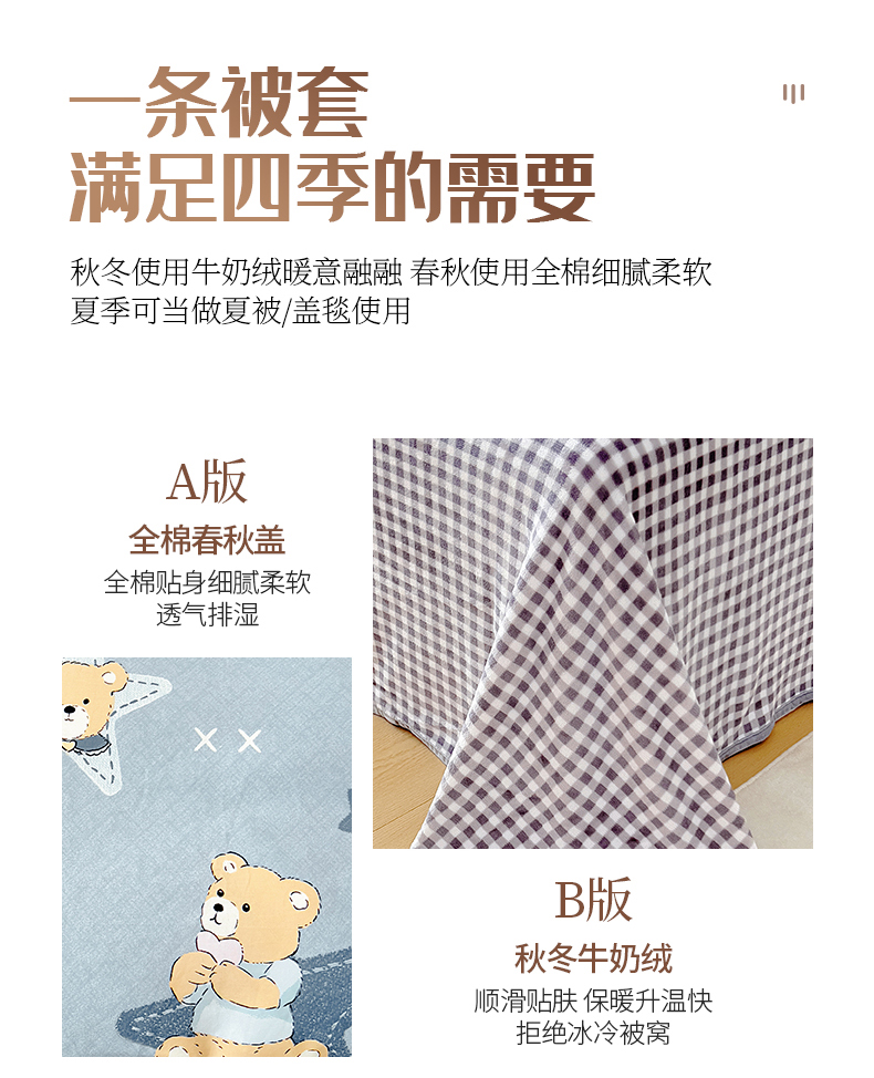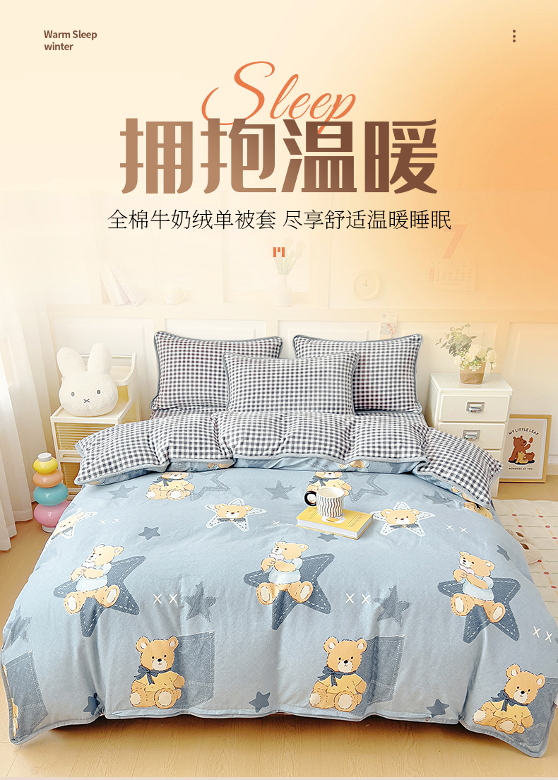 (总)琪琪阁 2023新款全棉加牛奶绒单被套,爱尔威,安迪小熊,初恋日记,格韵空间,简约人生,克洛伊,恐龙家族,快乐伙伴,铃兰,萌萌兔,蘑菇屋,宁静生活,手绘浪漫,太空熊,向阳花开,小可爱,笑脸草莓,幸福花开,幸运熊,雅蔓,阳光花梦,悠然,玉芙蓉,字母熊