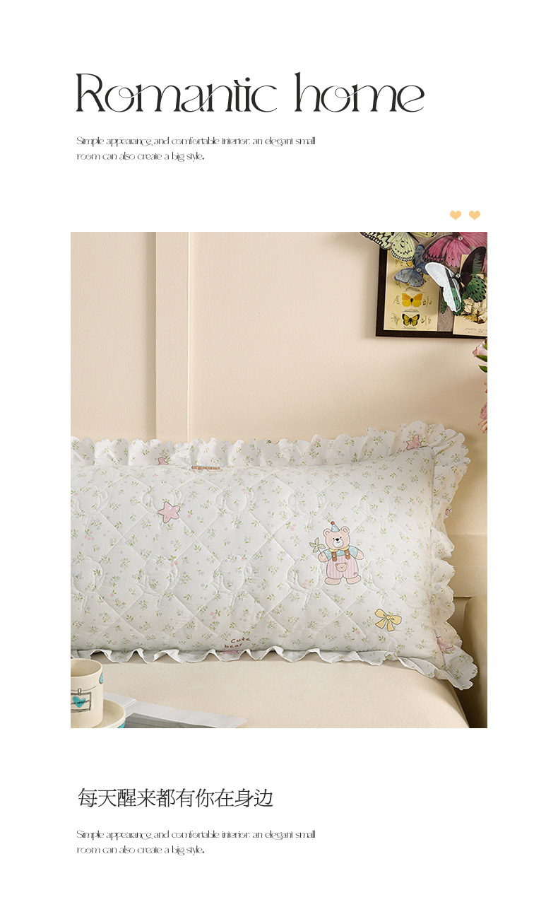 商品名称:艾兜坊 2025新款小碎花水洗棉双人枕套 树叶熊