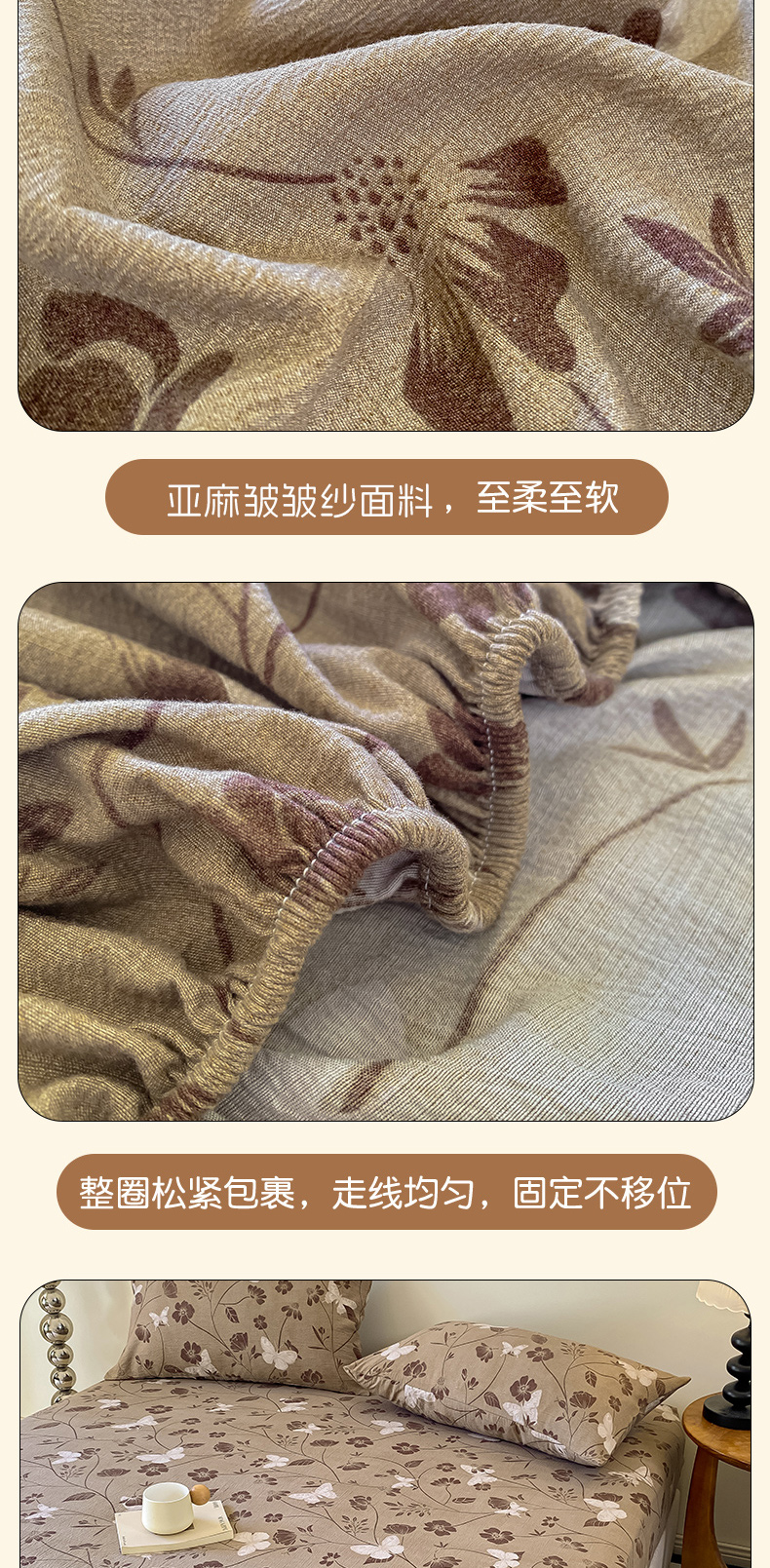 • 91家纺网 家纺一手货源 找家纺 一比一家纺 2026新款加厚原麻皱皱纱床笠单品床笠单件单床笠 罗曼