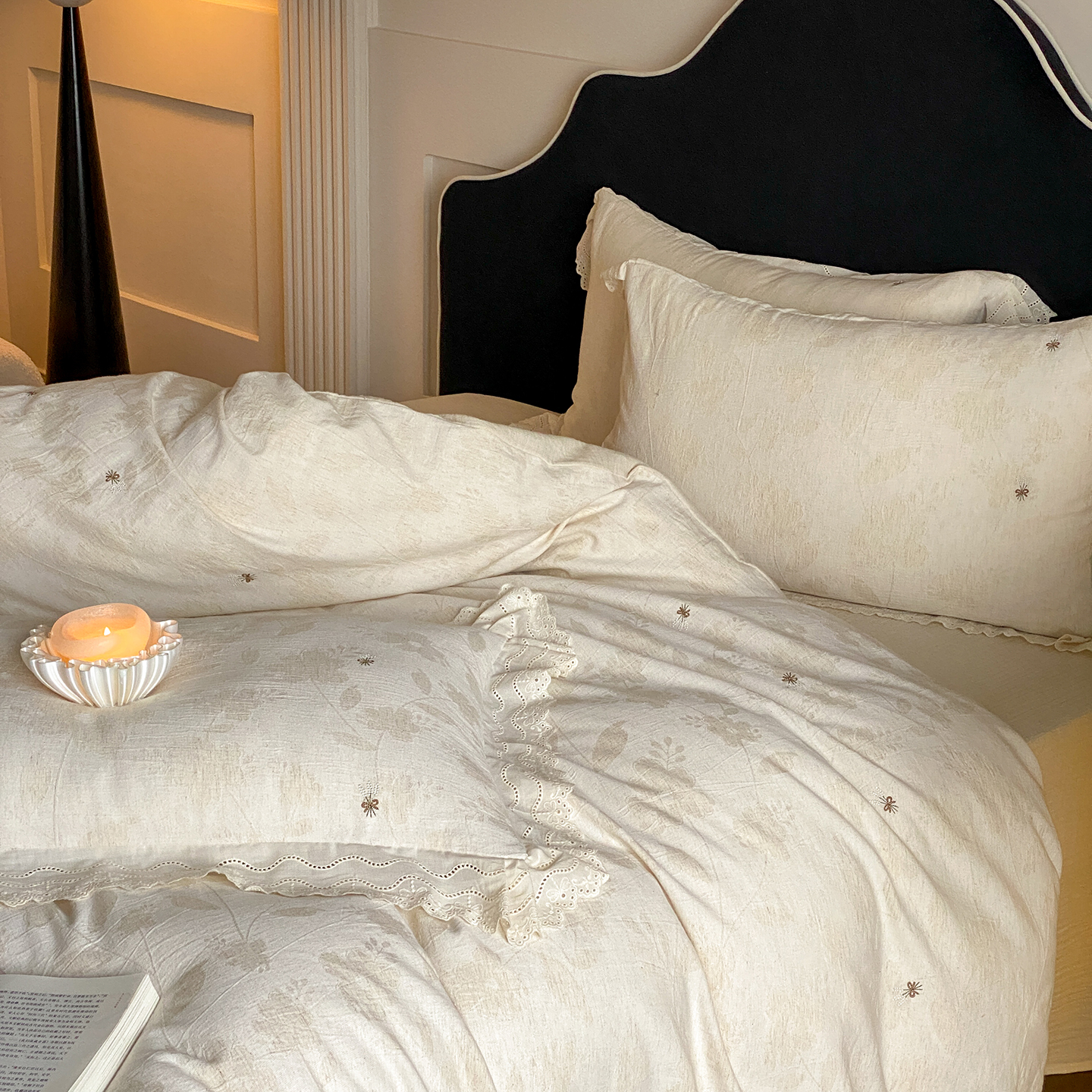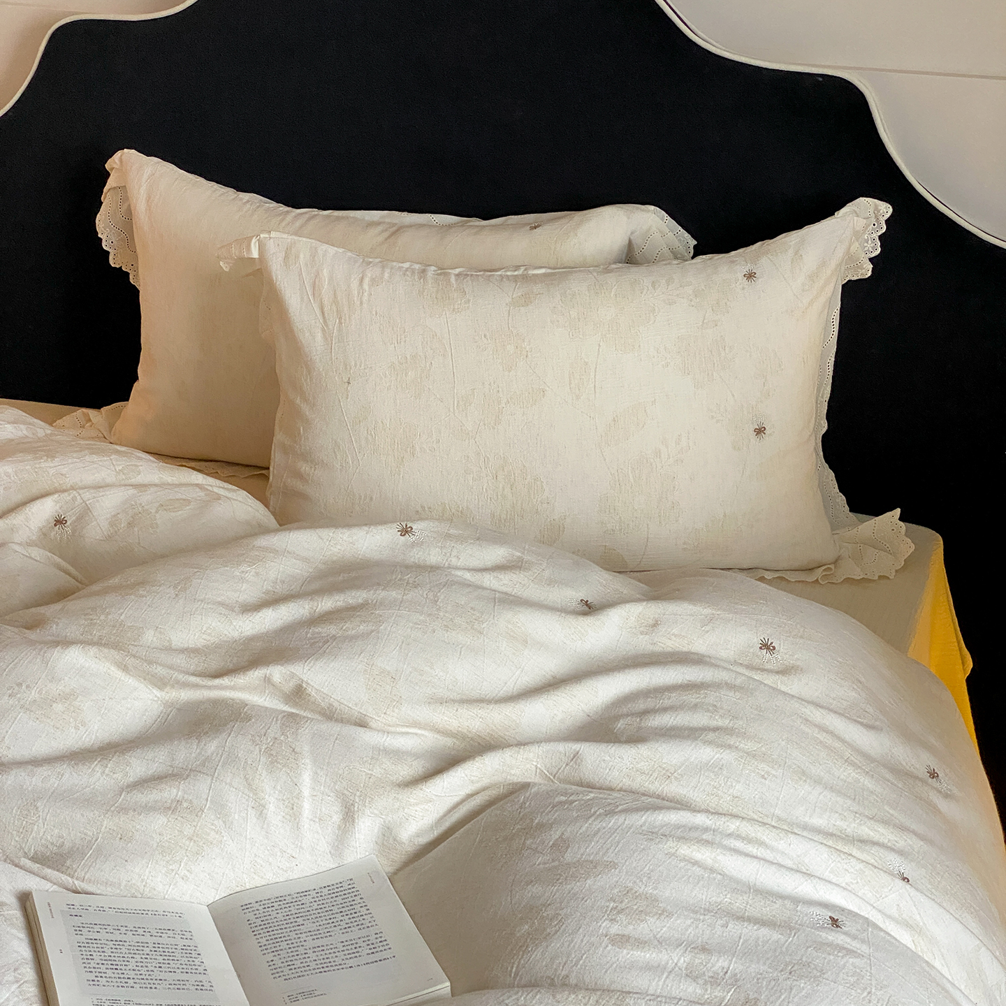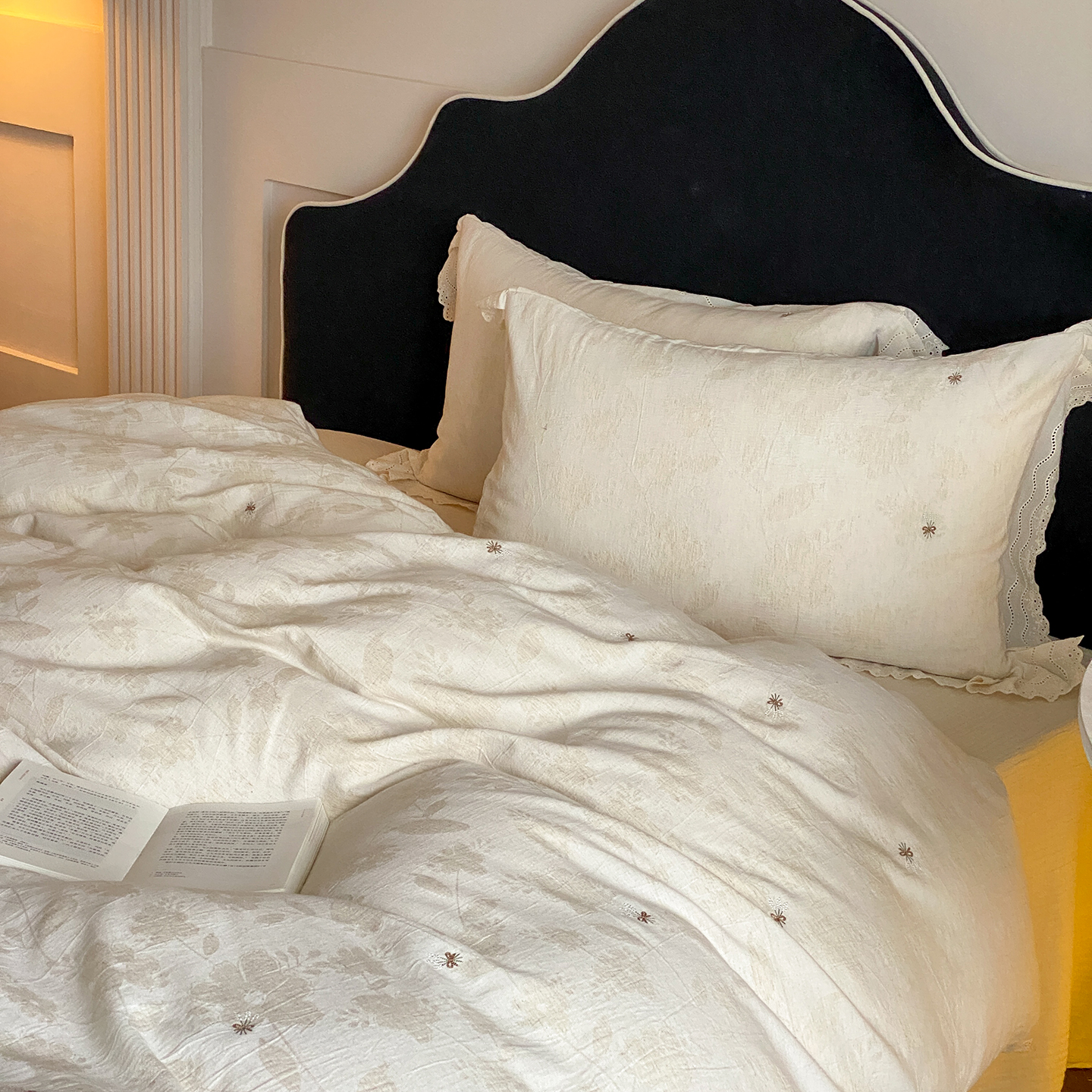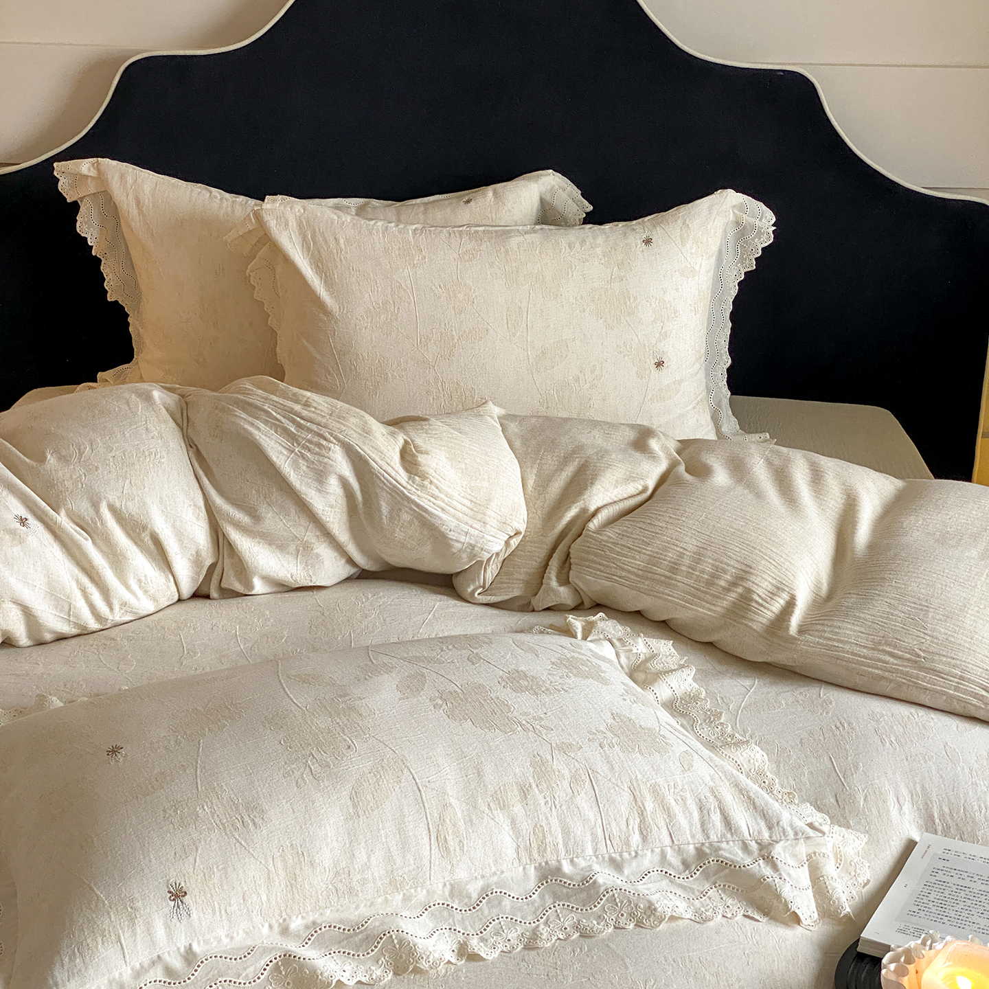 商品名称:(总)赫帛 2025新款A类全棉棉麻色织提花四件套-铃野