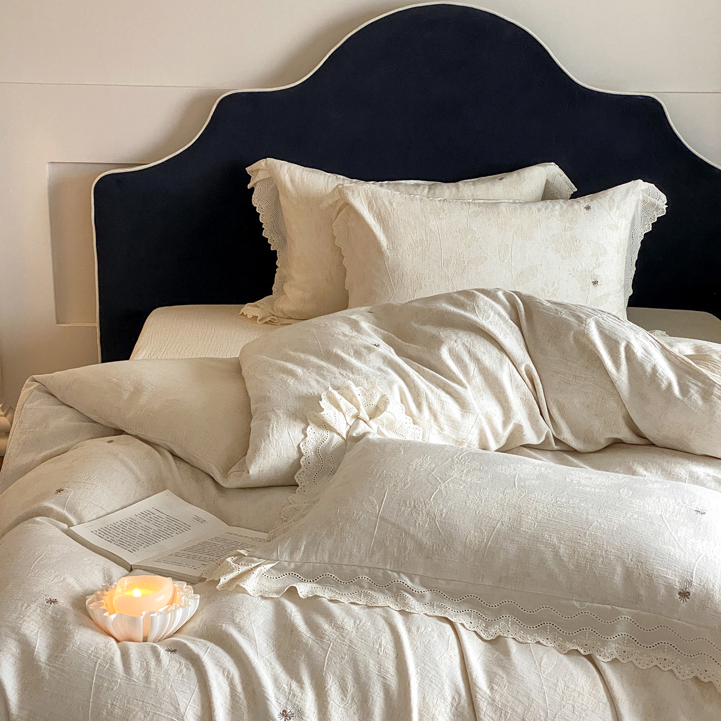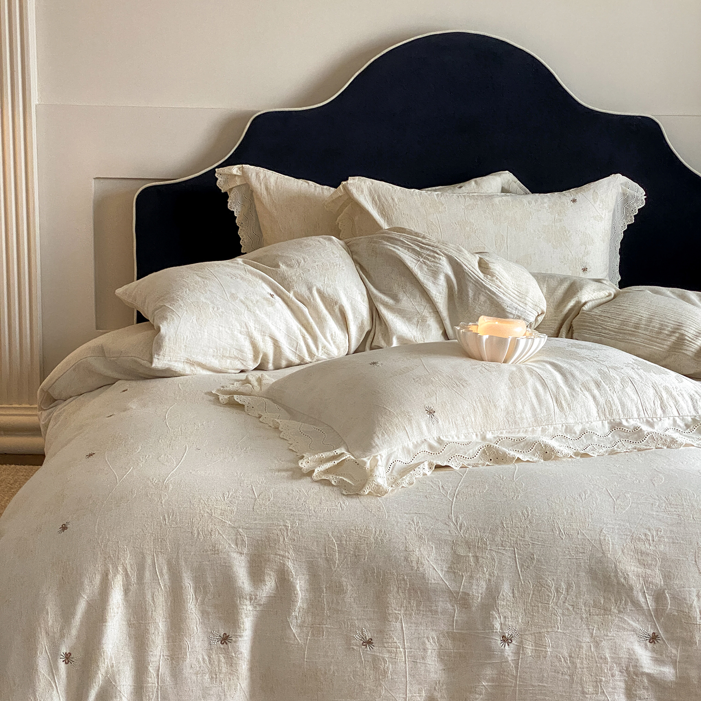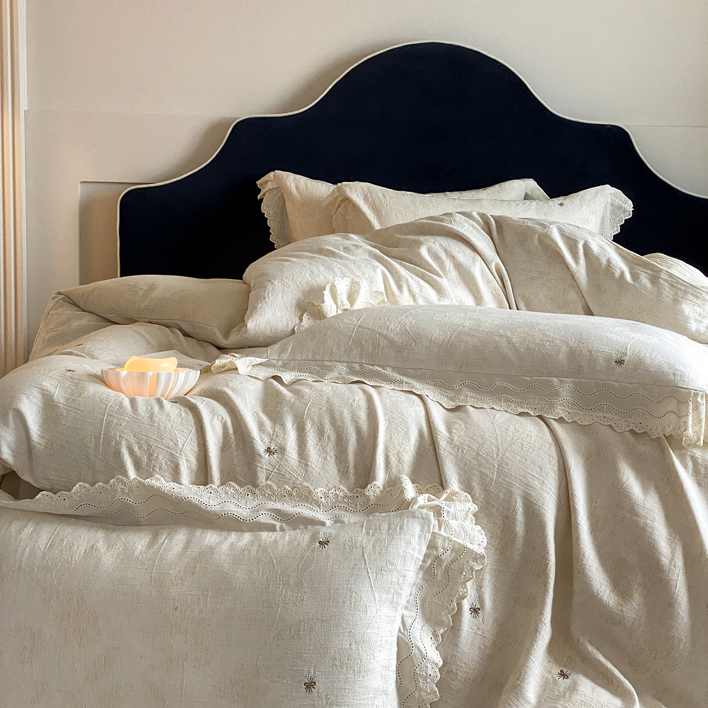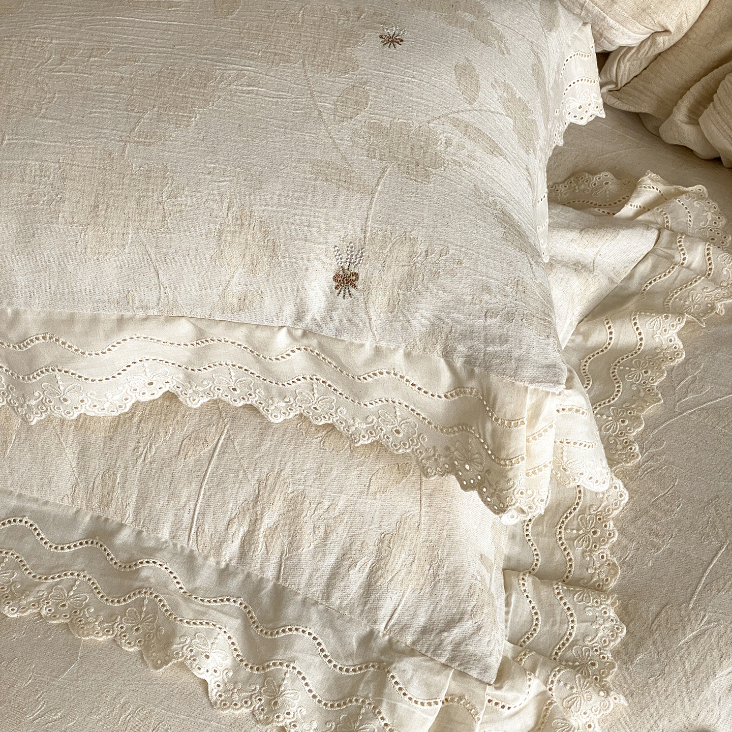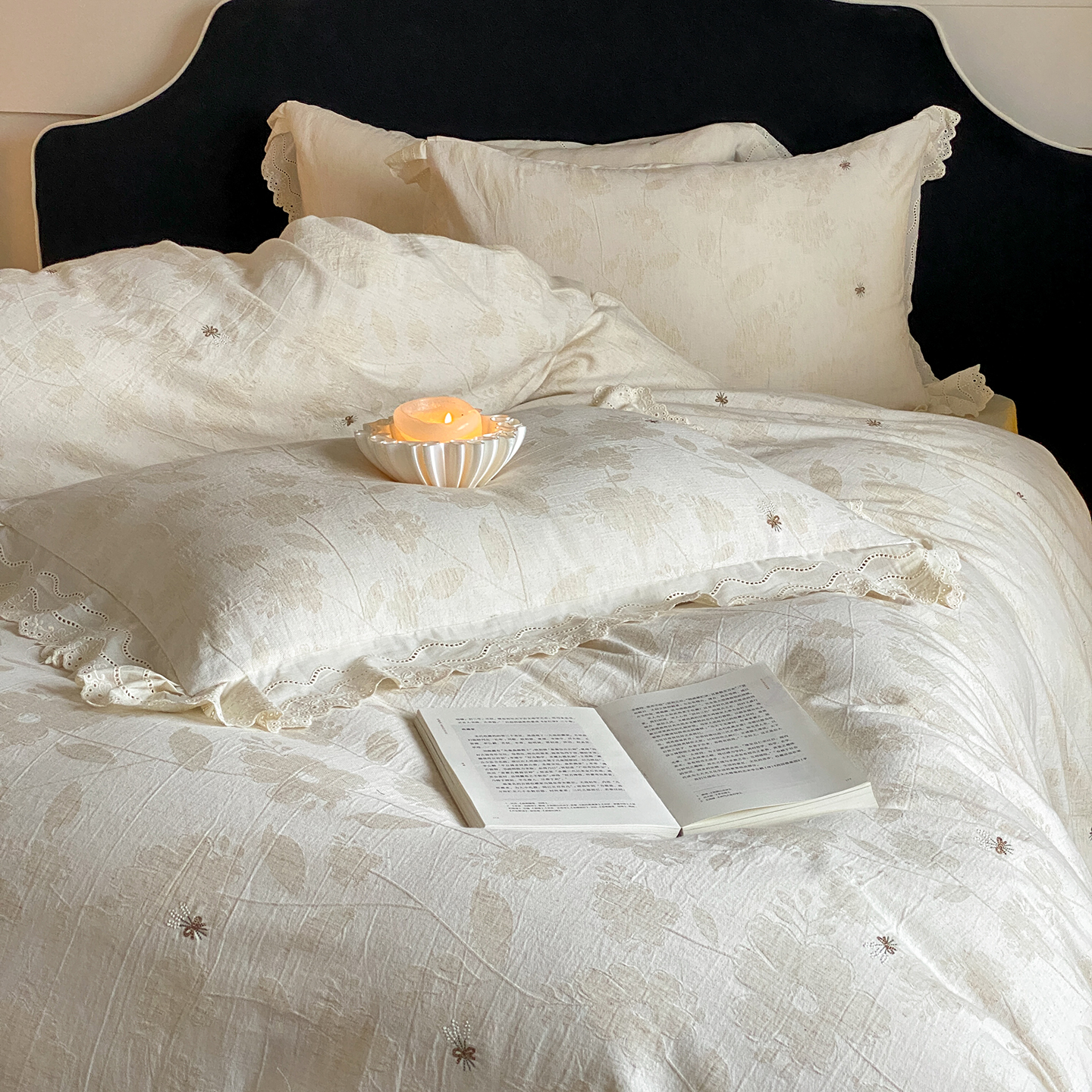 商品名称:(总)赫帛 2025新款A类全棉棉麻色织提花四件套-铃野