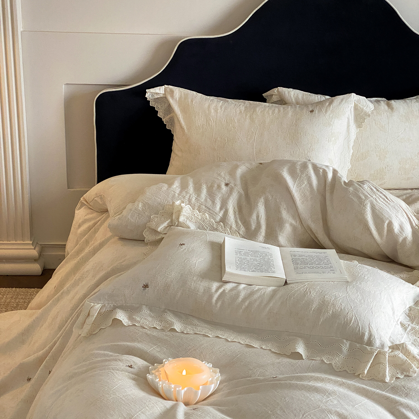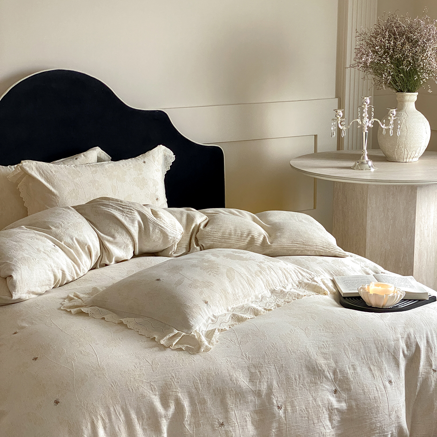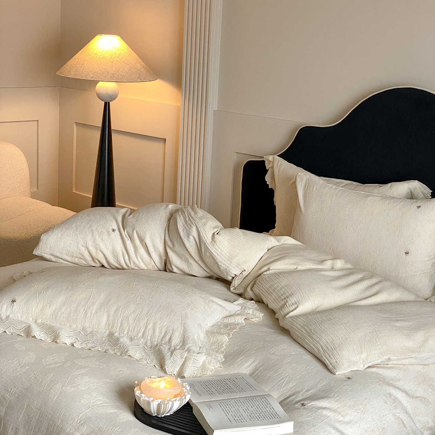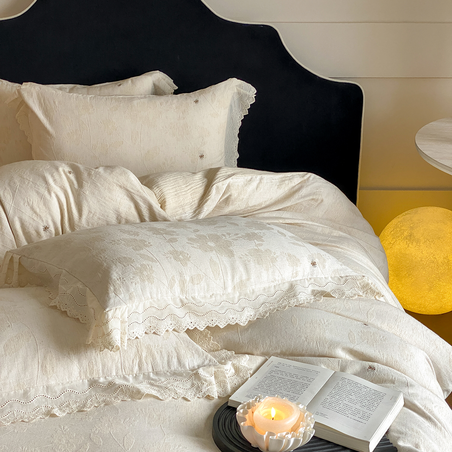商品名称:(总)赫帛 2025新款A类全棉棉麻色织提花四件套-铃野