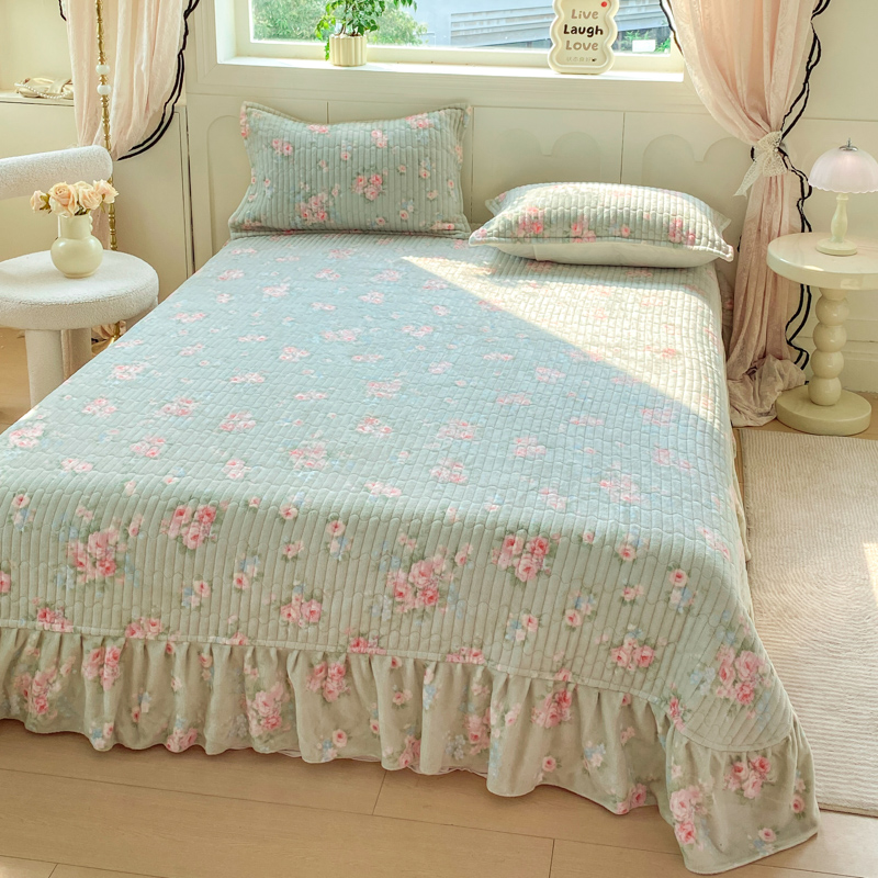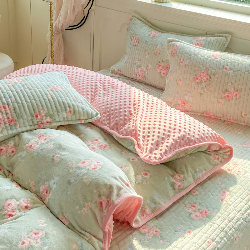 尚美 2025新款豆豆绒牛奶绒大花边床盖四件套(床盖花边随机) 花语玫瑰