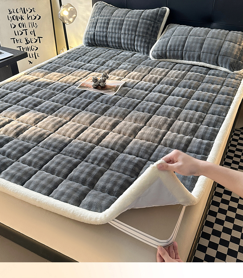 (总)梵朴 2025新款牛奶绒泡泡兔毛绒床垫学生宿舍床褥子-纯色系列大床图,夜空灰,宾利蓝,豆沙粉,气质灰,清新绿