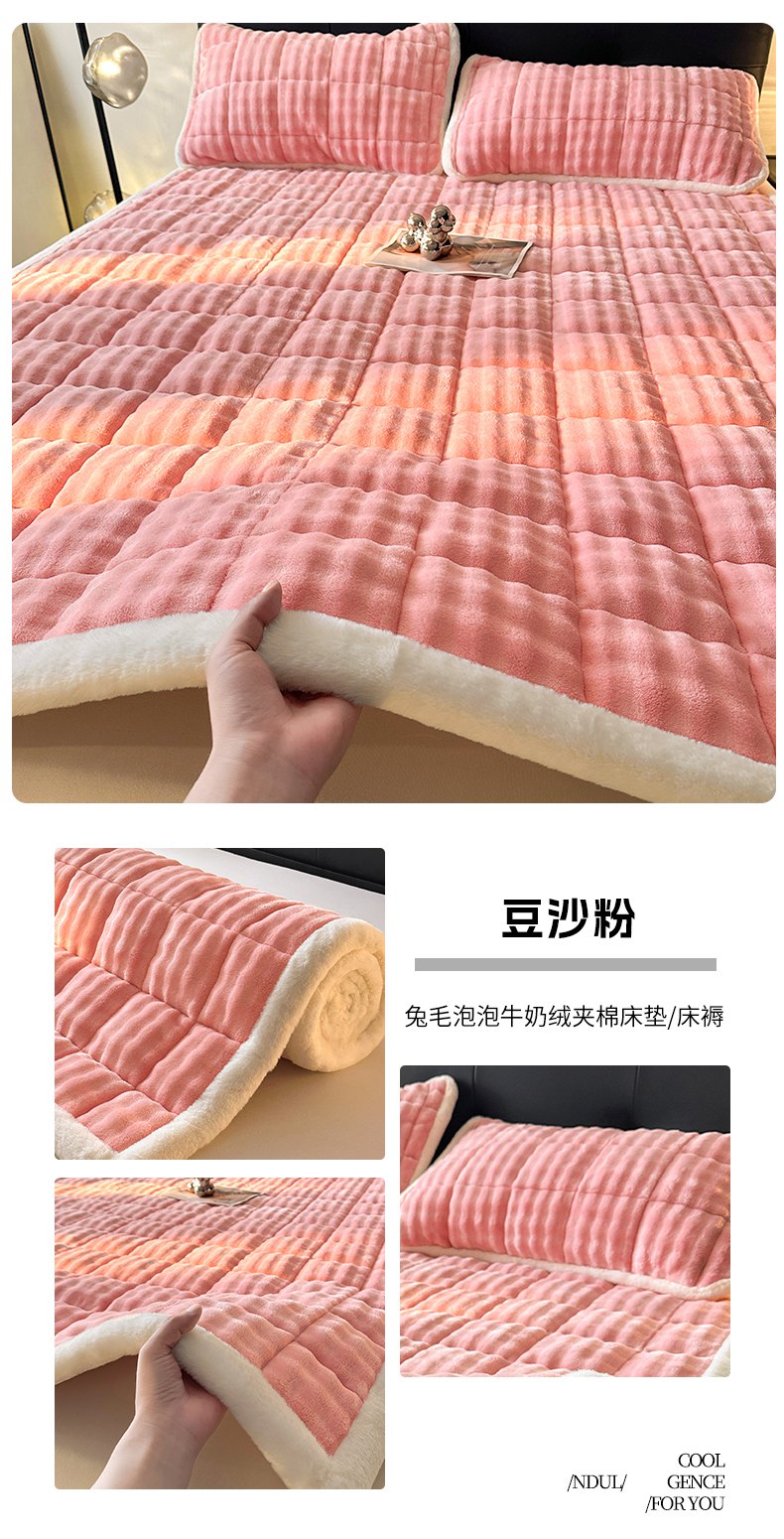 • 91家纺网 家纺一手货源 找家纺 梵朴 2025新款牛奶绒泡泡兔毛绒床垫学生宿舍床褥子-纯色系列大床图 豆沙粉