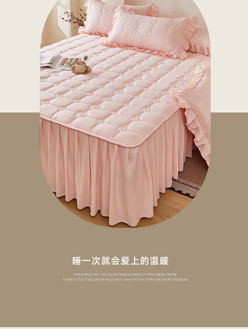 • 91家纺网 家纺一手货源 找家纺 瑞兴纺 2025年新款亲肤夹棉床笠床裙 床裙花边款:幸运格-雅典玉