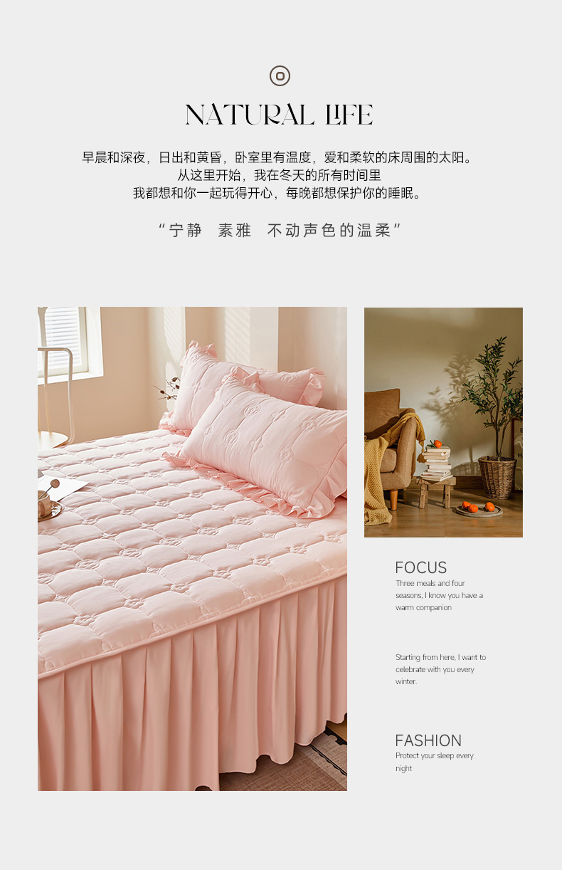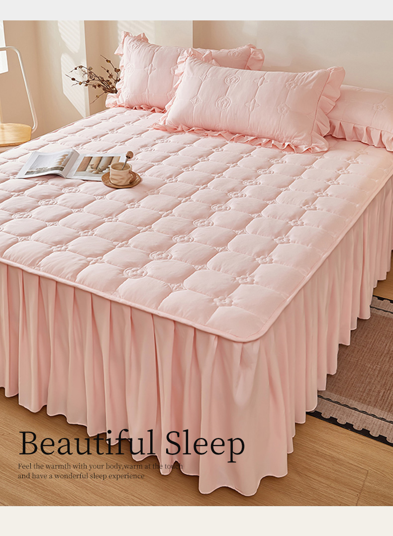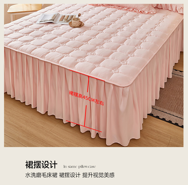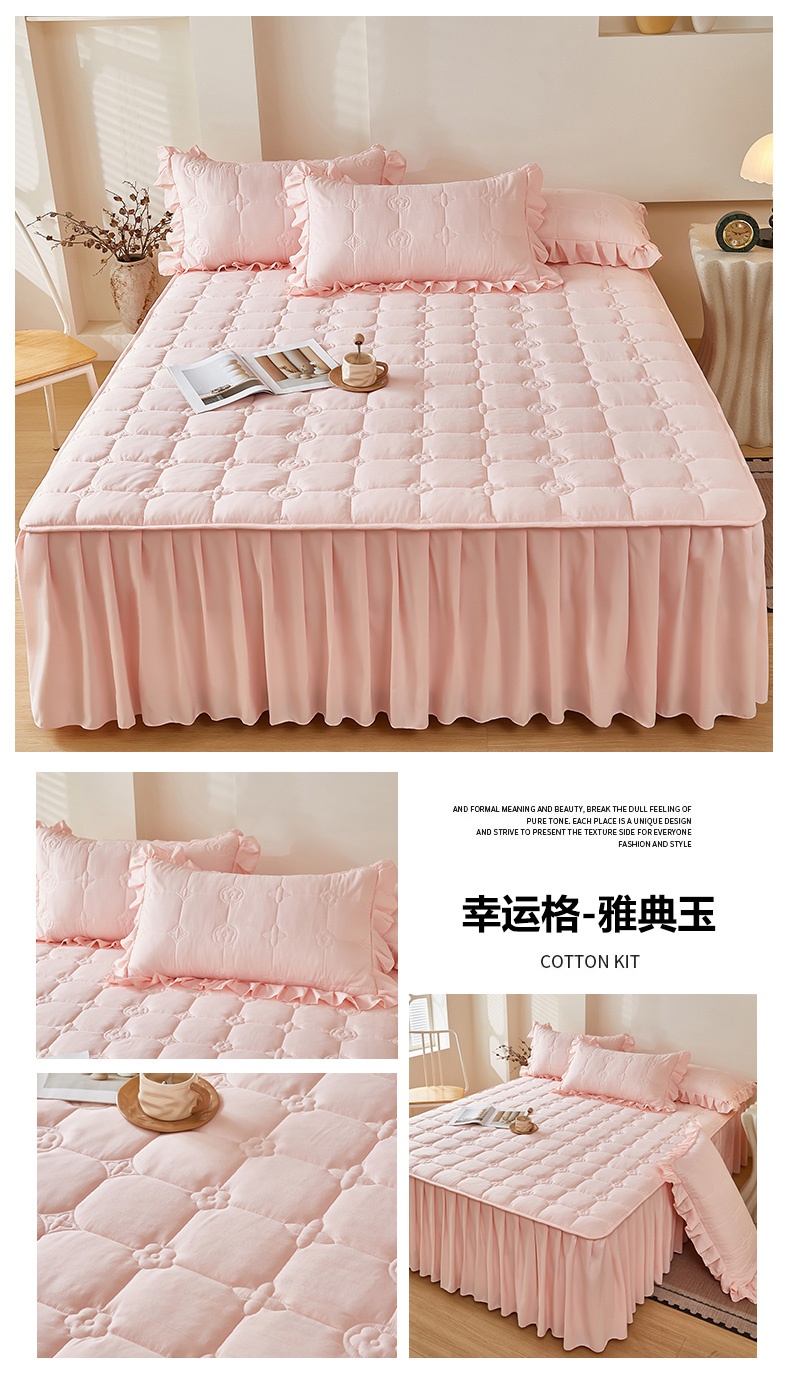 瑞兴纺 2025年新款亲肤夹棉床笠床裙 床裙花边款:幸运格-雅典玉