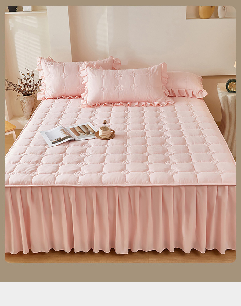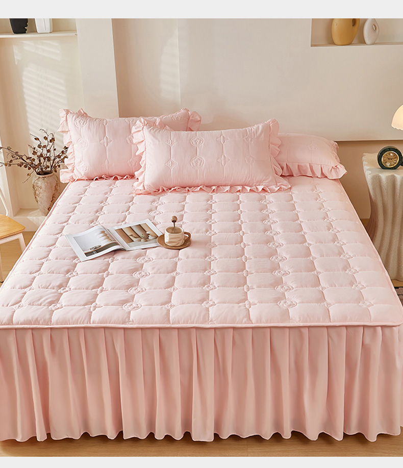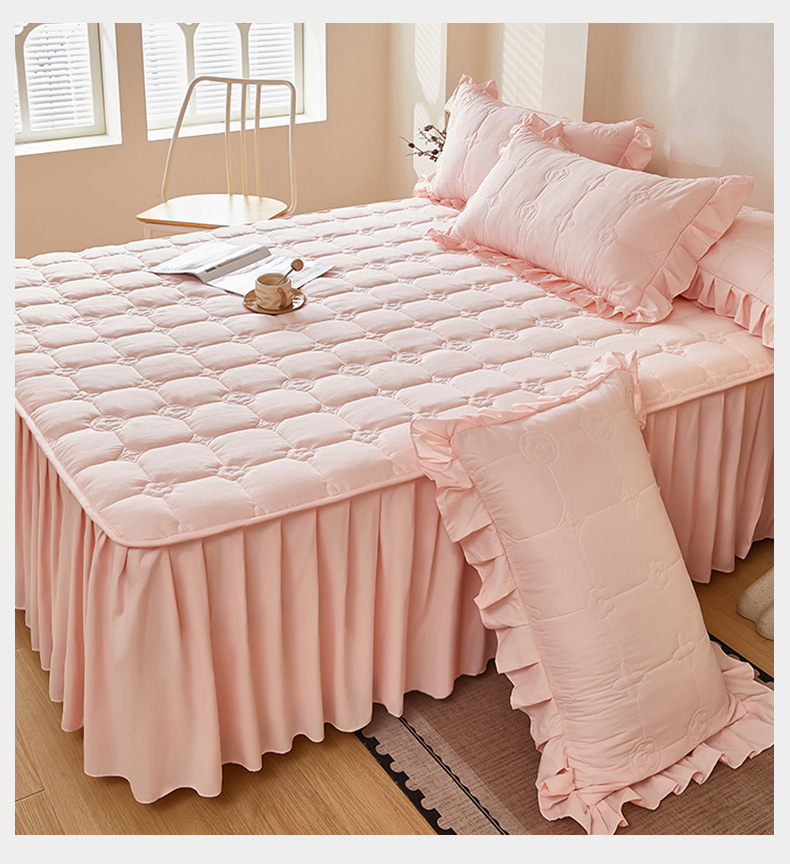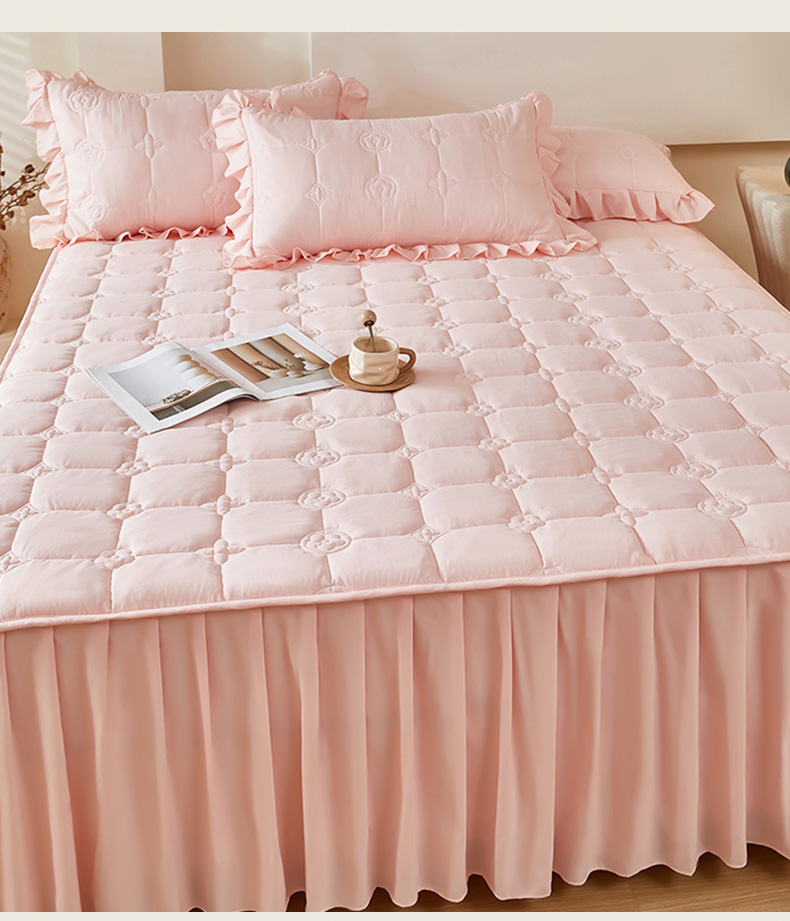 瑞兴纺 2025年新款亲肤夹棉床笠床裙 床裙花边款:幸运格-雅典玉