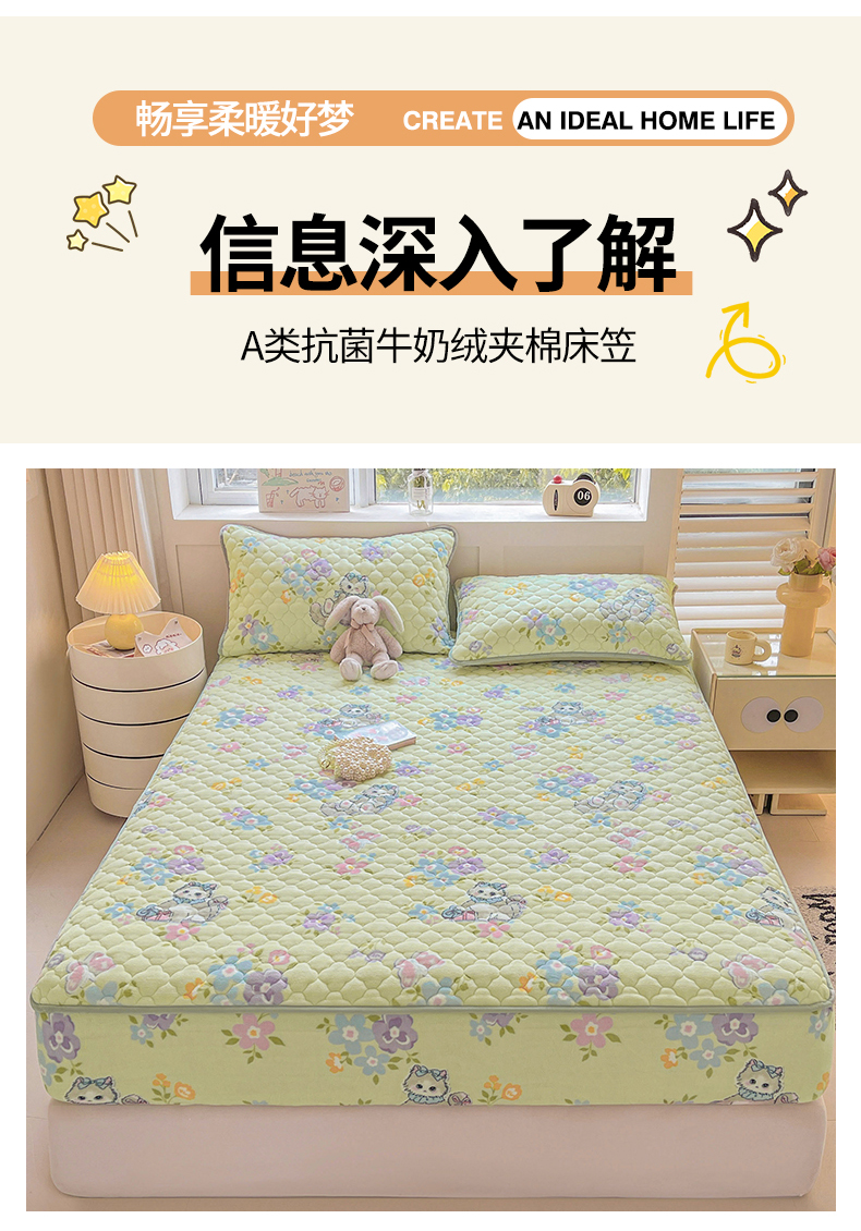(总)康纳利 2025新款A类抗菌加厚牛奶绒印花夹棉床笠可搭配同款四件套,可爱宠物,暖意,幸运熊,花间小兔,梦幻星空,波点兔,彩虹草莓,草莓小兔,粉色爱心,哈尼小熊,蝴蝶结,花意-咖,奶油小熊,幸运流星,幸运小龙,郁意盛开,字母朵朵,字母小旺,繁星,粉萌兔,花眠语,花漾,卡皮巴拉,礼物小咪,萌宠派对,奶油宠物,KT花园