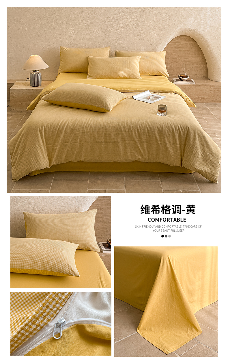 商品名称:曲之慕 2025新款简约纯色全棉纯棉色织水洗棉四件套 维希格调-绿