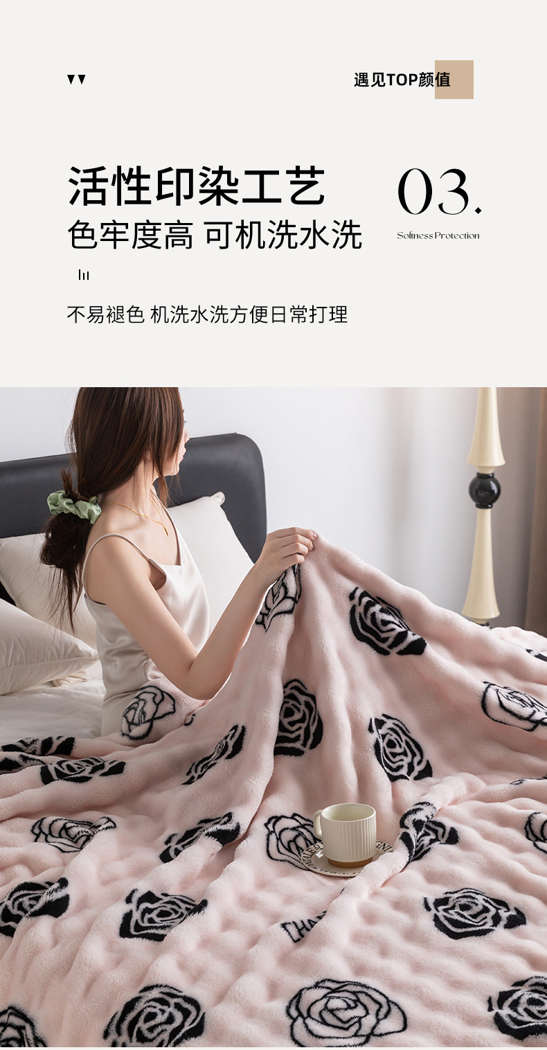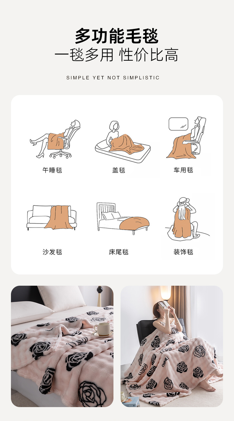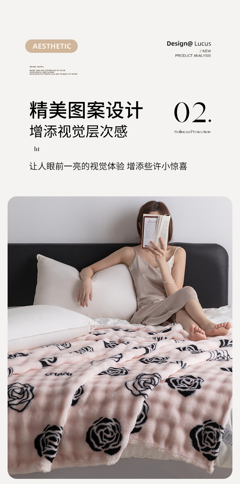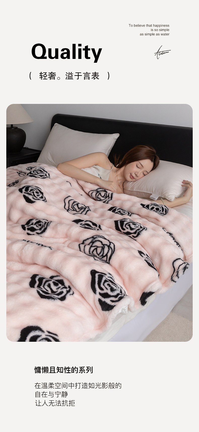 商品名称:安琪家纺 2025新款爆品temu希音TK350g山茶花仿兔毛绒毯休闲大泡泡毯跨境外贸出口 山茶花-粉