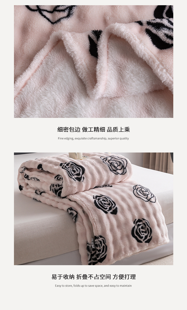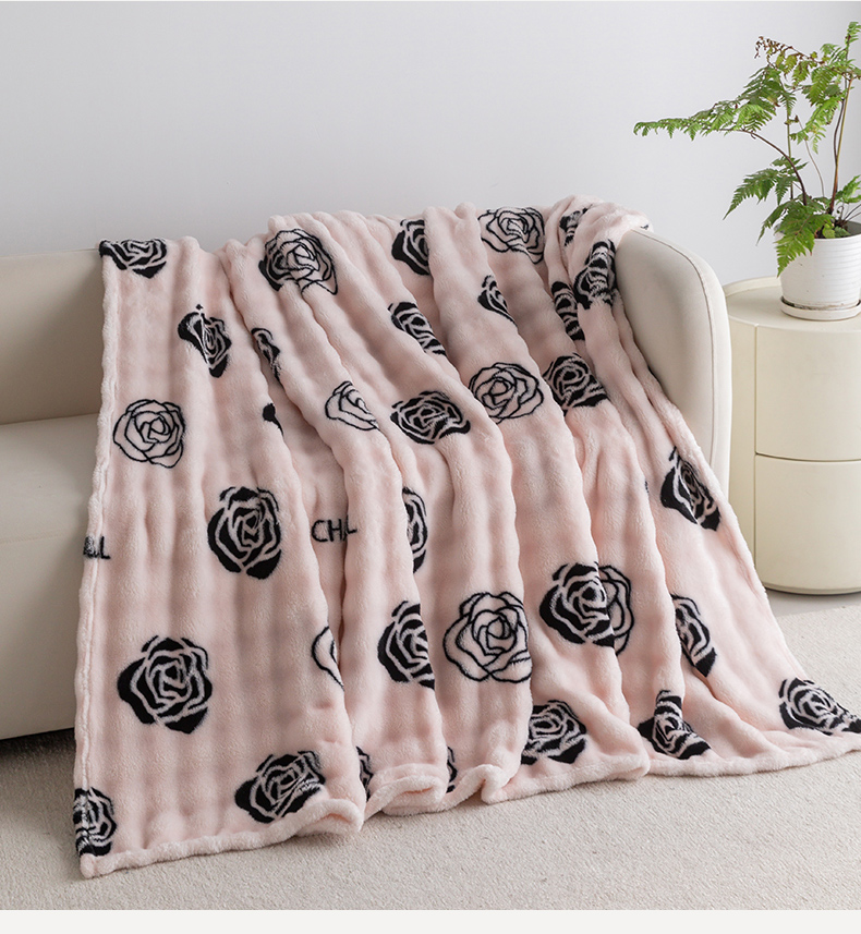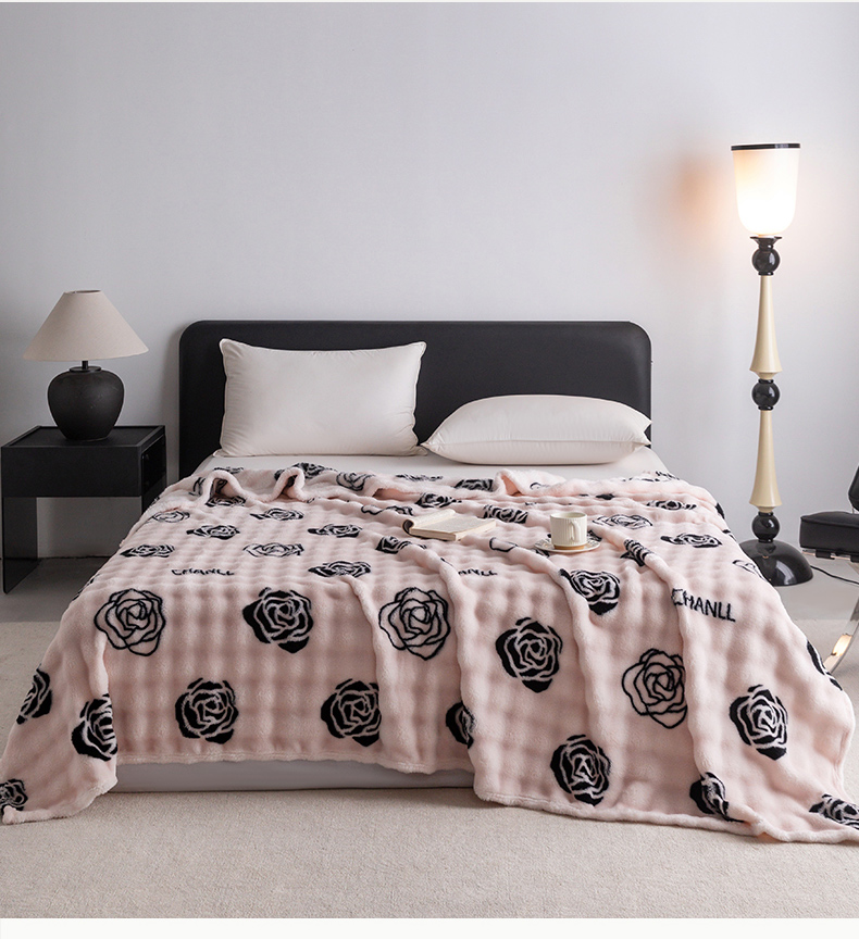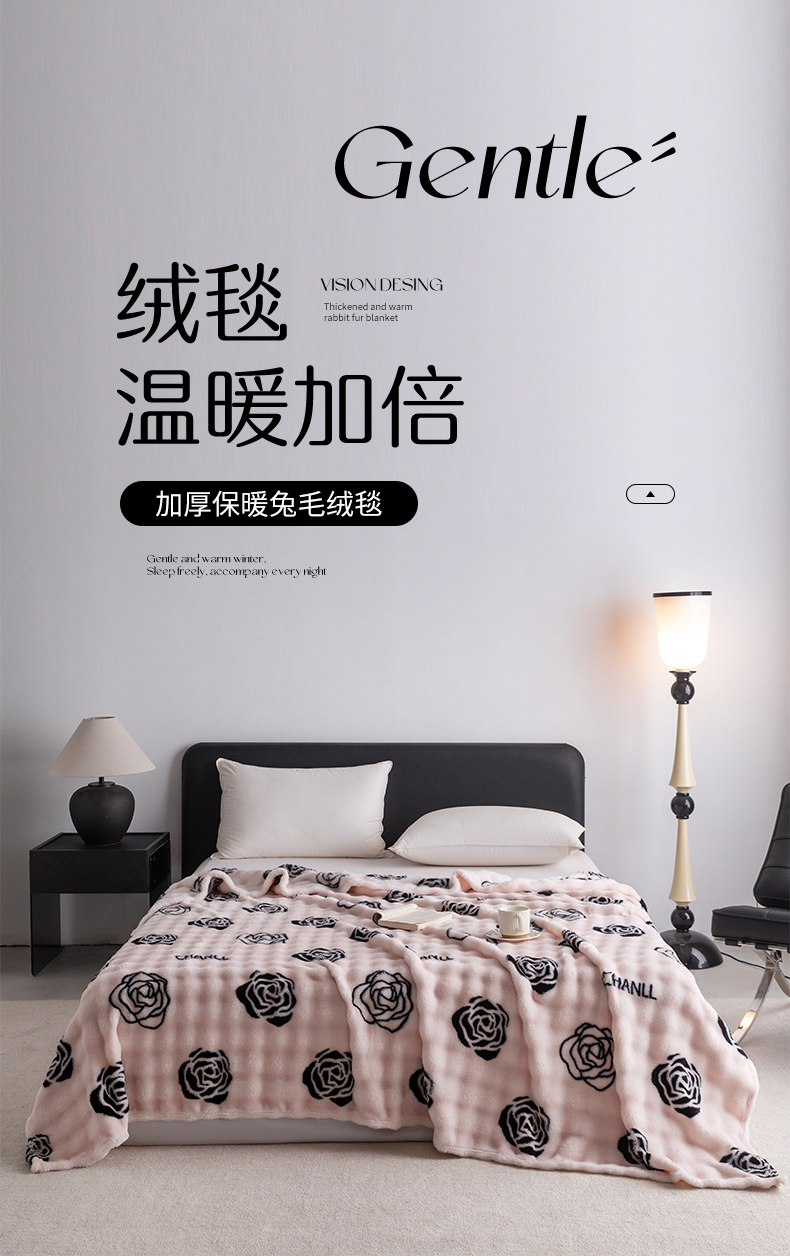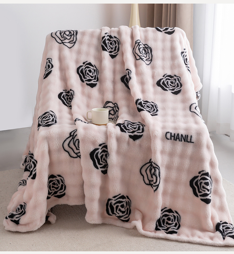 安琪家纺 2025新款爆品temu希音TK350g山茶花仿兔毛绒毯休闲大泡泡毯跨境外贸出口 山茶花-粉