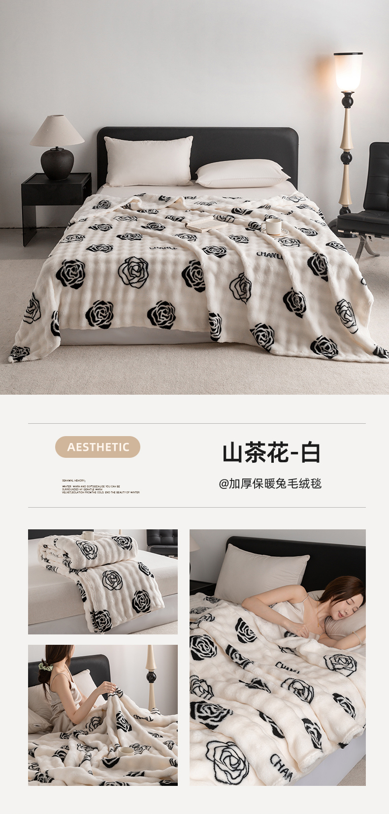 (总)安琪家纺 2025新款爆品temu希音TK350g山茶花仿兔毛绒毯休闲大泡泡毯跨境外贸出口 ,山茶花-白,山茶花-粉,山茶花-灰,山茶花-绿