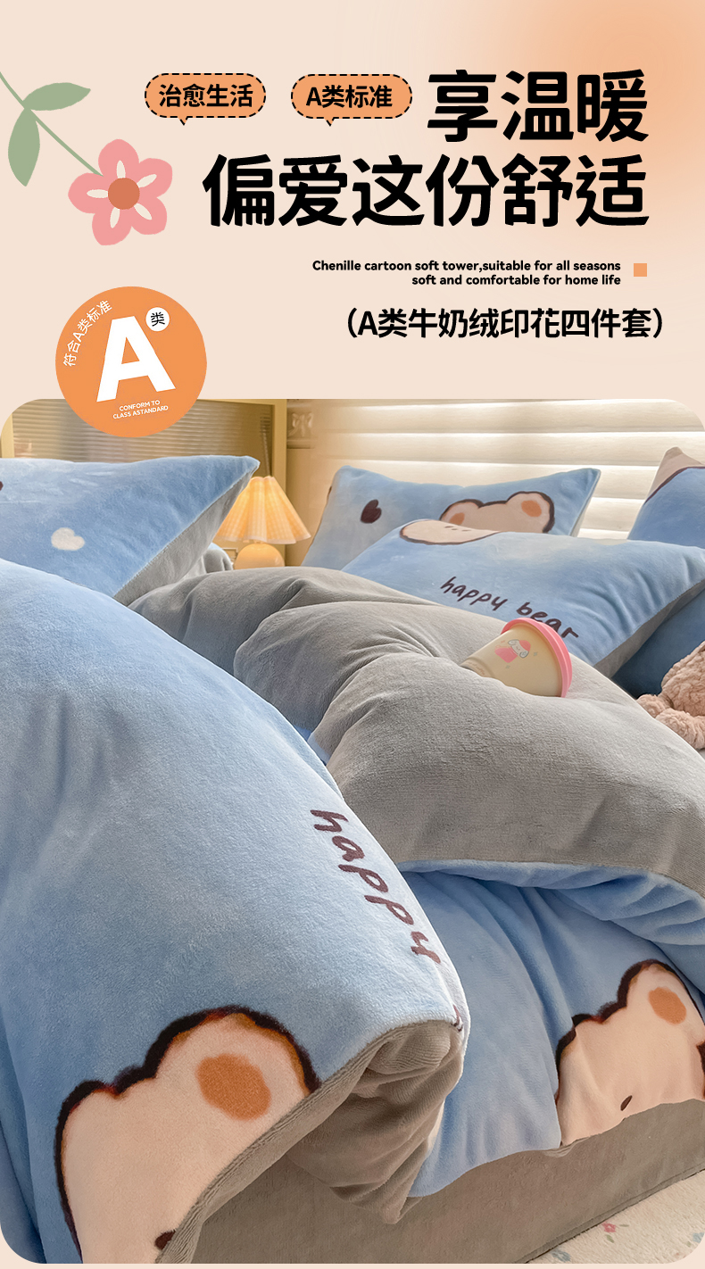 当前位置: 91家纺网 > 商品网购 > 床品套件 > 四件套 > 牛奶绒四件套 > 美澳家纺 2025新款190克加厚牛奶绒印花四件套 快乐小狗
