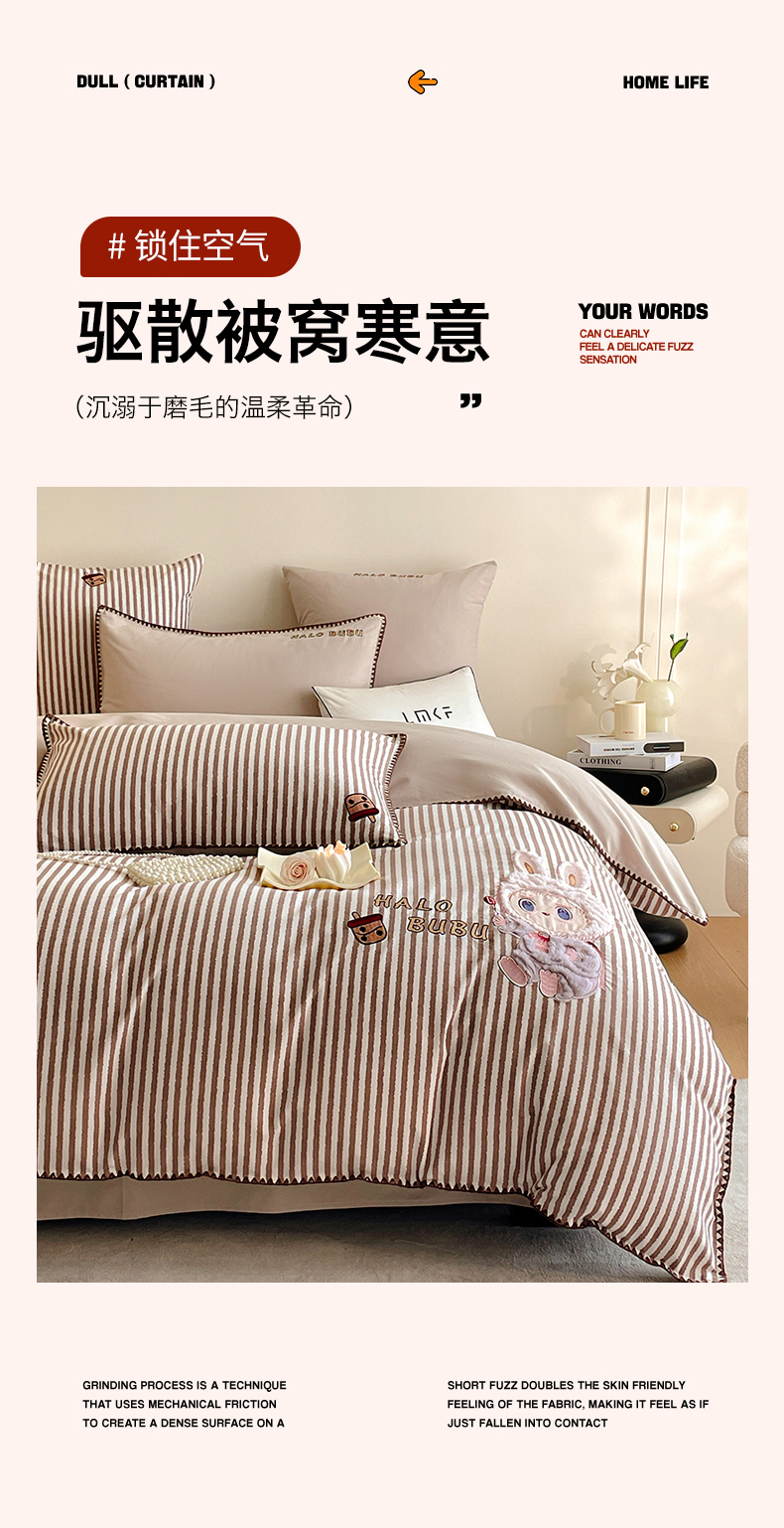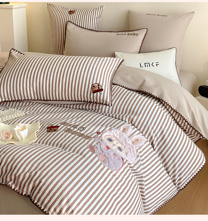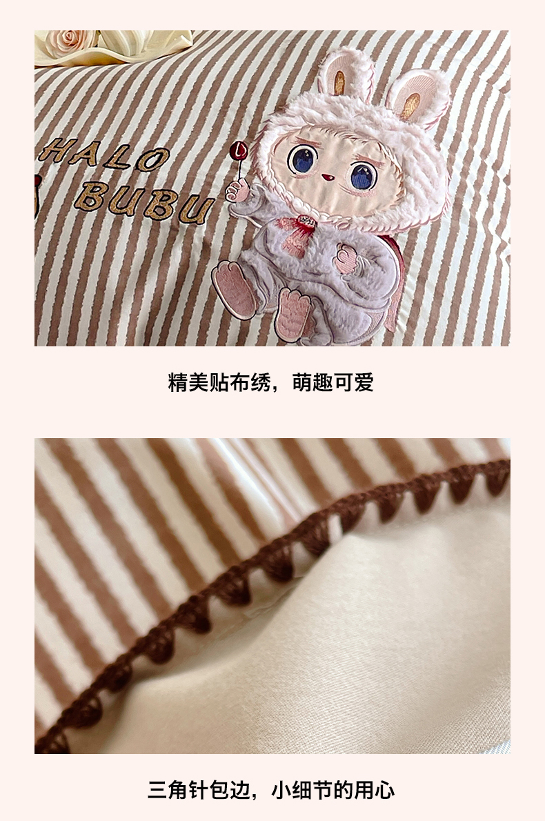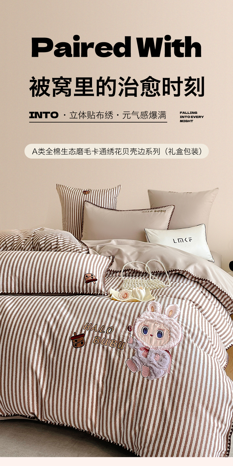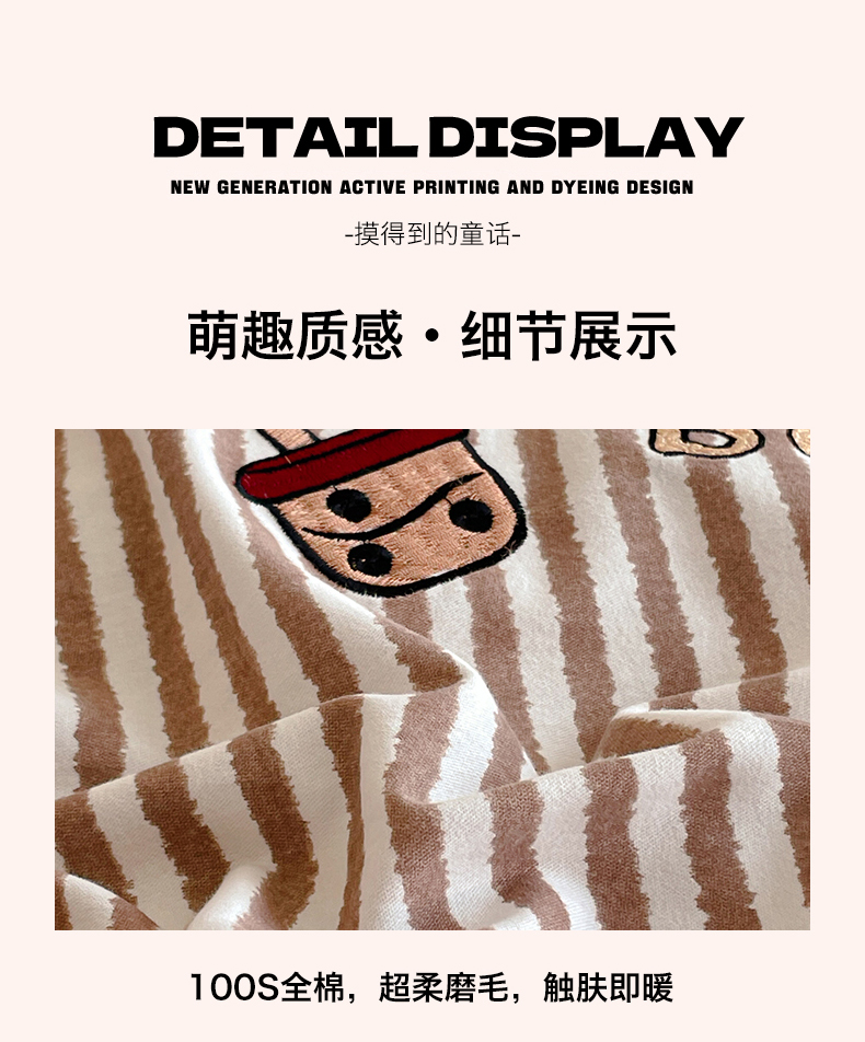 商品名称:蓝米卡夫 2025秋冬-A类全棉生态磨毛卡通绣花贝壳边系列(礼盒包装)【如需买家秀联系15996631948】 3号领航咖-奶茶