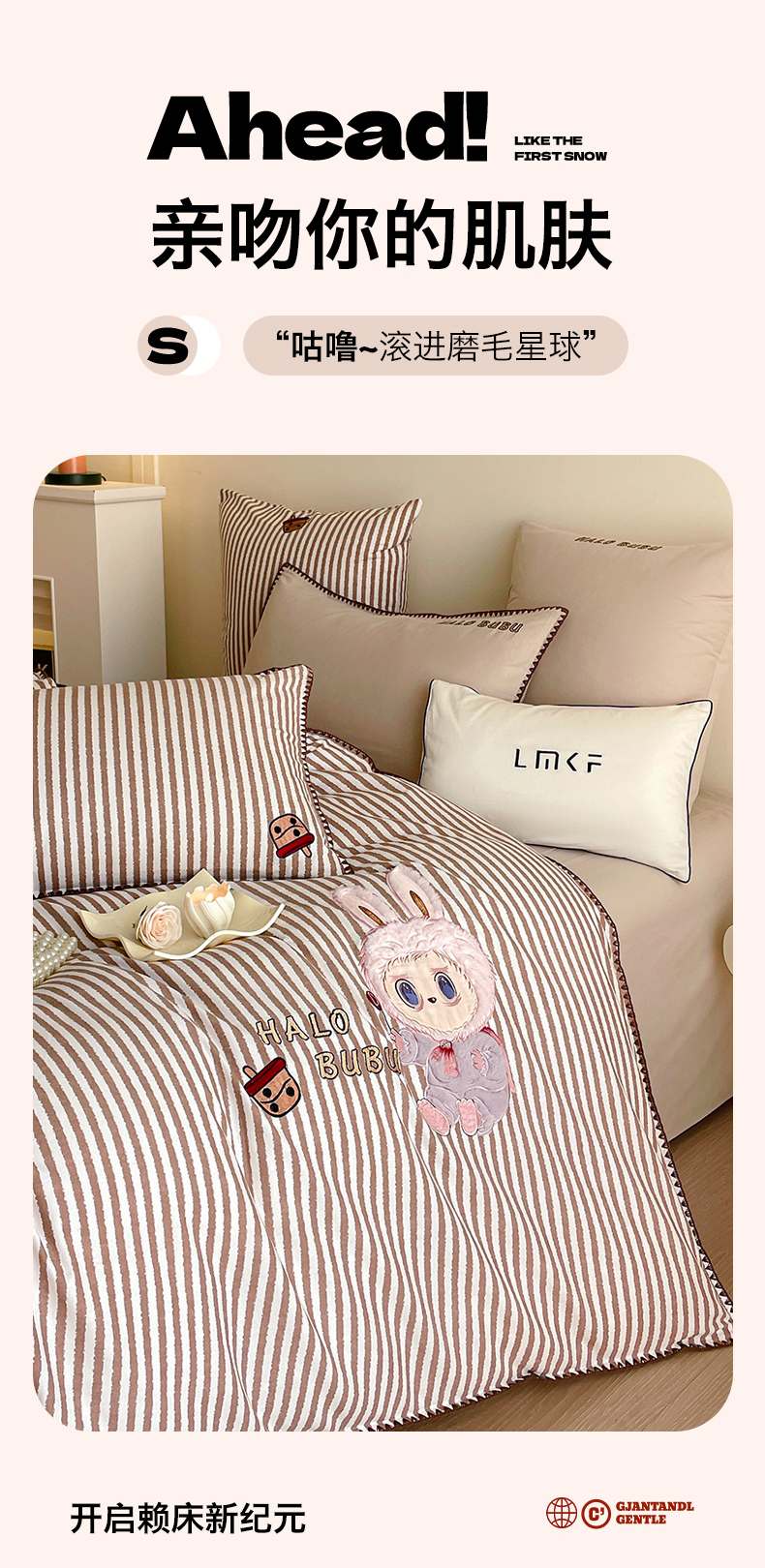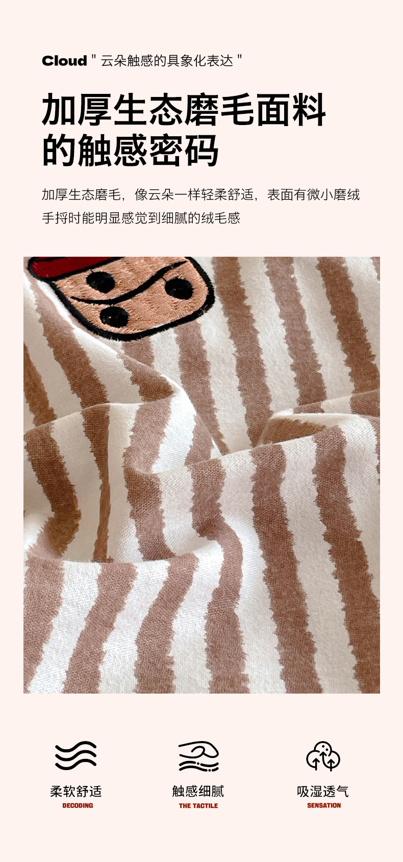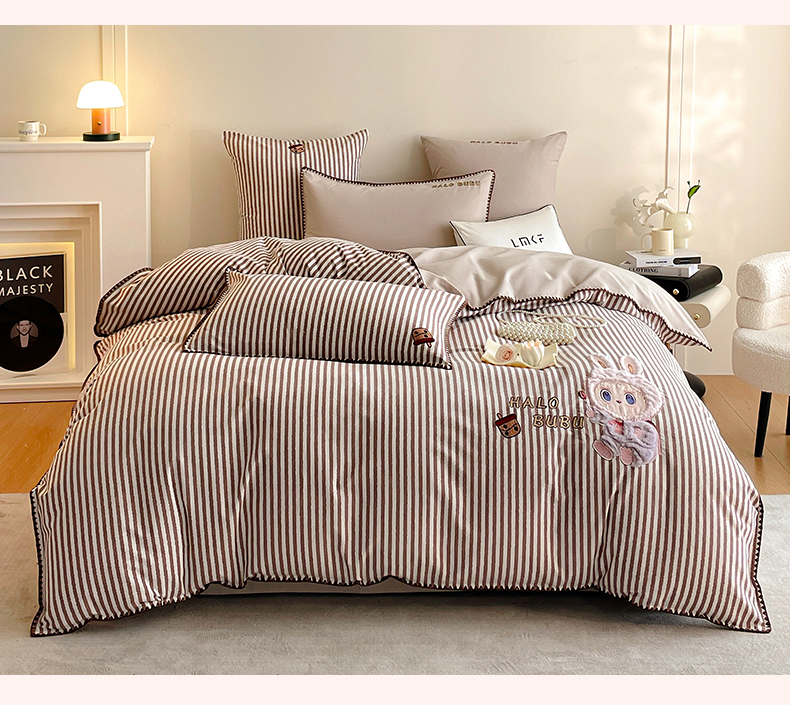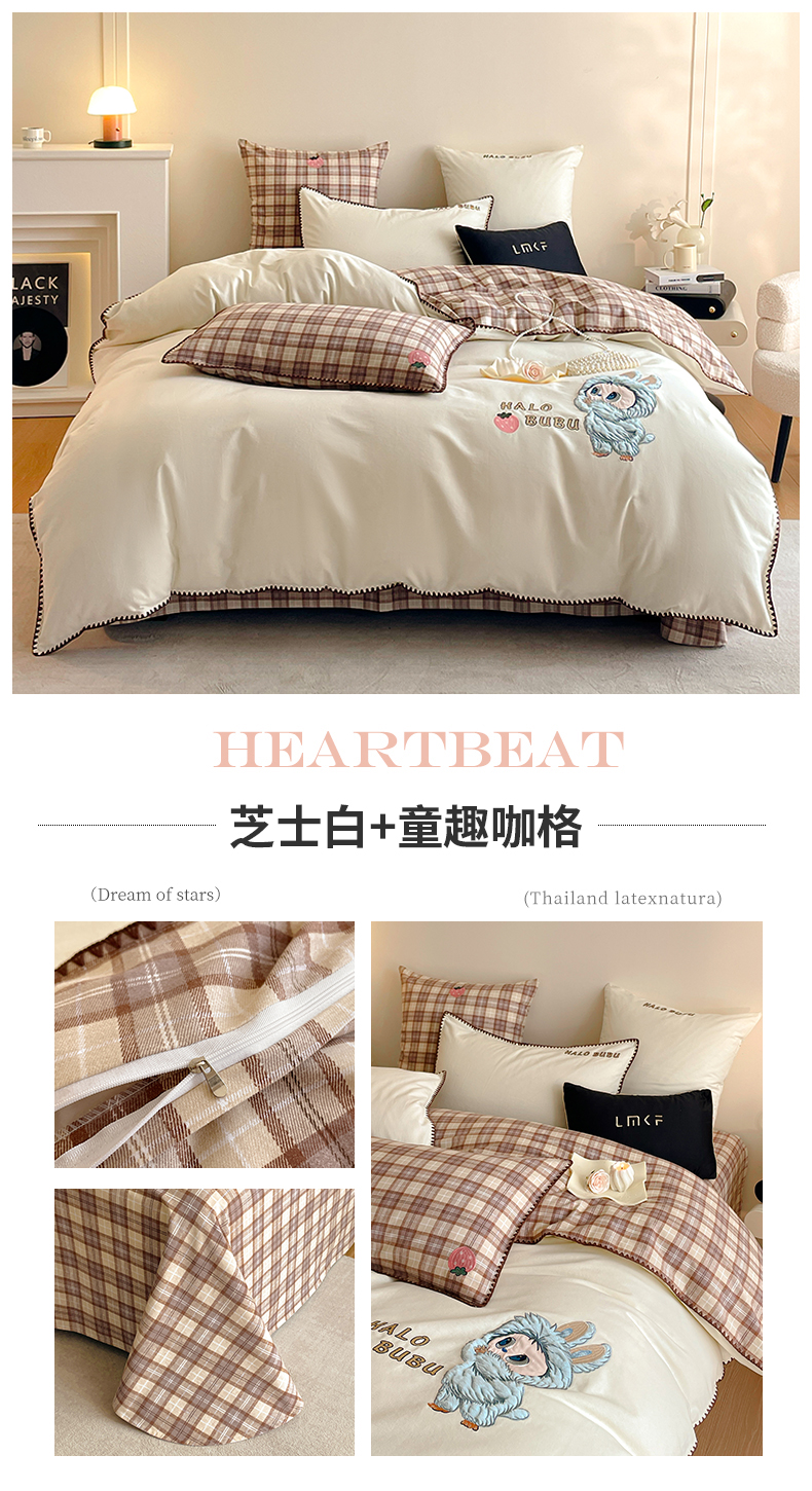 商品名称:蓝米卡夫 2025秋冬-A类全棉生态磨毛卡通绣花贝壳边系列(礼盒包装)【如需买家秀联系15996631948】 3号领航咖-奶茶