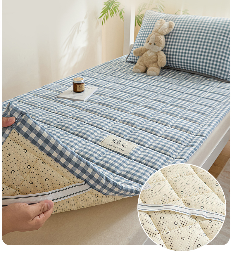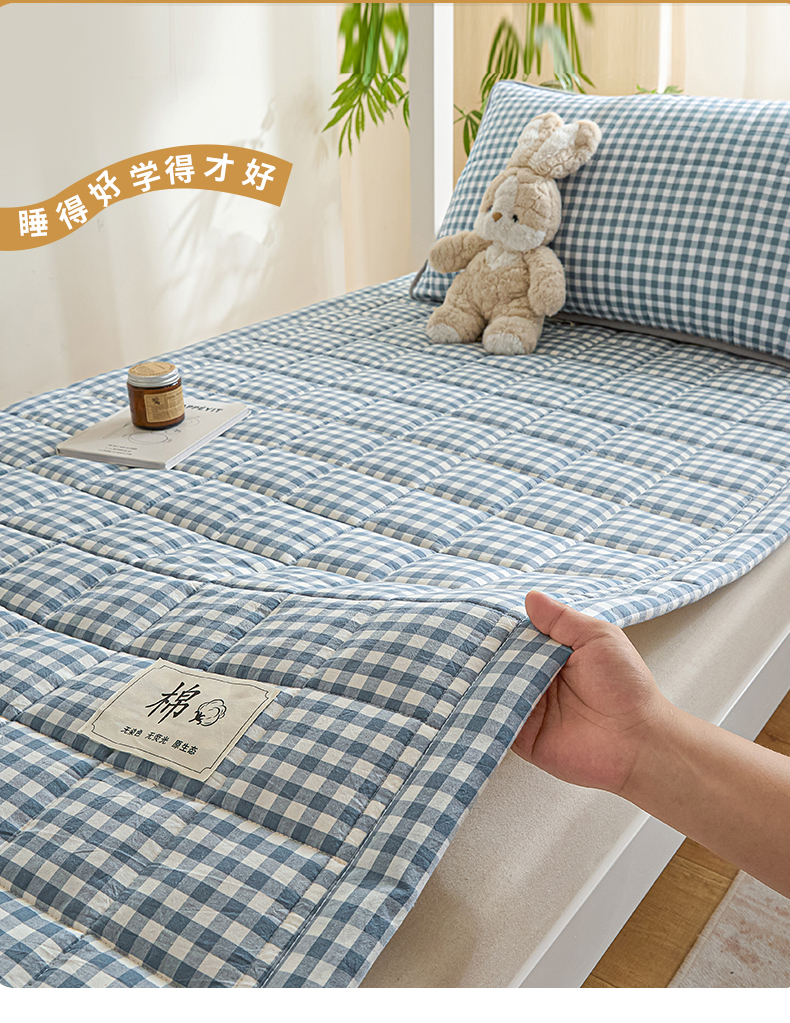 (总)鑫钰 2025新款A类纯棉夹棉床笠学生宿舍专用90x190-80x190-花漾山茶格,花漾山茶格-粉,花漾山茶格-蓝,花漾山茶格-灰